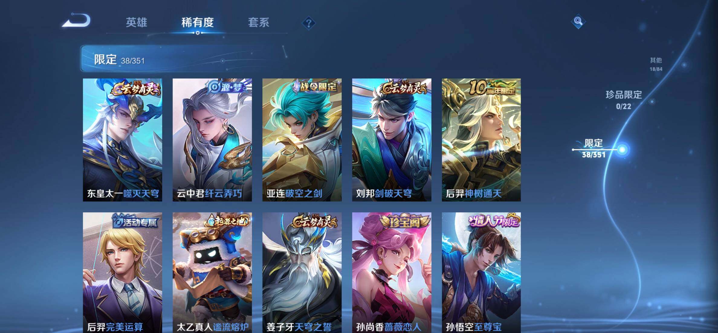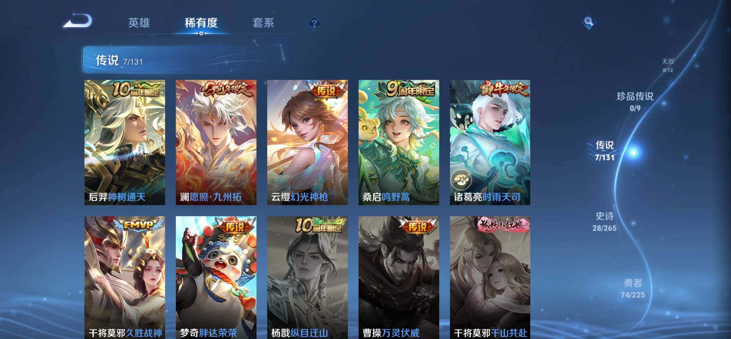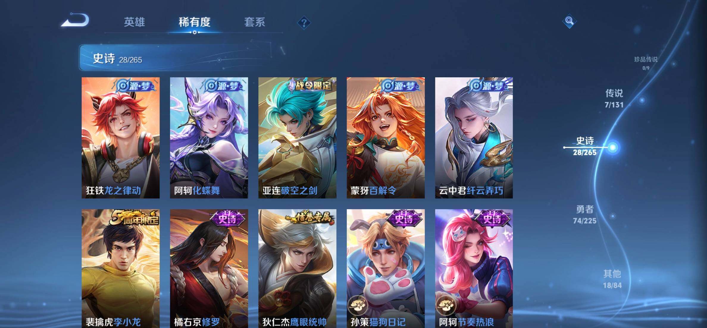 _2294995-q-v5-尊贵铂金ii段位打野15段-125英雄-127皮肤7传说-28史诗 【英雄全皮】:影全皮 【传说皮肤】:后羿神树通天,澜愿照九州拓,云缨幻光神呛,桑启鸣野蒿,诸葛亮时雨天司,干将莫邪久胜战神,梦奇胖达荣荣 【限定皮肤】:大乔绒语心约,姜子牙天穹之誓,狄仁杰阴阳师,赵云皇家上将,孙尚香蔷薇恋人,高渐离玩趣恶龙,狄仁杰万华元夜,项羽海滩派对,老夫子醍醐杖,程咬金演武夺筹,孙悟空至尊宝,钟馗驱傩正仪,鬼谷子原初探秘者,诸葛亮时雨天司,弈星混沌棋,明世隐疑决卦,裴擒虎李小龙,云中君纤云弄巧,张良古海寻踪,蒙犽百解令,鬼谷子天穹祈灯,沈梦溪龙舞盛年,刘邦剑破天穹,周瑜熔金海岸 【年限皮肤】:诸葛亮时雨天司 【赛季限定】:狄仁杰万华元夜,老夫子醍醐杖,程咬金演武夺筹,张良古海寻踪,钟馗驱傩正仪,鬼谷子原初探秘者,弈星混沌棋,明世隐疑决卦,鬼谷子天穹祈灯,刘邦剑破天穹,姜子牙天穹之誓 【史诗皮肤】:赵云皇家上将,赵云未来纪元,廉颇地狱岩魂,宫本武藏鬼剑武藏,孙尚香蔷薇恋人,孙尚香水果甜心,嬴政摇滚巨星,妲己魅力维加斯,妲己女仆咖啡,墨子龙骑士,李白千年之狐,吕布末日机甲,孙悟空至尊宝,花木兰水晶猎龙者,夏侯惇乘风破浪,诸葛亮黄金分割率,百里守约特工魅影,白起星夜王子,阿轲节奏热浪,孙策猫狗日记,狄仁杰鹰眼统帅,橘右京修罗,裴擒虎李小龙,云中君纤云弄巧,蒙犽百解令,亚连破空之剑,阿轲化蝶舞,狂铁龙之律动 【其他皮肤】:项羽海滩派对,韩信教廷特使,韩信街头霸王,达摩大发明家,赵云白执事,芈月红桃皇后,程咬金爱与正义,扁鹊化身博士,妲己少女阿狸,典韦黄金武士,亚瑟死亡骑士,达摩拳王,张飞五福同心,狄仁杰阴阳师,刘备汉昭烈帝,关羽龙腾万里,钟无艳海滩丽影,诸葛亮掌控之力,项羽科学大爆炸,庄周奇妙博物学,吕布野性能量,高渐离玩趣恶龙,弈星混沌棋,哪吒次元突破,鲁班七号黑桃队长,明世隐疑决卦,老夫子醍醐杖,廉颇无尽征程,鬼谷子原初探秘者,狄仁杰万华元夜,刘禅秘密基地,杨戬次元傲视,程咬金演武夺筹,张良缤纷绘卷,盘古重装意志,钟馗驱傩正仪,鲁班大师乓乓大师,典韦铁甲之心,蒙恬蔚蓝守将,猪八戒潮玩探月行,太乙真人劲辣红锅,李元芳妄想特派,张良古海寻踪,曹操决胜大满贯,后羿完美运算,鬼谷子天穹祈灯,廉颇功夫炙烤,亚瑟鸿运当头,沈梦溪龙舞盛年,刘邦剑破天穹,姜子牙天穹之誓,周瑜熔
