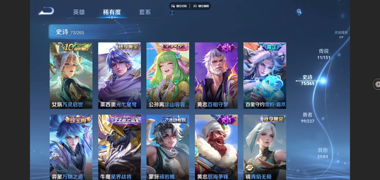 126英雄-213皮肤-124英雄-213皮肤v7-1典藏11传说 发育路33段 【典藏】 赤影疾锋 【传说】 九山相柳 神树通天 云诺千山 鸣野蒿 太华 无限倾心女 绯月行 久胜战神 一念神魔 黄金射手座 胖达荣荣 【热门】万灵启世 涂山容容 至尊宝 太华 烈魂 天狼绘梦者 傲雪梅呛 引擎之心 孙行者 猪悟能 冰冠公主 暗影游猎 原初追逐者 黎明之约 死神来了 狂想玩偶喵 云间偶戏 诗语江南 黄