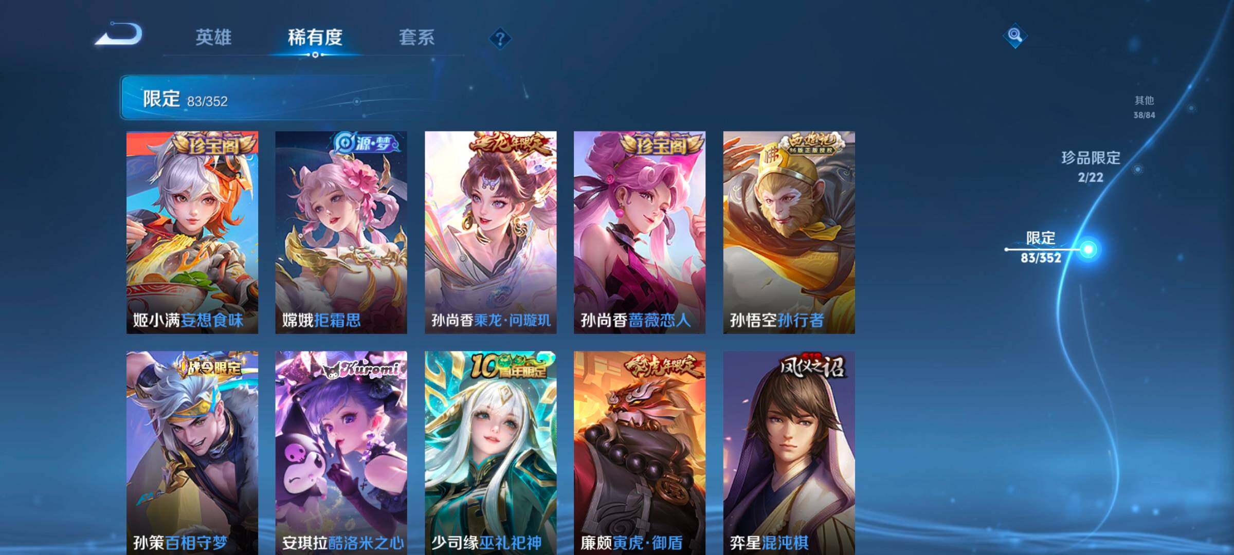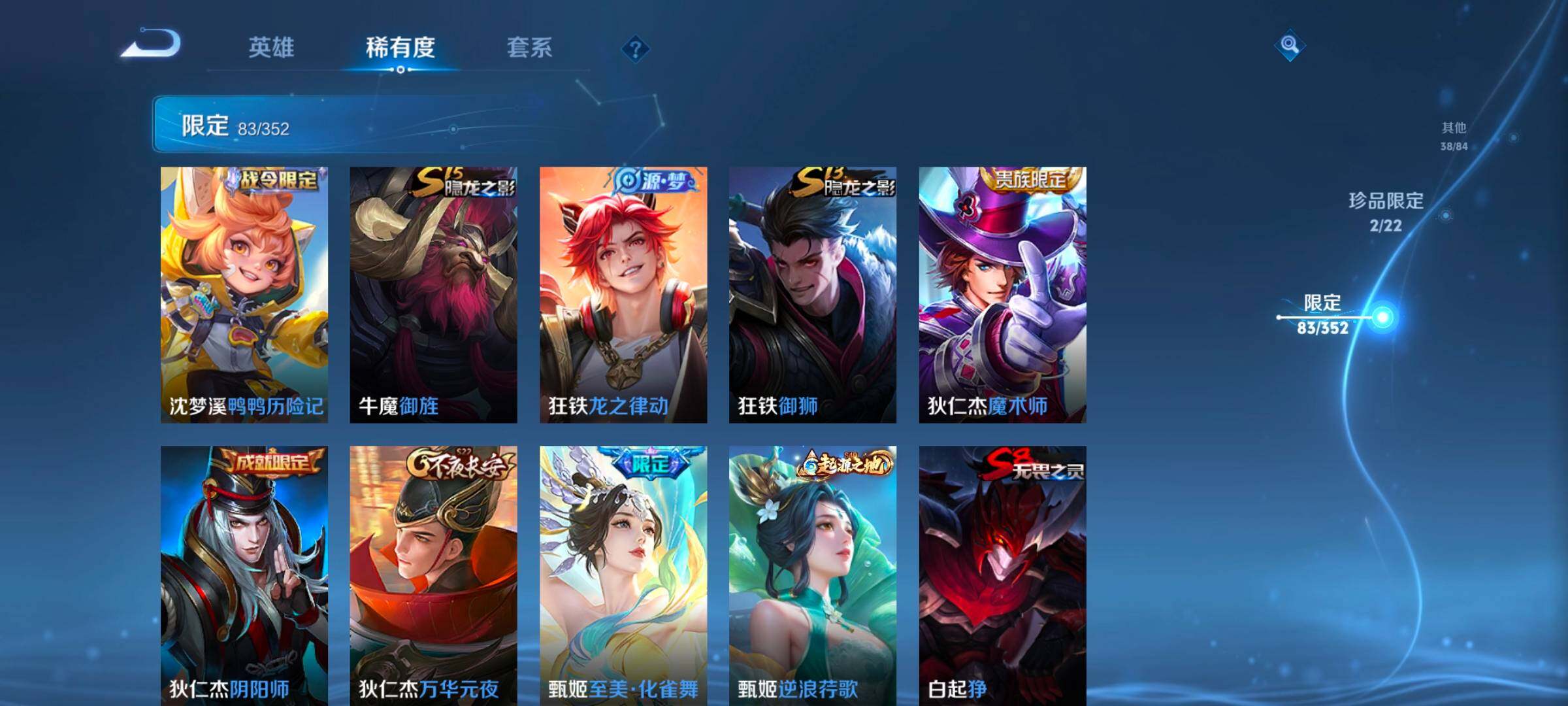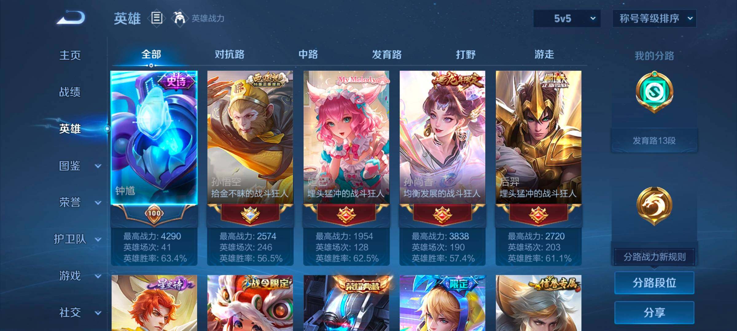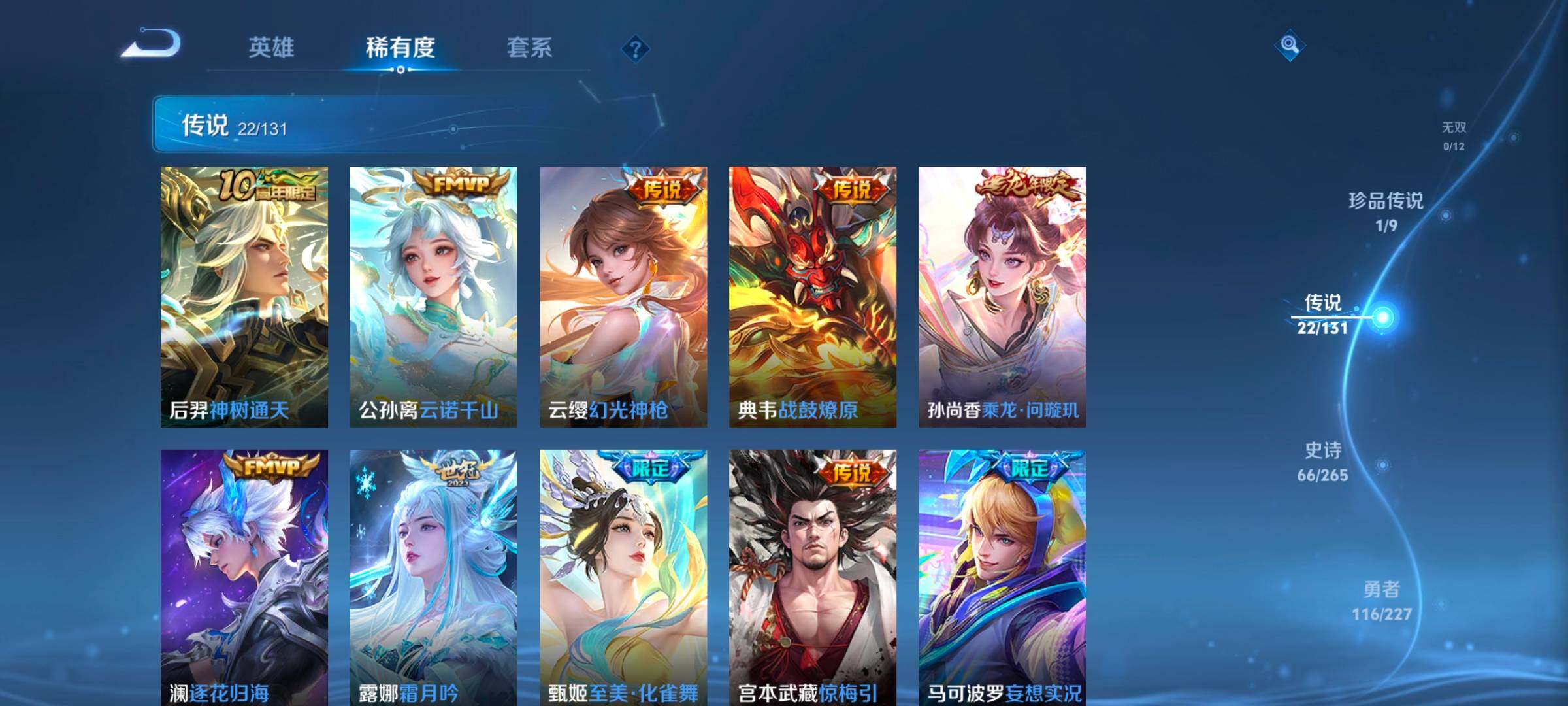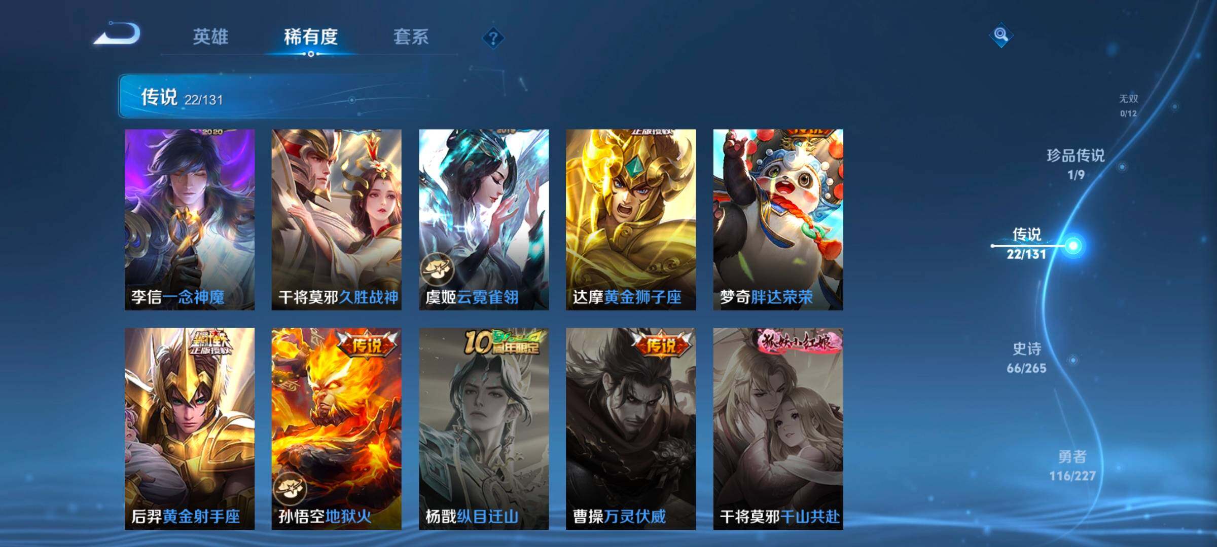 127英雄-245皮肤-账号亮点:15按键 夏侯惇无限飓风号 貂蝉馥梦繁花 安琪拉酷洛米之心 后羿神树通天,公孙离云诺千山,云缨幻光神呛,典韦战鼓燎原,孙尚香乘龙问璇玑,澜逐花归海,露娜霜月吟,甄姬至美化雀舞,宫本武藏惊梅引,马可波罗妄想实况,李白诗剑行,马超无双飞将,赵云淬星耀世,虞姬启明星使,曜云鹰飞将,李信一念神魔,干将莫邪久胜战神,虞姬云霓雀翎,达摩黄金狮子座,梦奇胖达荣荣,后羿黄金射手座,孙悟空地狱火585
