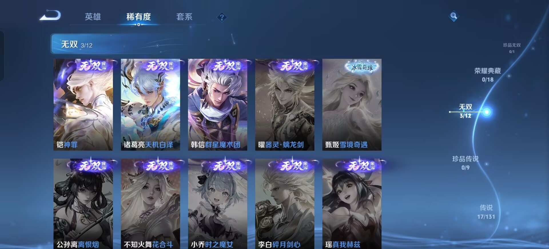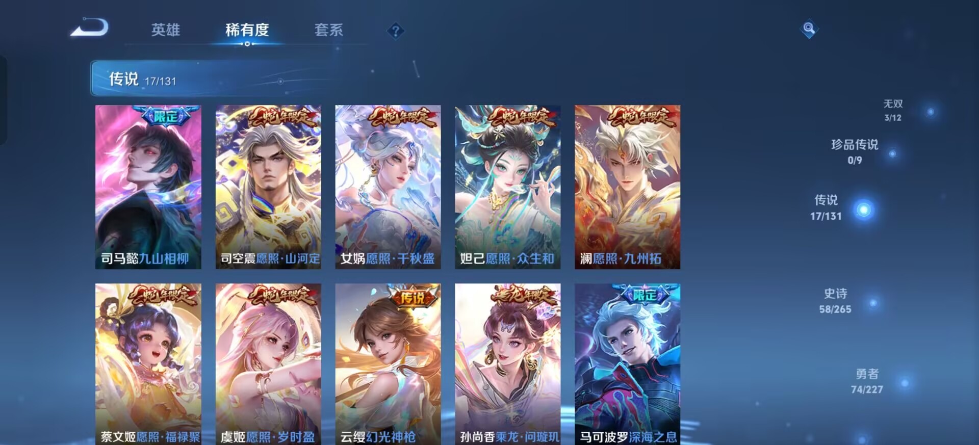 127英雄-167皮肤-[]极品小号 v8 3无双 17传说 127英雄 167皮肤 可修改实名 【英雄全皮】:敖隐全皮空空儿全皮孙权全皮蚩奼全皮司马懿全皮 【稀有英雄】:敖隐小龙人大司命嬴政始皇帝韩信韩跳跳夏洛特夏师傅艾琳橘右京橘子娜可露露鸟人不知火舞赵
