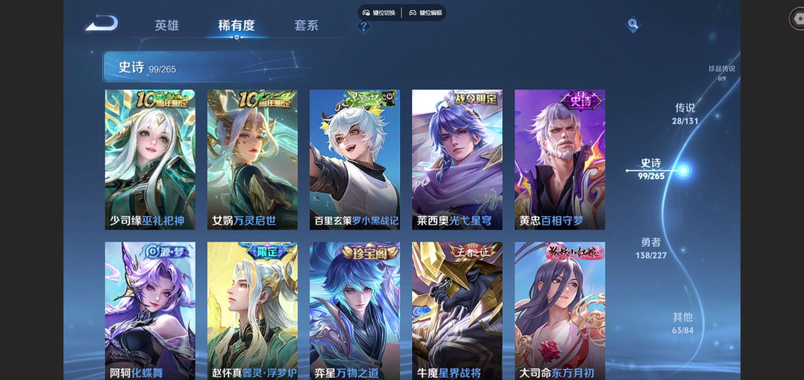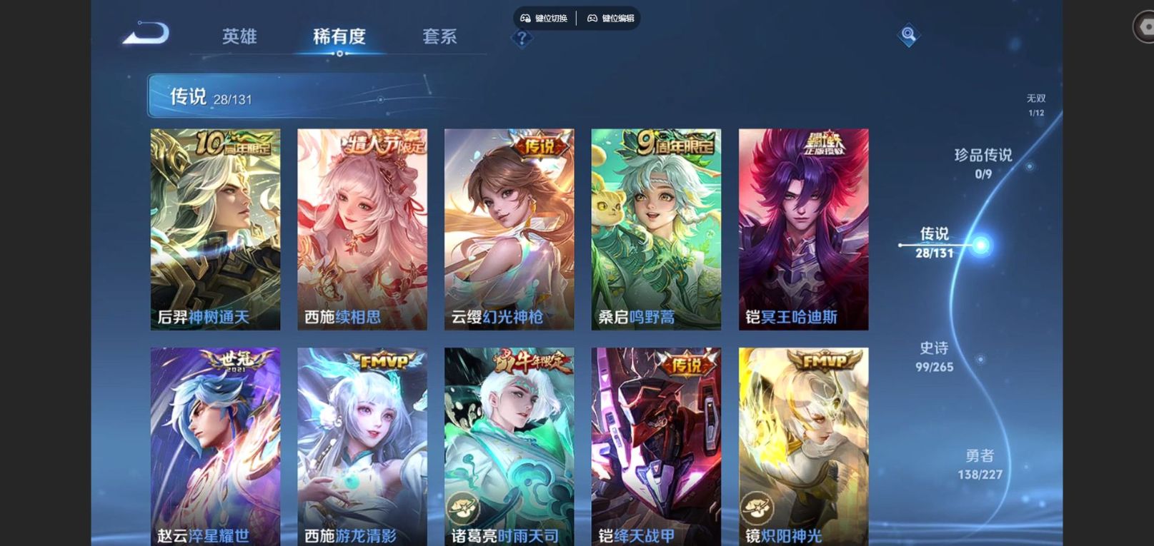 127英雄-333皮肤-125英雄-333皮肤v9-4典藏1无双28传说 3星传说 幽冥火 幽冥之眼 未来机甲 【全皮英雄】 少司缘全皮 达摩全皮 影全皮 【典藏】 活力突击 无限飓风号 全息碎影 杀手不太冷 【无双】 器灵螭龙剑 【传说】 凤求凰 神树通天 续相思 幻光神呛 鸣野蒿 白虎志 启明星使 时雨天司 冥王哈迪斯 武圣 零号赤焰 永曜之星 天魔缭乱 游龙清影 绛天战甲 淬星耀世 地狱火
