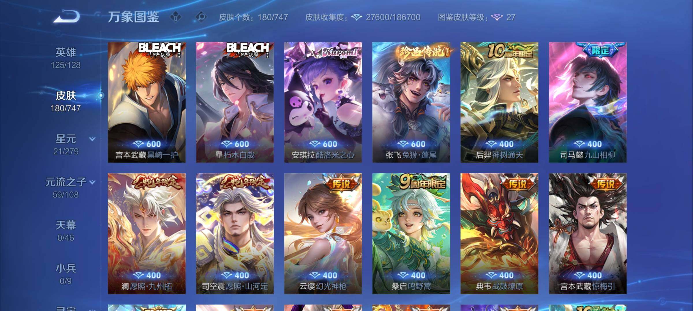【店长主推高质量万战号·1.2w金标司马懿·1.1w金标阿古朵·4珍品传说·黑崎一护·朽木白哉·酷洛米之心·兔狲蓬尾·九山相柳·愿照山河定】【可二次】w7820-安卓q-125英雄-180皮肤-7王者印记-180铭文-贵族积分1w【贵族6】【4珍品·1星传说·13传说·16按键·216幸运值】【因赛季更新游戏段付以上号为准!】 【英雄全皮】:孙权全皮,影全皮 【珍品传说】:张飞兔狲蓬尾,安