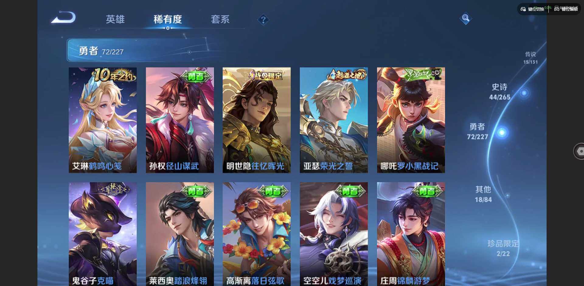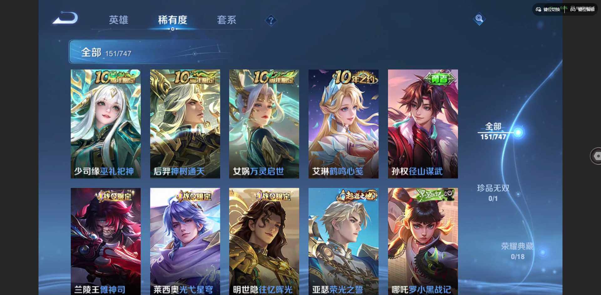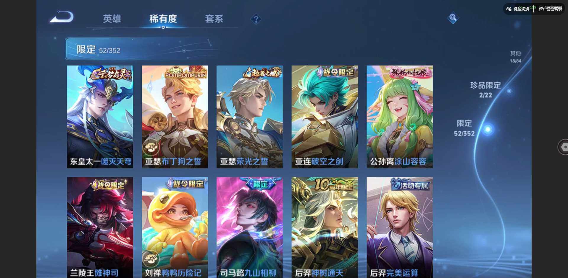 _2300089-实名:可修改贵族等级:v7英雄数:113皮肤数:151珍品传说:器灵·落星盏酷洛米之心传说皮:黄金射手座末日机甲-孙尚香仲夏夜之梦地狱之眼淬星耀世妄想实况澜逐花归海琥珀纪元马超典韦战鼓燎原幻光神呛九山相柳神树通天限定皮:至尊宝逐霄战戟愿照·岁时盈愿照·九州拓