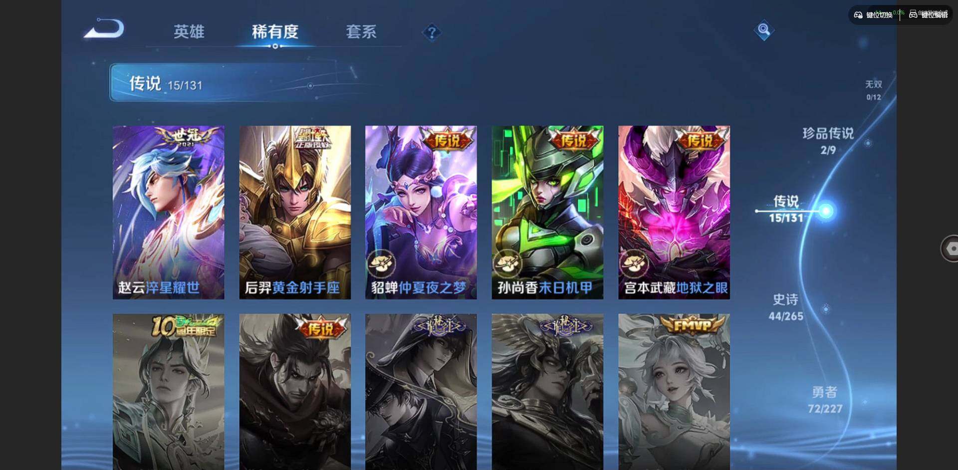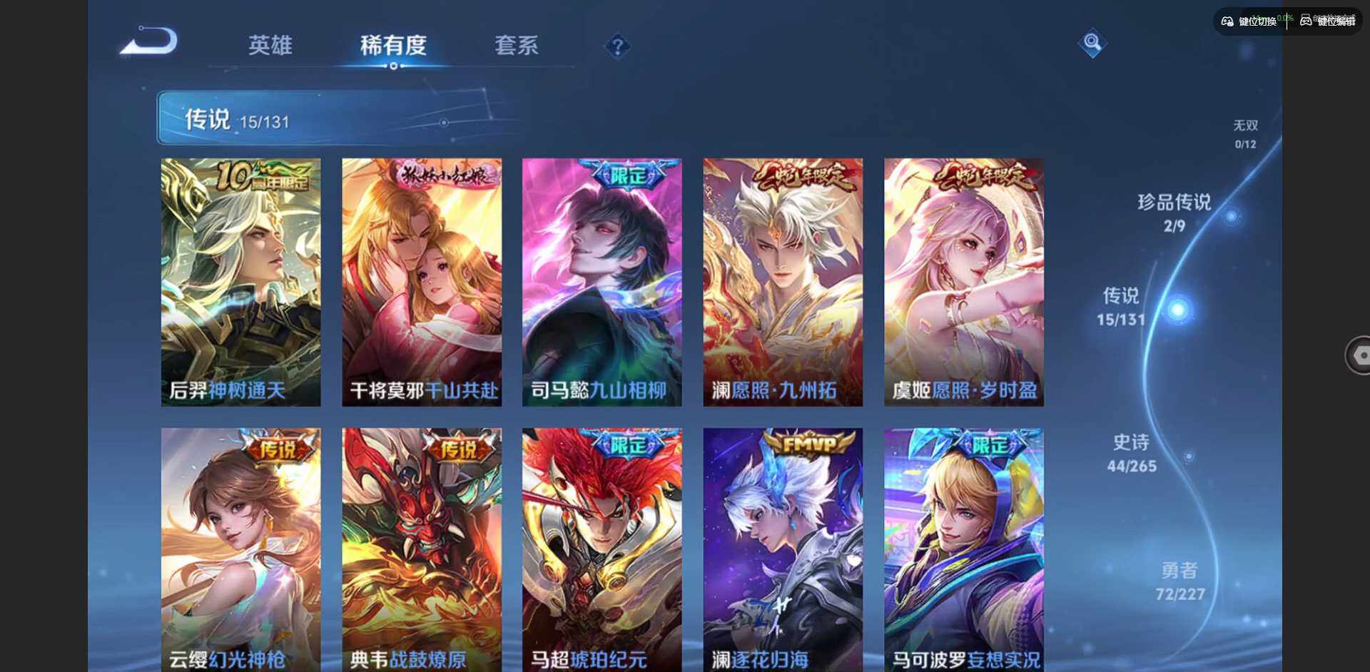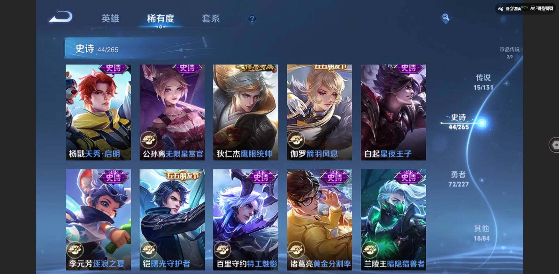 _2300089-实名:可修改贵族等级:v7英雄数:113皮肤数:151珍品传说:器灵·落星盏酷洛米之心传说皮:黄金射手座末日机甲-孙尚香仲夏夜之梦地狱之眼淬星耀世妄想实况澜逐花归海琥珀纪元马超典韦战鼓燎原幻光神呛九山相柳神树通天限定皮:至尊宝逐霄战戟愿照·岁时盈愿照·九州拓