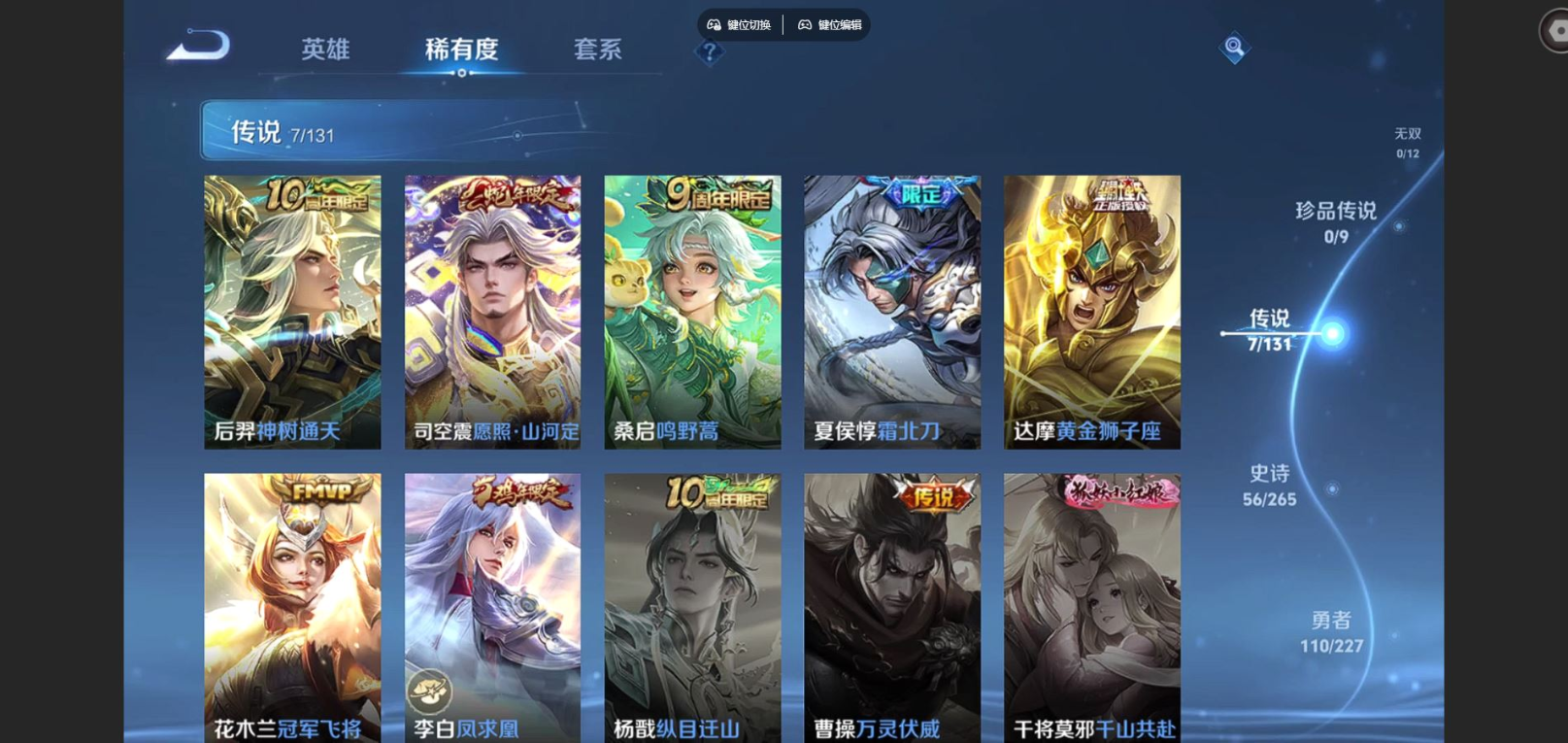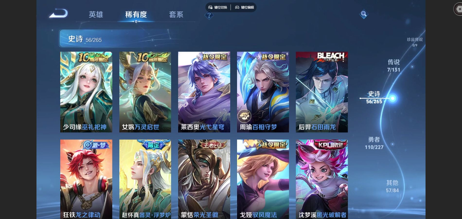 2303033-124英雄-231皮肤-v7-231皮肤1典藏7传说 1星传说 玉鸾吟 【典藏】 银白咏叹调 【传说】 凤求凰 神树通天 愿照山河定 鸣野蒿 霜北刀 冠军飞将 黄金狮子座 【热门】万灵启世 巫礼祀神 冰封战神 朱雀志 圣诞老人 猎兽之王 蓝屏警告 神迹守卫钟馗 狮舞东方 朔望之晖 星空之诺 银河之约 冰冠公主 原初追逐者 死神来了 云间偶戏 玫瑰异探 龙骑士 器灵浮梦炉 匿光
