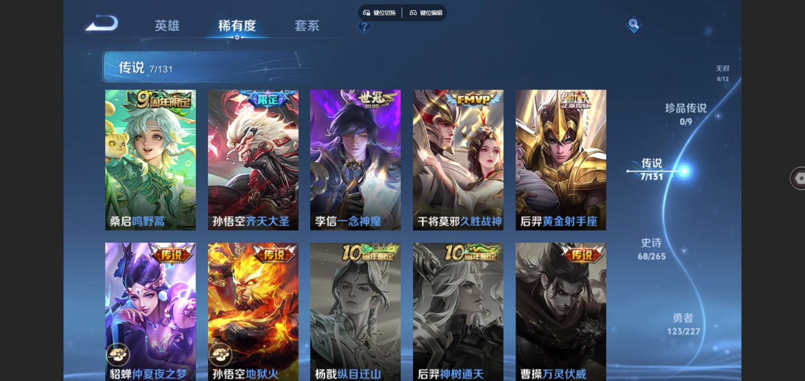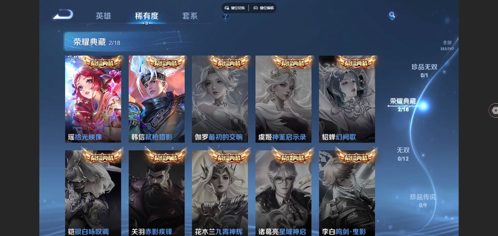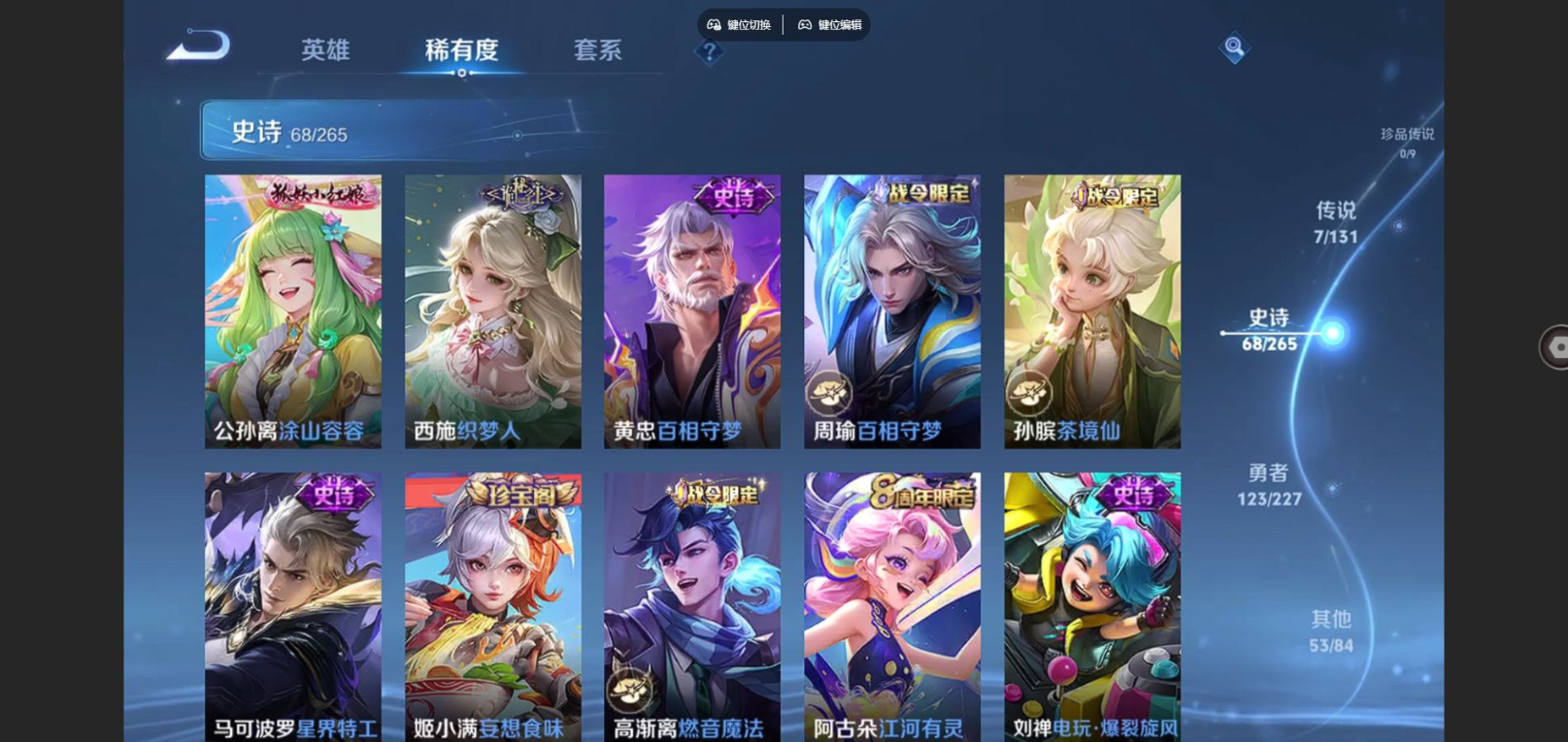 126英雄-257皮肤-124英雄-253皮肤v7-2典藏7传说 2星传说 幽冥火 金色仲夏夜 【典藏】 拾光映像 弑呛猎影 【传说】 鸣野蒿 齐天大圣 地狱火 久胜战神 一念神魔 黄金射手座 仲夏夜之梦 【热门】涂山容容 至尊宝 飞衡 冰冠公主 原初追逐者 梁祝 织梦人 黄忠百相守梦 星界特工 燃音魔法 电玩爆裂旋风 遇见神鹿 原初探秘者 李小龙 水晶猎龙者 暗隐猎兽者 猫狗日记男 猫狗日记女