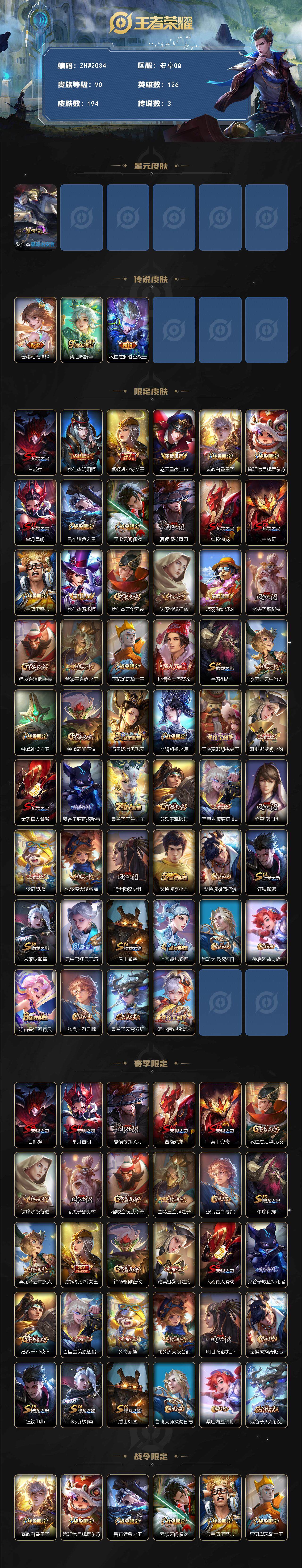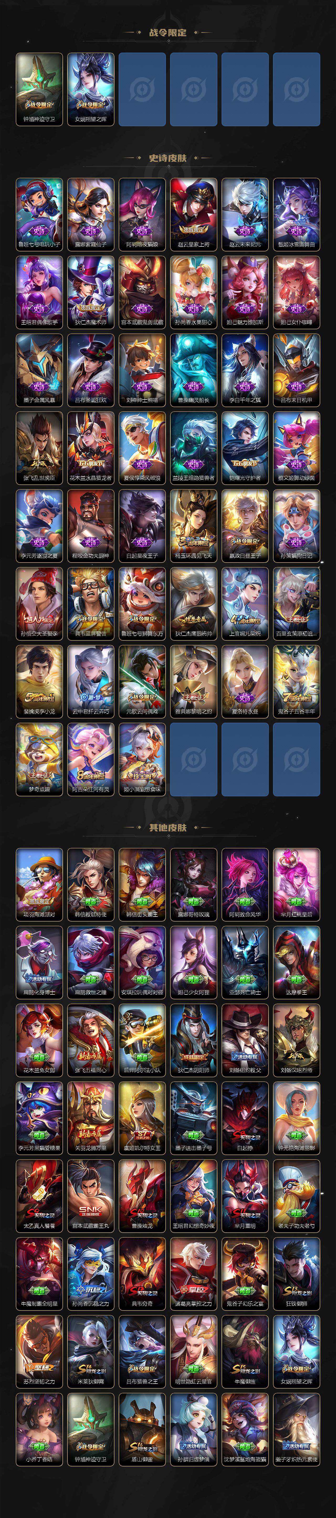 可二次【店主推荐捡漏号!可直接换绑/3市标】:安卓q-v7-最强王者段位-126英雄-194皮肤-3传说-1星元-45史诗 【英雄全皮】:影全皮 【传说皮肤】:云缨幻光神呛,桑启鸣野蒿,狄仁杰超时空战士 【限定皮肤】:白起狰,狄仁杰阴阳师,虞姬凯尔特女王,赵云皇家上将,嬴政白昼王子,鲁班七号狮舞东方,芈月重明,吕布猎兽之王,元歌云间偶戏,夏侯惇朔风刀,曹操烛龙,典韦穷奇,典韦蓝屏警告,狄仁杰魔术师,狄仁杰万华元夜,达摩沙漠行僧,项羽海滩派对,老夫子醍醐杖,程咬金演武夺筹,兰陵王金庭之子,亚瑟潮玩骑士王,孙悟空大圣娶亲,牛魔御旌,李元芳云中旅人,钟馗神迹守卫,钟馗驱傩正仪,杨玉环遇见飞天,女娲朔望之晖,干将莫邪胡桃夹子,雅典娜黎明之约,太乙真人饕餮,鬼谷子原初探秘者,鬼谷子五谷丰年,苏烈千军破阵,百里玄策原初追逐者,弈星混沌棋,梦奇顽趣,沈梦溪大漠名商,明世隐疑决卦,裴擒虎李小龙,裴擒虎擒涛扼浪,狂铁御狮,米莱狄御霄,云中君纤云弄巧,盾山御銮,上官婉儿梁祝,鲁班大师探海日志,桑启海盐诗旅,阿古朵江河有灵,张良古海寻踪,鬼谷子天穹祈灯,姬小满妄想食味 【赛季限定】:白起狰,芈月重明,夏侯惇朔风刀,曹操烛龙,典韦穷奇,狄仁杰万华元夜,达摩沙漠行僧,老夫子醍醐杖,程咬金演武夺筹,兰陵王金庭之子,张良古海寻踪,牛魔御旌,李元芳云中旅人,虞姬凯尔特女王,钟馗驱傩正仪,雅典娜黎明之约,太乙真人饕餮,鬼谷子原初探秘者,苏烈千军破阵,百里玄策原初追逐者,弈星混沌棋,梦奇顽趣,沈梦溪大漠名商,明世隐疑决卦,裴擒虎擒涛扼浪,狂铁御狮,米莱狄御霄,盾山御銮,鲁班大师探海日志,桑启海盐诗旅,鬼谷子天穹祈灯 【战令限定】:嬴政白昼王子,鲁班七号狮舞东方,吕布猎兽之王,元歌云间偶戏,典韦蓝屏警告,亚瑟潮玩骑士王,钟馗神迹守卫,女娲朔望之晖 【史诗皮肤】:鲁班七号电玩小子,露娜紫霞仙子,阿轲暗夜猫娘,赵云皇家上将,赵云未来纪元,甄姬冰雪圆舞曲,王昭君偶像歌手,狄仁杰魔术师,宫本武藏鬼剑武藏,孙尚香水果甜心,妲己魅力维加斯,妲己女仆咖啡,墨子金属风暴,吕布圣诞狂欢,刘禅绅士熊喵,曹操幽灵船长,李白千年之狐,吕布末日机甲,张飞乱世虎臣,花木兰水晶猎龙者,夏侯惇乘风破浪,兰陵王暗隐猎兽者,铠曙光守护者,蔡文姬舞动绿茵,李元芳逐浪之夏,程咬金功夫厨神,白起星夜王子,杨玉环遇见飞天,嬴政白昼王子,孙策猫狗日记,孙悟空大圣娶亲,典韦蓝屏警告,鲁班七号狮舞东方,狄仁杰鹰眼统帅,上官婉儿梁祝,百里玄策原初追逐者,裴擒虎李小龙,云中君纤云弄巧,元歌云间偶戏,雅典娜黎明之约,夏洛特永昼,鬼谷子五谷丰年,梦奇顽趣,阿古朵江河有灵,姬小满妄想食味 【其他皮肤】:项羽海滩派对,韩信教廷特使,韩信街头霸王,露娜哥特玫瑰,阿轲致命风华,芈月红桃皇后,扁鹊化身博士,扁鹊救世之瞳,安琪拉玩偶对对碰,妲己少女阿狸,亚瑟死亡骑士,达摩拳王,花木兰兔女郎,张飞五福同心,后羿阿尔法小队,狄仁杰阴阳师,刘备纽约教父,刘备汉昭烈帝,李元芳黑猫爱糖果,关羽龙腾万里,虞姬凯尔特女王,墨子进击墨子号,白起狰,钟无艳海滩丽影,太乙真人饕餮,宫本武藏霸王丸,曹操烛龙,王昭君幻想奇妙夜,芈月重明,老夫子功夫老勺,牛魔制霸全明星,孙尚香沉稳之力,典韦穷奇,诸葛亮掌控之力,鬼谷子幻乐之宴,狂铁御狮,苏烈坚韧之力,米莱狄御霄,吕布猎兽之王,明世隐虹云星官,牛魔御旌,女娲朔望之晖,小乔丁香结,钟馗神迹守卫,盾山御銮,孙膑归虚梦演,沈梦溪鲨炮海盗猫,姜子牙炽热元素使,夏侯惇朔风刀,弈星混沌棋,哪吒次元突破,鲁班七号黑桃队长,明世隐疑决卦,盾山圆桌骑士,老夫子醍醐杖,鬼谷子原初探秘者,狄仁杰万华元夜,亚瑟潮玩骑士王,刘禅秘密基地,杨戬次元傲视,程咬金演武夺筹,张良缤纷绘卷,盘古重装意志,钟馗驱傩正仪,鲁班大师乓乓大师,苏烈千军破阵,干将莫邪胡桃夹子,马可波罗潮玩牛仔,达摩沙漠行僧,程咬金无双福将,兰陵王金庭之子,沈梦溪大漠名商,蒙恬蔚蓝守将,李元芳云中旅人,桑启海盐诗旅,猪八戒潮玩探月行,裴擒虎擒涛扼浪,鲁班大师探海日志,李元芳妄想特派,张良古海寻踪,亚连破局者,后羿完美运算,鬼谷子天穹祈灯,廉颇功夫炙烤,东皇太一噬灭天穹,干将莫邪雾都夜雨,苍苍林狼骑,太乙真人谧流熔炉,典韦铁骨偃魂,影魅影绮裳,西施雪境奇遇,姜子牙星梦巡礼,明世隐景韶洛都,戈娅玫蓝誓约,阿古朵布丁狗之约,亚瑟荣光之誓,高渐离金属狂潮,项羽帝国元帅,钟无艳生化警戒,貂蝉异域舞娘,老夫子潮流仙人,王昭君精灵公主,曹操死神来了,孙悟空西部大镖客,周瑜海军大将,后羿精灵王,李白范海辛,李元芳特种部队,蔡文姬蔷薇王座,雅典娜战争女神,马可波罗激情绿茵,苍维京掠夺者,杨戬埃及法老,太乙真人圆桌骑士,哪吒三太子,诸葛亮星航指挥官,黄忠芝加哥教父,大乔伊势巫女,铠龙域领主,百里守约绝影神呛,苏烈爱与和平,梦奇美梦成真,公孙离花间舞,裴擒虎街头旋风,元歌午夜歌剧院,孙策海之征途,司马懿魇语军师,伽罗花见巫女,沈梦溪棒球奇才,李信灼热之刃,上官婉儿修竹墨客,猪八戒年年有余,盘古创世神祝,曜归虚梦演,马超幸存者,西施归虚梦演,蒙犽归虚梦演,镜冰刃幻境,蒙恬秩序猎龙将,阿古朵熊喵少女,澜孤猎,司空震启蛰,云缨赤焰之缨,金蝉前尘,暃碧珀绯影 【内测皮肤】:干将莫邪胡桃夹子 【营地id】:50725348 【星元皮肤