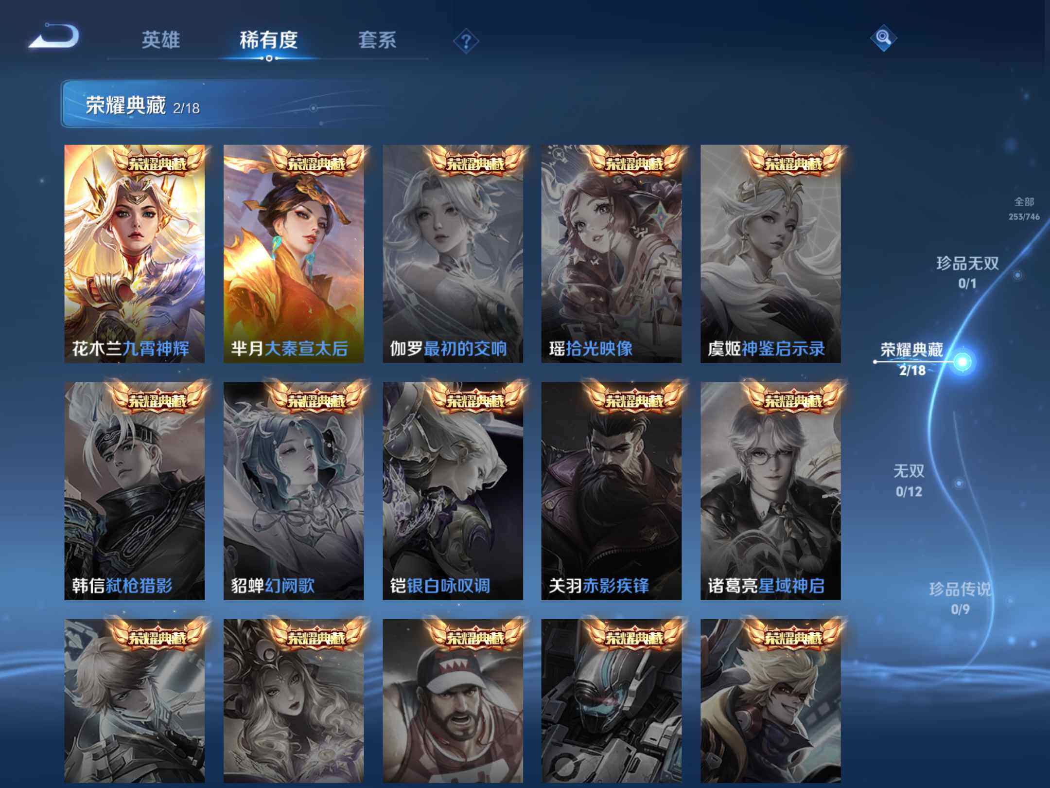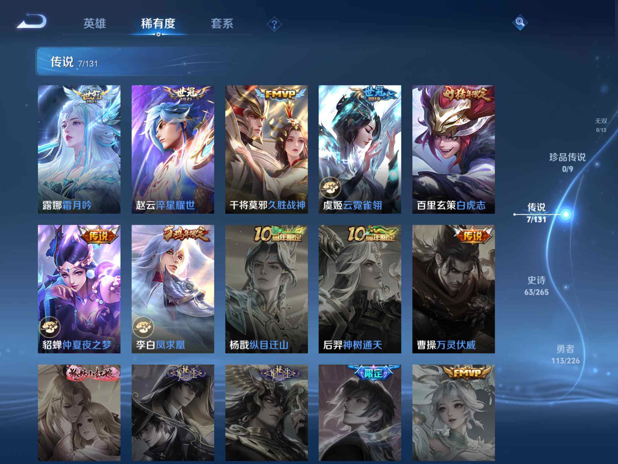 _2294899-q-v7-最强王者段位-125英雄-253皮肤-2典藏-7传说-63史诗 【英雄全皮】:狂铁全皮 【荣耀典藏】:芈月大秦宣太后,花木兰九霄神辉 【传说皮肤】:露娜霜月吟,赵云淬星耀世,干将莫邪久胜战神,虞姬云霓雀翎,百里玄策白虎志,貂蝉仲夏夜之梦,李白凤求凰 【限定皮肤】:白起狰,狄仁杰阴阳师,虞姬凯尔特女王,赵云皇家上将,嬴政优雅恋人,鲁班七号狮舞东方,庄周蜃楼王,庄周高山流水,孙膑妖精王,扁鹊炼金王,芈月重明,周瑜赤莲之焰,元歌云间偶戏,元歌无心,夏侯惇朔风刀,甄姬游园惊梦,曹操烛龙,典韦穷奇,典韦蓝屏警告,狄仁杰魔术师,狄仁杰万华元夜,达摩沙漠行僧,项羽海滩派对,老夫子醍醐杖,安琪拉魔法小厨娘,程咬金演武夺筹,王昭君午后时光,兰陵王驯魔猎人,兰陵王金庭之子,亚瑟潮玩骑士王,孙悟空大圣娶亲,牛魔御旌,李元芳银河之约,李元芳云中旅人,钟馗神迹守卫,钟馗驱傩正仪,杨玉环遇见飞天,女娲朔望之晖,雅典娜单词大作战,太乙真人饕餮,鬼谷子原初探秘者,苏烈千军破阵,百里玄策白虎志,百里玄策原初追逐者,弈星混沌棋,沈梦溪星空之诺,沈梦溪大漠名商,明世隐疑决卦,裴擒虎李小龙,裴擒虎擒涛扼浪,狂铁御狮,狂铁电玩高手,米莱狄御霄,云中君纤云弄巧,盾山御銮,猪八戒猪悟能,上官婉儿梁祝,嫦娥拒霜思,蒙犽狂想玩偶喵,鲁班大师探海日志,桑启海盐诗旅,艾琳女武神,阿古朵江河有灵,张良古海寻踪,鬼谷子天穹祈灯,沈梦溪龙舞盛年,刘邦剑破天穹 【年限皮肤】:百里玄策白虎志,李白凤求凰 【赛季限定】:庄周蜃楼王,孙膑妖精王,扁鹊炼金王,白起狰,芈月重明,夏侯惇朔风刀,曹操烛龙,典韦穷奇,狄仁杰万华元夜,达摩沙漠行僧,老夫子醍醐杖,程咬金演武夺筹,兰陵王金庭之子,张良古海寻踪,牛魔御旌,李元芳云中旅人,虞姬凯尔特女王,钟馗驱傩正仪,太乙真人饕餮,鬼谷子原初探秘者,苏烈千军破阵,百里玄策原初追逐者,弈星混沌棋,沈梦溪大漠名商,明世隐疑决卦,裴擒虎擒涛扼浪,狂铁御狮,米莱狄御霄,盾山御銮,鲁班大师探海日志,桑启海盐诗旅,鬼谷子天穹祈灯,刘邦剑破天穹 【战令限定】:鲁班七号狮舞东方,周瑜赤莲之焰,元歌云间偶戏,典韦蓝屏警告,王昭君午后时光,兰陵王驯魔猎人,亚瑟潮玩骑士王,李元芳银河之约,钟馗神迹守卫,女娲朔望之晖,雅典娜单词大作战,沈梦溪星空之诺,狂铁电玩高手,蒙犽狂想玩偶喵 【史诗皮肤】:鲁班七号电玩