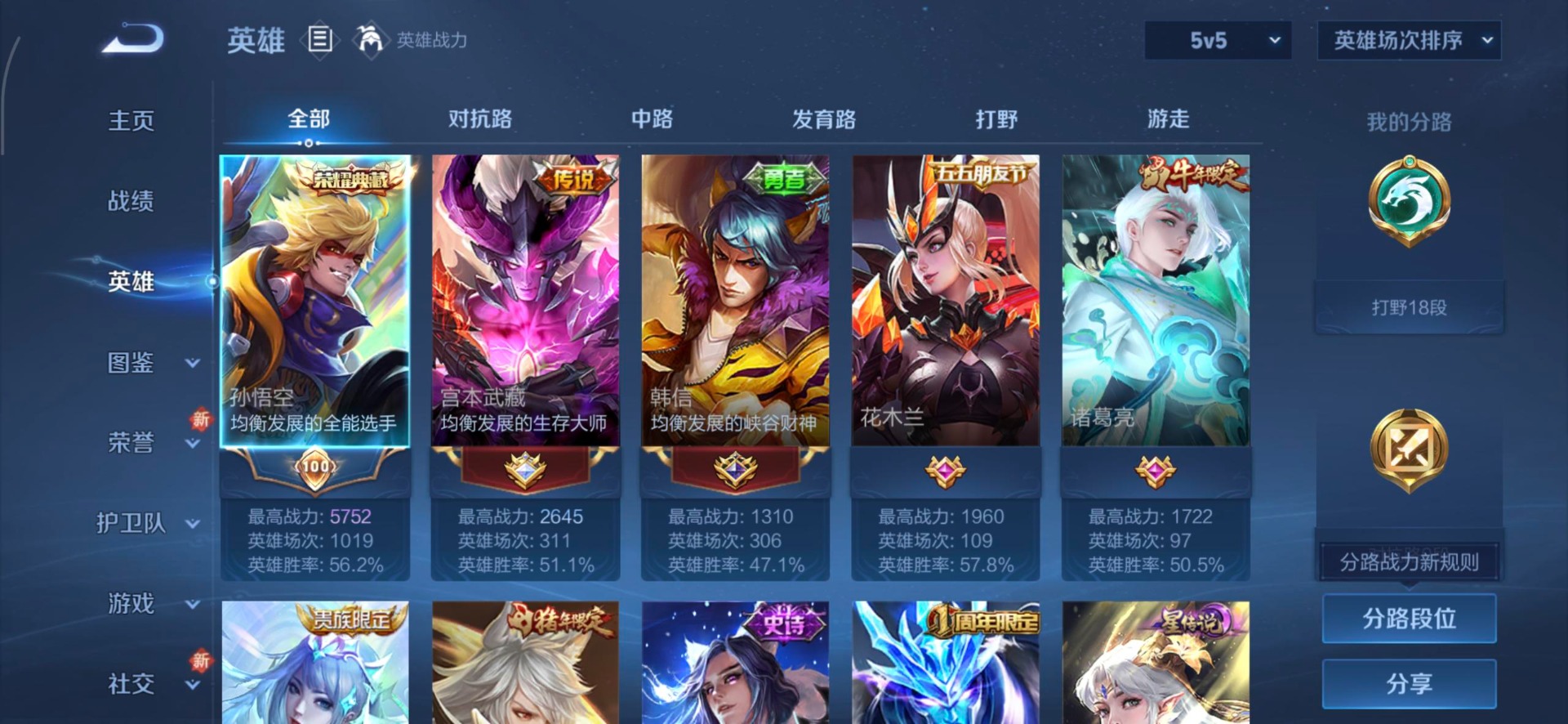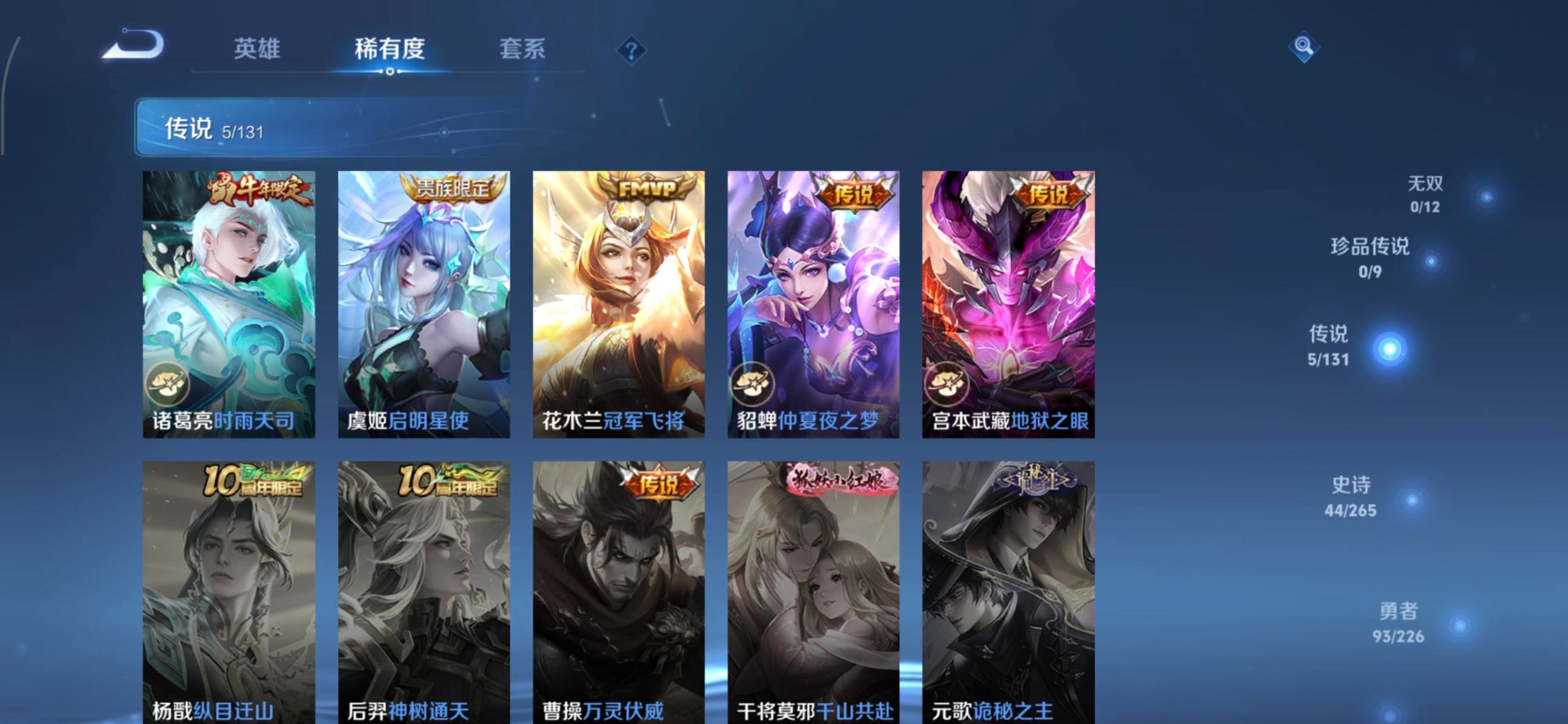 v8 1典藏 5传说 125英雄 211皮肤 可修改实名 【稀有英雄】:大司命嬴政始皇帝韩信韩跳跳夏洛特夏师傅艾琳橘右京橘子娜可露露鸟人不知火舞赵云金蝉唐僧戈娅 【荣耀水晶】:全息碎影猴子典藏 【传说皮】:仲夏夜之梦大飞蛾地狱之眼冠军飞将 【