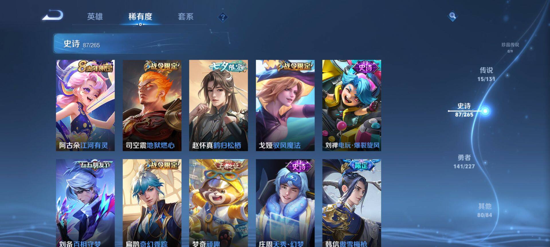127英雄-326皮肤-yzj12359,可二次,安卓q-v8,极品打野号,3星元,玉鸾吟,幽冥之眼,星际治安官,历史8银标,元歌,司空震,干将,不知火舞,花木兰,牛魔,关羽,镜,鸣剑,弑呛猎影,九霄,凤求凰,白虎志,至尊宝,飞衡,326皮肤3典藏15传说,【典藏】,鸣剑曳影,九霄神辉,弑呛猎影,【传说】,逐花归海,惊梅引,凤求凰,神树通天,鸣野蒿,白虎志,启明星使,武圣,诗剑行,炽阳神光,久胜战神,黄金狮子座,超时