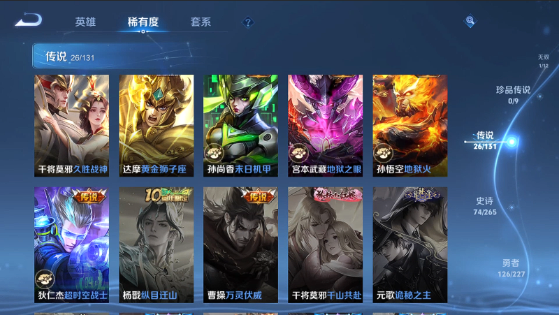 【王者荣耀】【lywz22373】珍品无双0 典藏1 无双1 珍品传说0 传说26 史诗74 英雄127 皮肤265 贵族7级 荣耀典藏:最初的交响__无双皮肤:雪境奇遇__传说皮肤:鸣野蒿|深海之息|炽阳神光|启明星使|地狱之眼|地狱火|久胜战神|黄金狮子座|狄仁杰-超时空战士|黄金白羊座|猫影幻舞|一念神魔|乞巧织情|淬星耀世|孙尚香-末日机甲|祈雪灵祝|妄想实况|幻光神呛|愿照·岁时盈|愿照·山河定|愿照·九州拓|愿照·众生和|愿照·福禄聚|愿照·千秋盛|云诺千山|神树通天__稀有限定:神威|烈魂|李小龙|梁祝|拒霜思|大漠名商|繁星吟游|古海寻踪|海滩派对|海盐诗旅|航海奇遇记|幻夜卜梦|皇家上将|混沌棋|火炮绅士|剑破天穹|金庭之子|凯尔特女王|黎明之约|炼金王|魔术师|女武神|千军破阵|擒涛扼浪|穷奇|驱傩正仪|荣光圣徽|沙漠行僧|朔风刀|探海日志|醍醐杖|天穹祈灯|万华元夜|妄想食味|五谷丰年|纤云弄巧|演武夺筹|妖精王|疑决卦|阴阳师|御旌|御銮|御狮|逐梦之音|暗夜贵公子|暗夜猫娘|暗隐猎兽者|白龙吟|白蛇|缤纷独角兽|冰雪圆舞曲|苍穹之光|乘风破浪|德古拉伯爵|地狱岩魂|功夫厨神|鬼剑武藏|箭羽风息|金属风暴|乐园奇幻夜|龙鼓争鸣|魅力维加斯|魅语|女仆咖啡|偶像歌手|赏金猎手|绅士熊喵|圣诞狂欢|圣诞恋歌|诗语江南|水果甜心|水晶猎龙者|孙策-猫狗日记|滕王阁序|天才门将|天秀·启明|赵云-未来纪元|星夜王子|摇滚巨星|鹰眼统帅|永昼|幽灵船长|逐浪之夏|紫霞仙子|噬灭天穹|敬我三分|破空之剑|天穹之誓|安琪拉-时之奇旅|修罗|曙光守护者|千年之狐|舞动绿茵|特工魅影|谧流熔炉|万物之道|器灵·浮梦炉|御霄|狰|原初探秘者|重明|云中旅人|孙悟空-神迹守卫|墨子-神迹守卫|刘禅-鸭鸭历险记|沈梦溪-鸭鸭历险记|龙之律动|布丁狗之约|虚灵犬护|石田雨龙|幻珠鲛人|黄忠-百相守梦|织梦人|涂山容容|荣光之誓|巫礼祀神|鹤鸣心笺__优质皮肤:尼罗河女神|埃及法老|孤猎|午夜歌剧院|露花倒影|激情绿茵|天启骑士|森|超能战警|英喵野望|维京掠夺者|海军大将|绯红之刃|踏雪寻梅|启蛰|第七人偶|芝加哥教父|绝影神呛|地府判官|赤焰之缨|福禄兄弟|前尘|特种部队|剑舞者|范海辛|爱与和平|花间舞|魇语军师|花见巫女|帝国元帅|战争女神|异域舞娘|精灵公主|修竹墨客|万圣前夜|怪诞之夜|暗都幽影|功夫炙烤|潮玩探月行|瓷语鉴心|秘密基地|次元突破|鲨炮海盗猫|野性能量|丁香结|虹云星官|守护之力|坚韧之力|幻乐之宴|功夫老勺|海滩丽影|阿尔法小队|兔女郎|死亡骑士|黄金武士|少女阿狸|天使之翼|玩偶对对碰|宫本武藏-未来纪元|东方不败|忍·炎影|爱心护理|街头霸王|教廷特使|金色潮汐|西部游侠|太极少年|幻泉雾影|危途狂花|次元傲视|制霸全明星|拳王|时尚教父|白色死神|白执事|大发明家|致命风华|哥特玫瑰|金福满堂|星梦巡礼|灵卦秘语|缤纷绘卷|掌控之力|纽约教父|龙腾万里|霸王丸|乱世虎臣|敏锐之力|孙悟空-西部大镖客|牛魔-西部大镖客|龙舞盛年|汉昭烈帝|乓乓大师|五福同心|盾山-圆桌骑士|万事如意|沉稳之力|程咬金-群星魔术团|化身博士|花好人间|万象初新|苍林狼骑|蔚蓝守将|劲辣红锅|特工战影|炽热元素使|春野闲踪|灵野札记|命运加冕|小满鸭|死霸装|无双福将|踏浪烽翎|云械蓝图|落日弦歌|克喵|哪吒-罗小黑战记|径山谋武__贵族等级:贵族7级__王者段位:绝世王者伽罗典藏 甄姬无双 多热门传说皮肤
