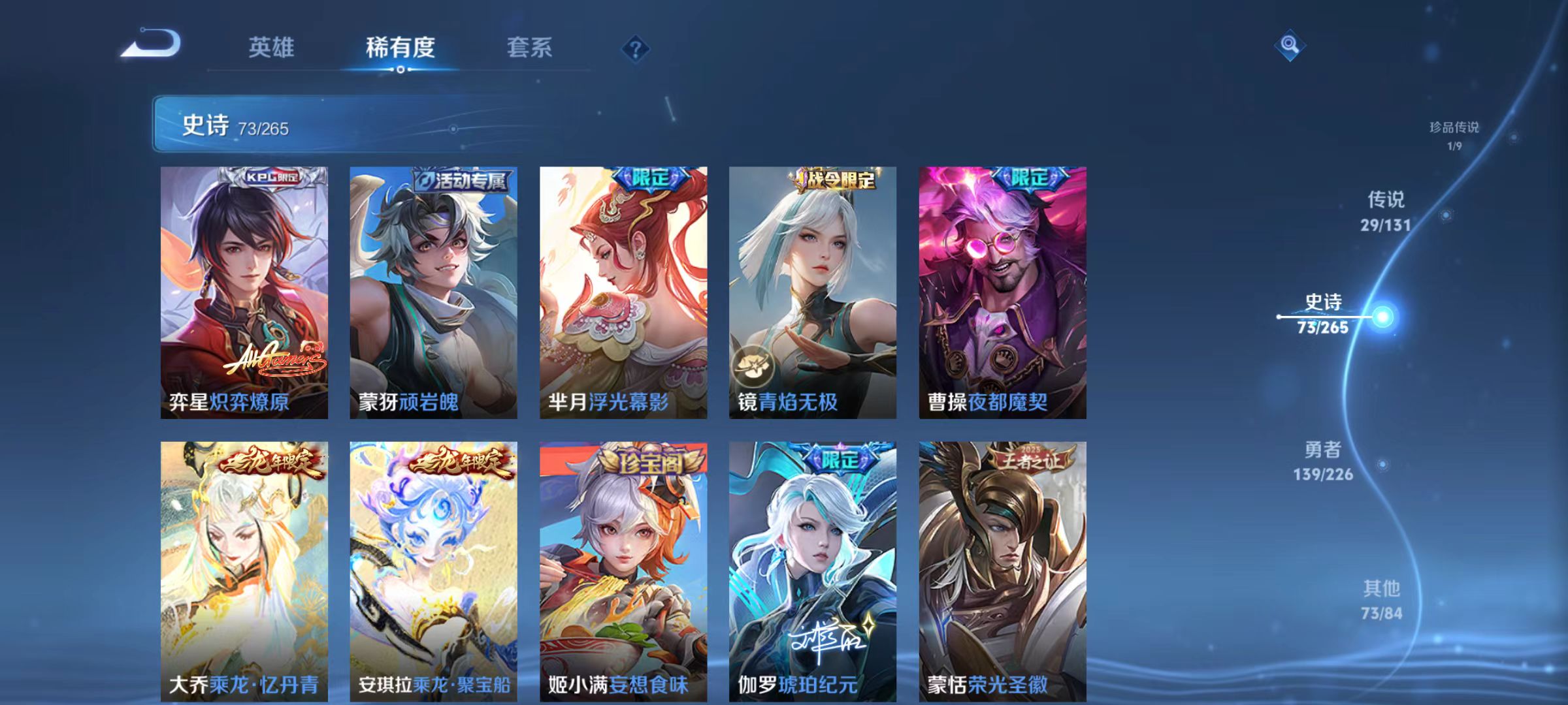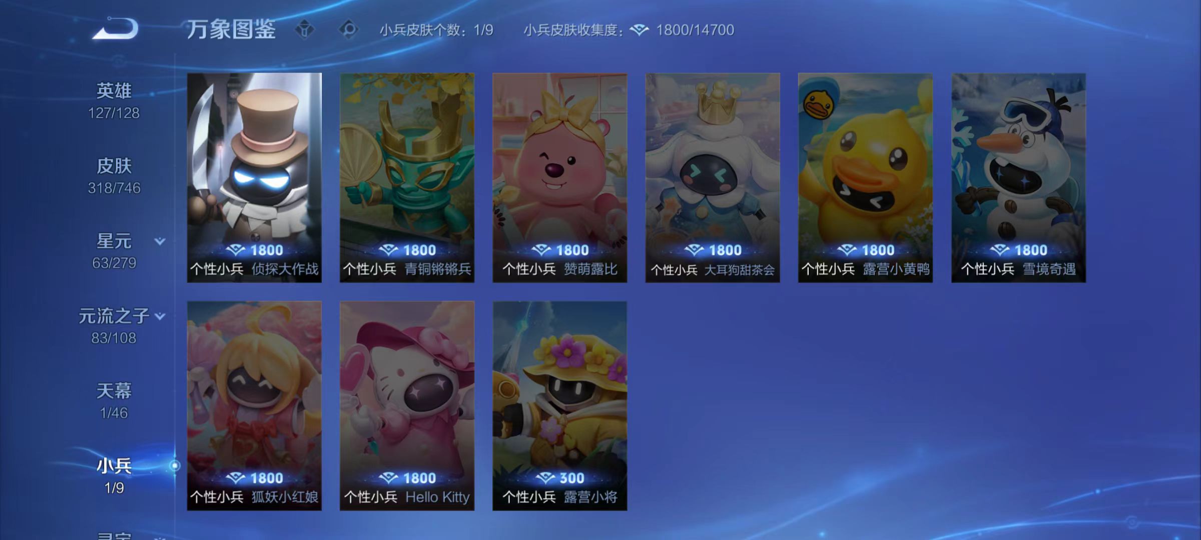 v8马上v9【318皮肤1典藏2无双1珍品29传说】幻阙歌 花合斗 碎月剑心 大耳狗之梦 游龙清影 永恒水手月亮 燃星之曲 补天 鸣野蒿 映山客 时之奇旅 霜月吟 冥王哈迪斯 怒海麟威 海洋之心 云诺千山 胖达荣荣 乘龙·铭钟鼎 地狱火 乘龙·问璇玑 乘龙·淬吴钩 零号·赤焰 仲夏夜之梦 乞巧织情 神树通天 启明星使 愿照·千秋盛 地狱之眼 黄金狮子座 星之鸣奏 炽阳神光 幻光神呛 黄金白羊座 化蝶舞 逐浪之夏 心灵战警 水果甜心 青焰无极 百相守梦 特工魅影 猫狗日记 乘龙·聚宝船 天才门将 夜都魔契 缤纷独角兽 冰冠公主 龙之律动 琥珀纪元 乘龙·忆丹青 千年之狐 紫霞仙子 星夜王子 妄想食味 电玩·爆裂旋风 江河有灵 雪夜绮愿 荣光圣徽 百解令 魅力维加斯 冰雪圆舞曲 巫礼祀神 器灵·浮梦炉 圣诞狂欢 曙光守护者 乘风破浪 节奏热浪 暗夜猫娘 未来纪元 谪仙醉月 女仆咖啡 鬼剑武藏 涂山容容 猫狗日记 魅语 炽弈燎原 万灵启世 舞动绿茵 织梦人 电玩小子 顽岩魄 浮光幕影 金属风暴 德古拉伯爵 地狱岩魂 偶像歌手 摇滚巨星 圣诞恋歌 黄金分割率 霸王丸 飞衡 阴阳师 魔术师 蔚蓝守将 拒霜思 水晶猎龙者 游园惊梦 遇见飞天 神迹守卫 乓乓大师 海滩派对 梁祝 幽恒 纤云弄巧 五谷丰年 劲辣红锅 皇家上将 神器·万象笔 王者之锤 黎明之约 沉稳之力 死亡骑士 景韶洛都 白色死神 浪漫序章 爱心护理 布丁狗之约 危途狂花 忍·炎影 命运加冕 小满鸭 潮玩探月行 化身博士 死霸装 幽兰居士 锦麟游梦 黑猫爱糖果 丁香结 云械蓝图 大发明家 守护之力 克喵 踏浪烽翎 海滩丽影 天使之翼 罗小黑战记 罗小黑战记 鹤鸣心笺 白执事 女武神 红桃皇后 瓷语鉴心 时空谍影 妄想特派 无双福将 坚韧之力 功夫炙烤 金色潮汐 阿尔法小队 漠中幻影 东方不败 星际陆战队 春野之旅 暗都幽影 龙舞盛年 群星魔术团 教廷特使 特工战影 敏锐之力 兔女郎 救世之瞳 缤纷绘卷 掌控之力 苍威无极 绒语心约 长夏之忆 纽约教父 熔金海岸 破阵·退雄兵 秘密基地 未来纪元 虹云星官 幻想奇妙夜 功夫老勺 次元突破 敬我三分 西部大镖客 炽热元素使 玩偶对对碰 黄金武士 怪诞之夜 万象初新 圆桌骑士 雾都夜雨 哥特玫瑰 少女阿狸 乱世虎臣 雪境奇遇 拳王 星梦巡礼 街头霸王 幻泉雾影 野性能量 幻乐之宴 苍林狼骑 灵卦秘语 龙腾万里 致命风华 铁骨偃魂 万事如意 鲨炮海盗猫 灵野札记 春野闲踪 汉昭烈帝 玫蓝誓约 花好人间 五福同心 天穹祈灯 剑破天穹 沙漠行僧 聚星闪耀 古海寻踪 逆浪荇歌 御狮 噬灭天穹 朔风刀 探海日志 无畏之灵·狰 混沌棋 蜃楼王 疑决卦 原初追逐者 炼金王 谧流熔炉 金庭之子 狮心王 饕餮 醍醐杖 御銮 御霄 天穹之誓 妖精王 重明 御旌 凯尔特女王 穷奇 荣光之誓 千军破阵 烛龙 擒涛扼浪 星界战将 虚灵犬护
