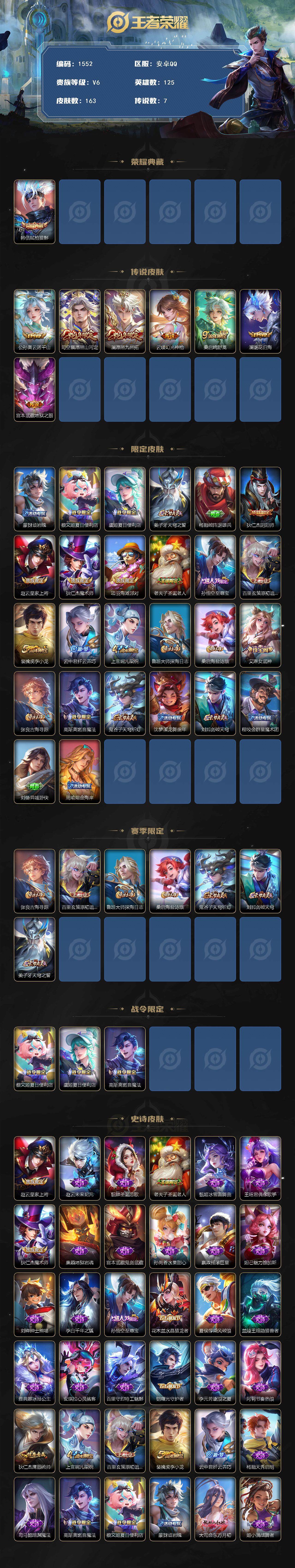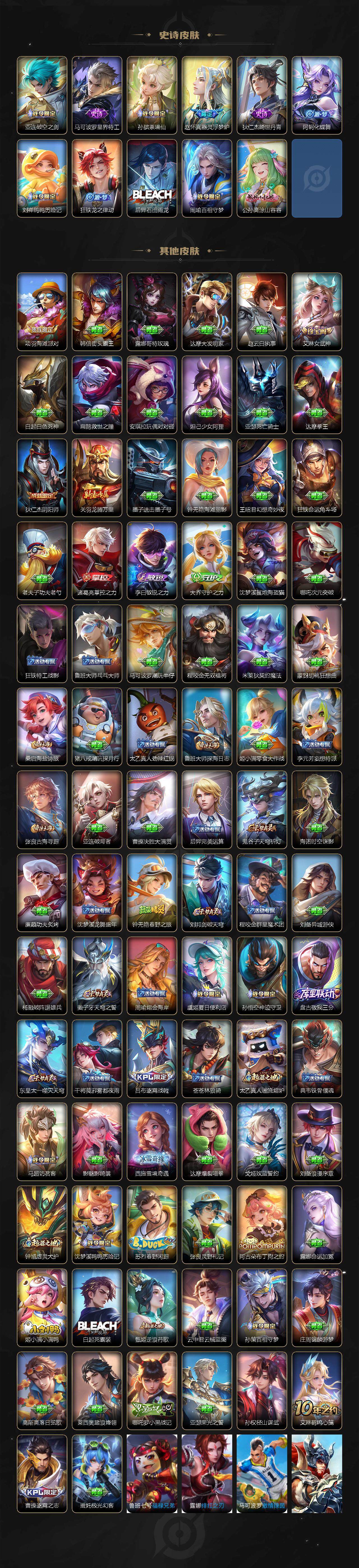 125英雄-163皮肤-贵族6/皮肤163/典藏1/传说7/史诗47/英雄125/孙权全皮/影全皮/弑呛猎影 韩信/云诺千山 公孙离/愿照·山河定 司空震/愿照·九州拓 澜/幻光神呛 云缨/鸣野蒿 桑启/逐花归海 澜/地狱之眼 宫本武藏/顽岩魄 蒙犽/夏日便利店 蔡文姬/夏日便利店 虞姬/天穹之誓 姜子牙/破阵·退雄兵 杨戬/阴阳师 狄仁杰/皇家上将 赵云/魔术师 狄仁杰/海滩派对 项羽/圣诞老人 老夫子/至尊宝 孙