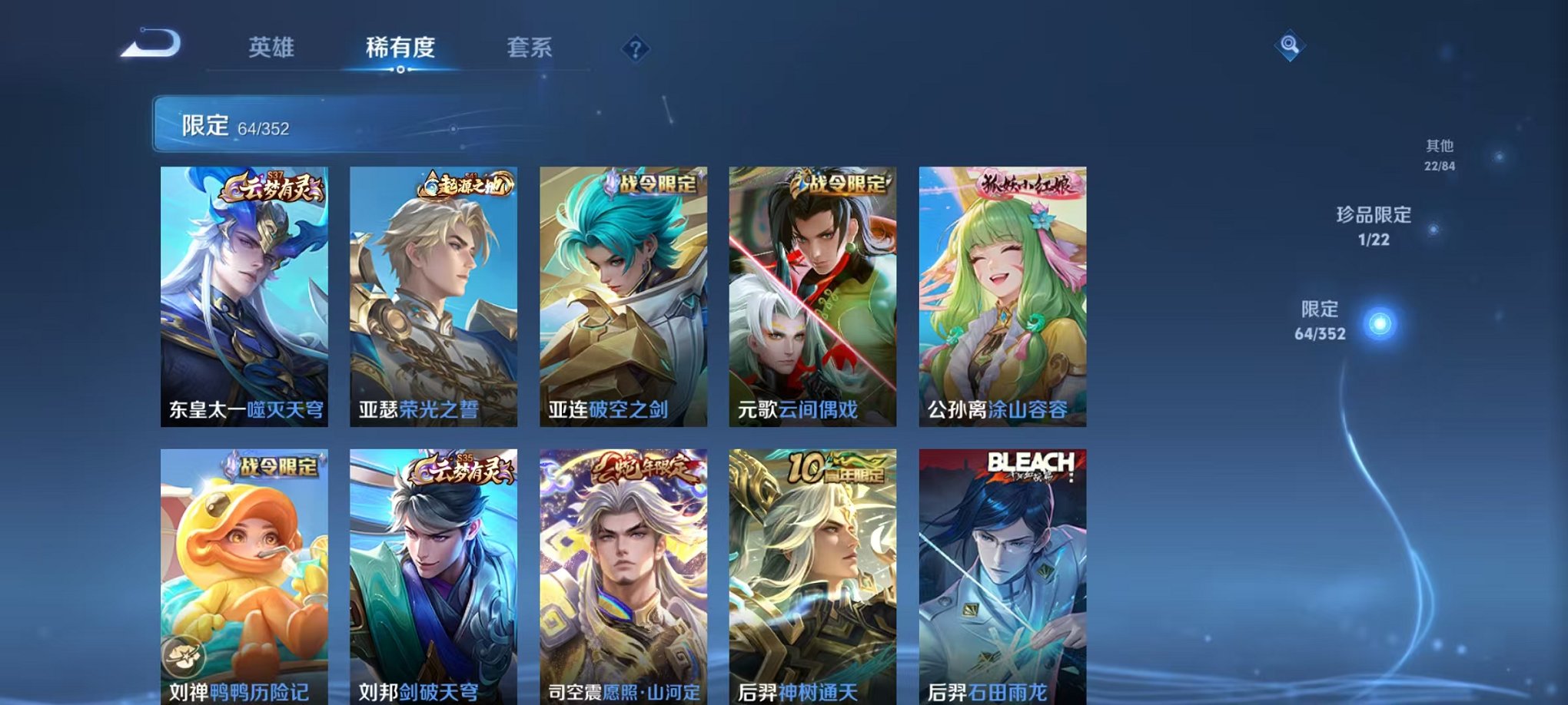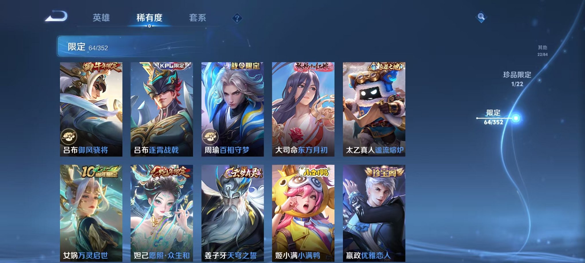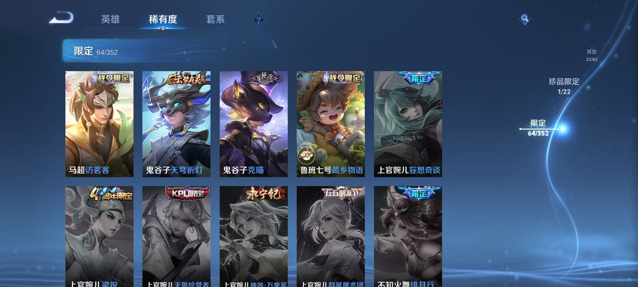 【190皮肤1无双1星元16传说】安卓v区-127英雄-190皮肤【无双皮肤】器灵·螭龙剑【星元皮肤】幽冥之眼【传说皮肤】战鼓燎原 神树通天 逐花归海 鸣野蒿 幻光神呛 冥王哈迪斯 愿照·众生和 愿照·山河定 愿照·岁时盈 愿照·九州拓 地狱之眼 诗剑行 一念神魔 时之恋人 乞巧织情 云鹰飞将【史诗皮肤】万灵启世 龙之律动 至尊宝 百相守梦 百相守梦 石田雨龙 百相守梦 器灵·