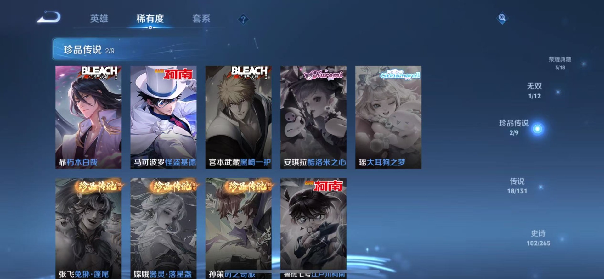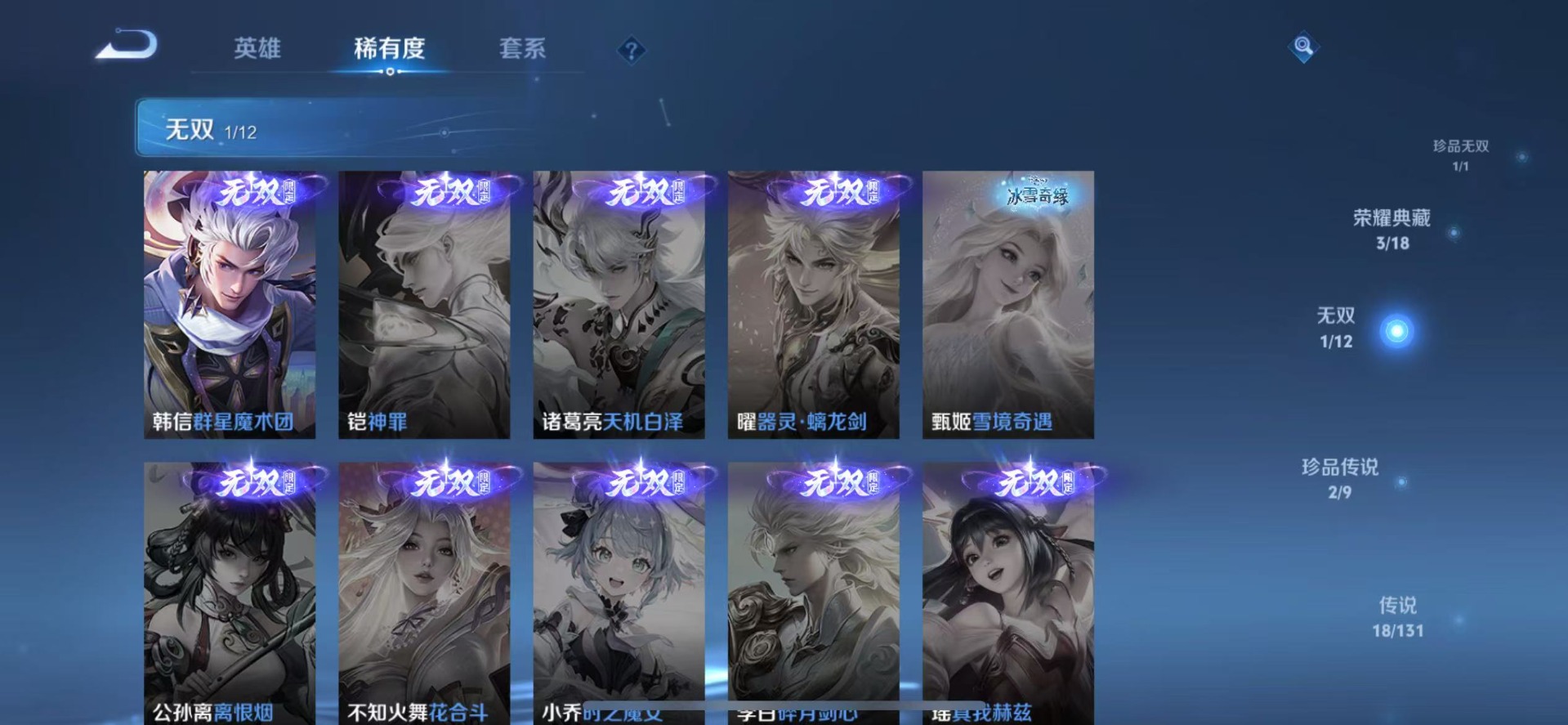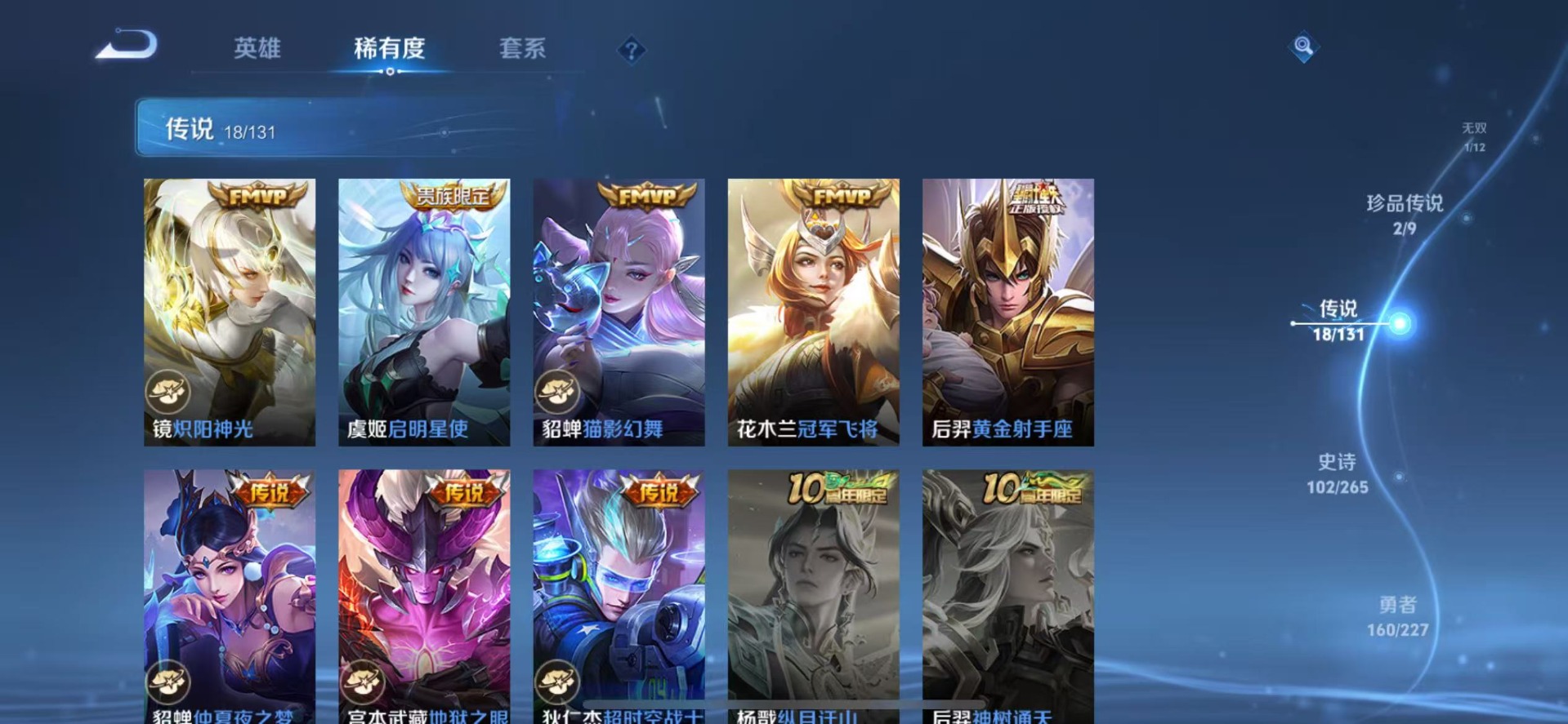 v8 3典藏 1珍品无双 1无双 2珍品传说 18传说 126英雄 353皮肤 可修改实名 【英雄全皮】:蒙恬全皮敖隐全皮空空儿全皮鬼谷子全皮影全皮 【稀有英雄】:敖隐小龙人大司命韩信韩跳跳夏洛特夏师傅艾琳橘右京橘子娜可露露鸟人不知火舞赵云金蝉唐僧