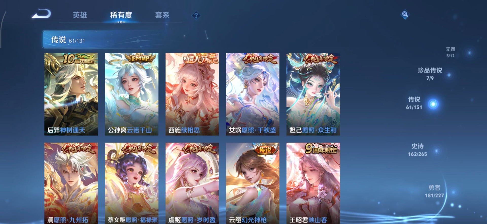 v10 4典藏 5无双 7珍品传说 61传说 126英雄 501皮肤 可修改实名 【英雄全皮】:大乔全皮马超全皮少司缘全皮小乔全皮王昭君全皮女娲全皮西施全皮蒙恬全皮孙权全皮蚩奼全皮瑶全皮公孙离全皮海诺全皮鬼谷子全皮刘禅全皮戈娅全皮钟馗全皮嫦娥全皮桑启全皮影全皮
