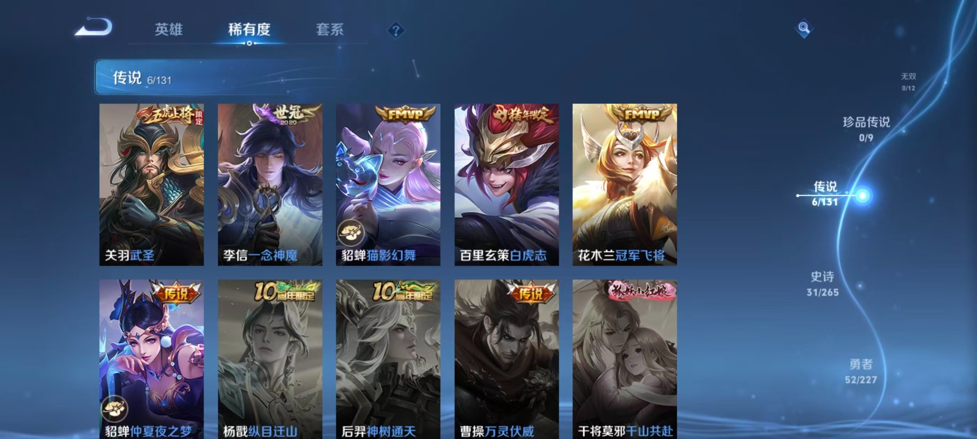 v7 6传说 121英雄 112皮肤 可修改实名 【稀有英雄】:大司命嬴政始皇帝韩信韩跳跳夏洛特夏师傅艾琳橘右京橘子娜可露露鸟人不知火舞赵云金蝉唐僧戈娅 【传说皮】:仲夏夜之梦大飞蛾一念神魔冠军飞将猫影幻舞 【珍宝阁皮】:妄想食味 【赛季/战令