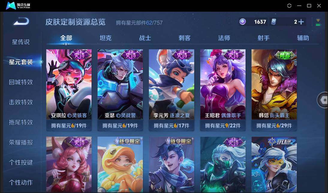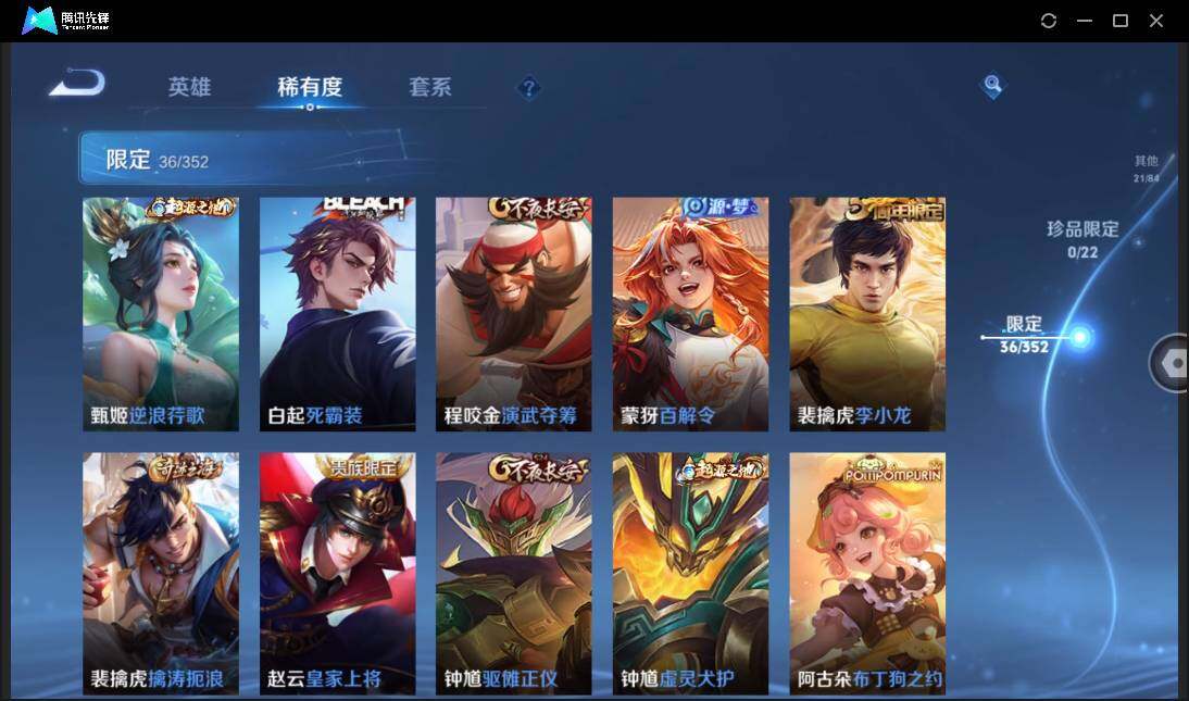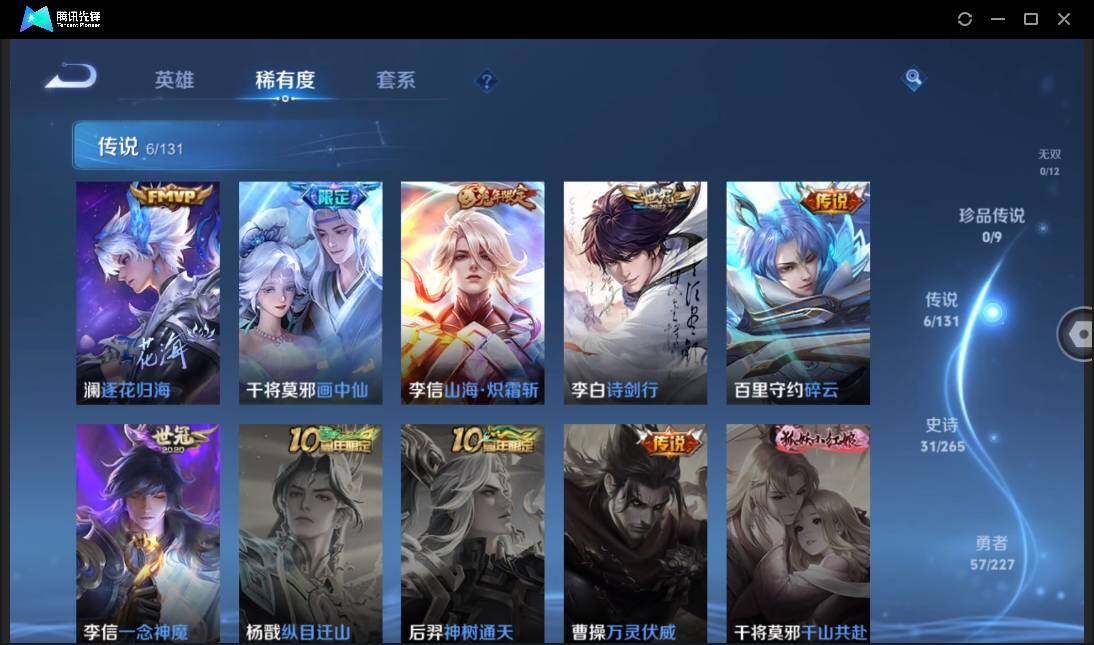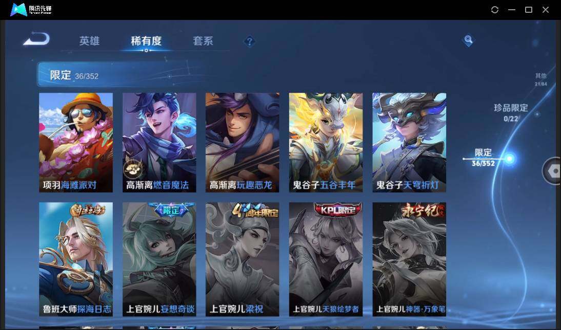 贵族1/皮肤115/传说6/史诗31/英雄121/李信全皮/澜逐花归海/干将莫邪画中仙/李信山海炽霜斩/李白诗剑行/百里守约碎云/李信一念神魔/狄仁杰阴阳师/赵云皇家上将/高渐离玩趣恶龙/元歌无心/狄仁杰魔术师/狄仁杰万华元夜/项羽海滩派对/程咬金演武夺筹/李元芳云中旅人/钟馗驱傩正仪/鬼谷子五谷丰年/裴擒虎李小龙/裴擒虎擒涛扼浪/瑶山海碧波行/伽罗天狼溯光者/嫦娥暖冬兔眠/鲁班大师探海日志/桑启海盐诗旅/暃星界游侠/张良古海寻踪/蒙犽百解令/高渐离燃音魔法/妲己灵卜魔法/鬼谷子天穹祈灯/刘邦剑破天穹/周瑜熔金海岸/甄姬冰雪圆舞曲/王昭君偶像歌手/孙尚香水果甜心/妲己魅力维加斯/墨子龙骑士/墨子金属风暴/吕布圣诞狂欢/刘禅绅士熊喵/曹操幽灵船长/花木兰水晶猎龙者/兰陵王暗隐猎兽者/亚瑟心灵战警/安琪拉心灵骇客/蔡文姬舞动绿茵/李元芳逐浪之夏/狄仁杰鹰眼统帅/小乔青蛇/百里守约真我赫兹/刘禅鸭鸭历险记/狂铁龙之律动/黄忠百相守梦/韩信街头霸王/赵云忍炎影/芈月红桃皇后/程咬金星际陆战队/白起白色死神/宫本武藏未来纪元/安琪拉玩偶对对碰/姜子牙时尚教父/亚瑟死亡骑士/达摩拳王/花木兰兔女郎/张飞五福同心/后羿阿尔法小队/刘备汉昭烈帝/关羽龙腾万里/钟无艳海滩丽影/王昭君幻想奇妙夜/孙尚香沉稳之力/诸葛亮掌控之力/鬼谷子幻乐之宴/小乔丁香结/吕布野性能量/刘禅秘密基地/张良缤纷绘卷/鲁班大师乓乓大师/海月幻泉雾影/白起乐园追猎者/赵怀真太极少年/太乙真人劲辣红锅/后羿完美运算/廉颇功夫炙烤/苍苍林狼骑/典韦铁骨偃魂/姜子牙星梦巡礼/钟馗虚灵犬护/沈梦溪鸭鸭历险记/阿古朵布丁狗之约/露娜命运加冕/姬小满小满鸭/白起死霸装/甄姬逆浪荇歌/鲁班七号木偶奇遇记/露娜绯红之刃/钟无艳生化警戒/老夫子潮流仙人/周瑜海军大将/李元芳特种部队/蔡文姬蔷薇王座/夏侯惇战争骑士/马可波罗激情绿茵/哪吒三太子/东皇太一东海龙王/百里守约绝影神呛/裴擒虎街头旋风/元歌午夜歌剧院/李信灼热之刃/瑶森/曜归虚梦演/澜孤猎/司空震启蛰/云缨赤焰之缨/桑启画中游