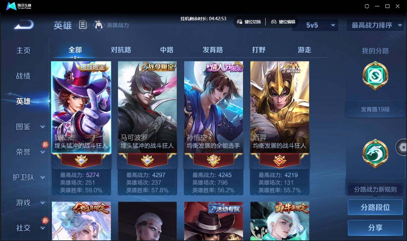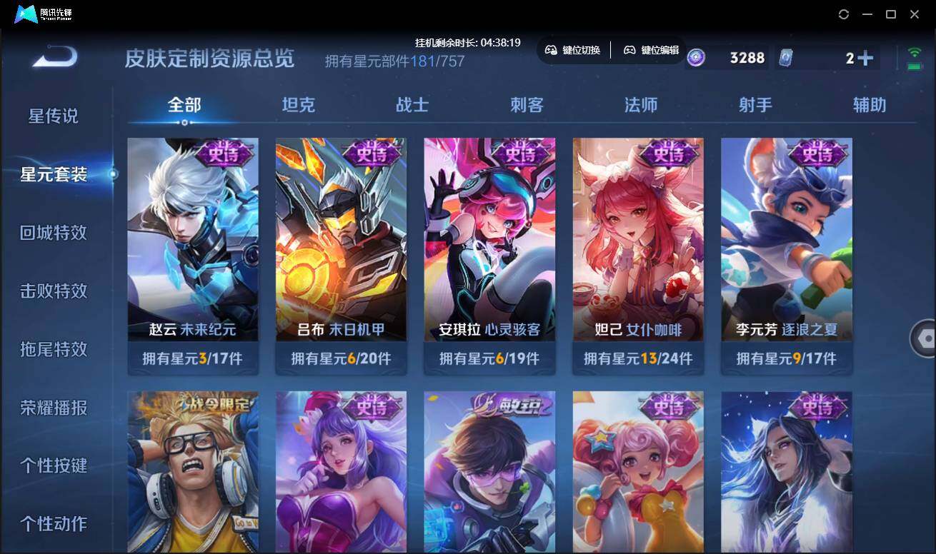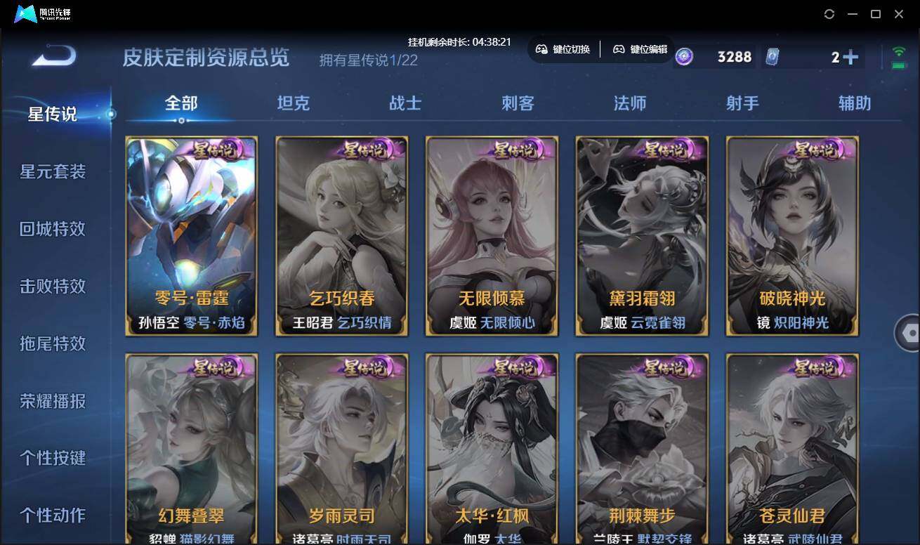 _2306648-【w4199】【亮点:5.6k场次-九霄神辉,】营地id:420879924【热门:至尊宝,愿照千秋盛,愿照众生和,时雨天司,李,零号赤焰】安卓q-有二次-贵7-125英雄-254皮肤-1典藏-1星元-9传说-84限定-7按键-贵族积分2.6w 【星元皮肤】:孙悟空零号雷霆