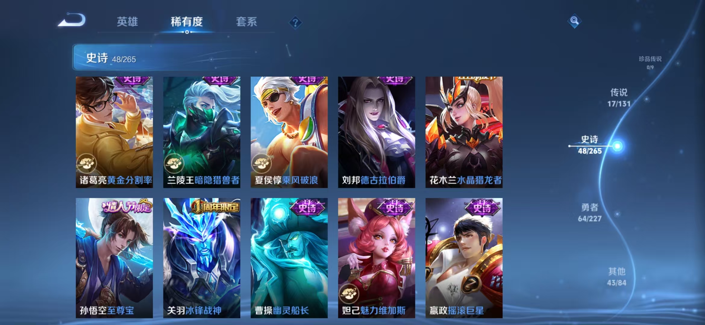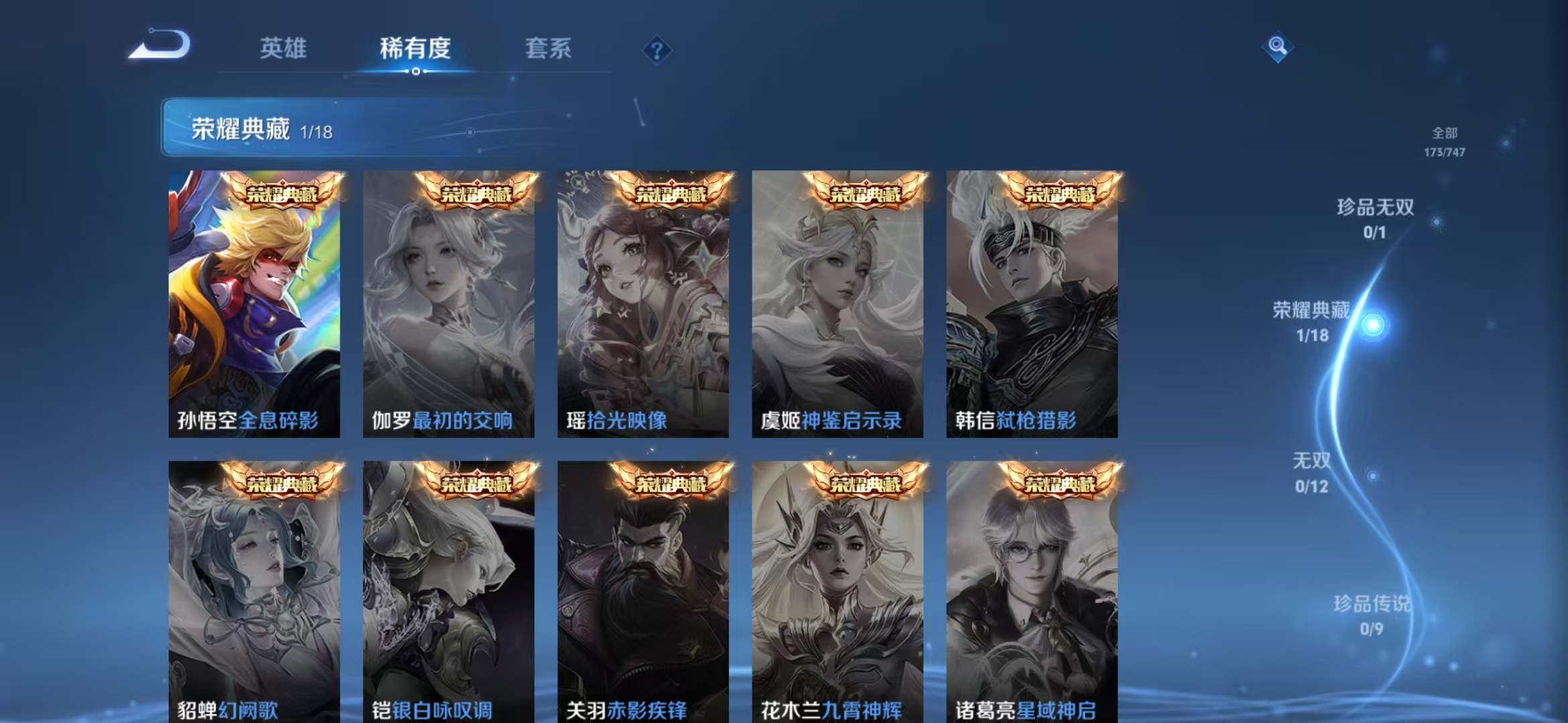 txwz24084 v8 173皮 金标项羽 1典藏-孙悟空 17传说-神树通天,黄金狮子座,鸣野蒿,时雨天司,一念神魔,启明星使,久胜战神,白虎志,武圣,冠军飞将,天魔缭乱,猫影幻舞,末日机甲,太华,凤求凰,云霓雀翎,黄金射手座 48史诗-雪上飞焰,巫礼祀神,龙之律动,涂山容容,原初追逐者,百相守梦,水果甜心,五谷丰年,未来纪元,热力回旋,傲雪梅呛,幽灵船长,冰锋战神,纤云弄巧,冰雪圆舞曲,李小龙,紫霞仙子,天狼绘梦者,虎魄,神威,烈魂,时之恋人,魅语,乘风破浪,迷踪丽影,至尊宝,地狱岩魂,摇滚巨星,暗隐猎兽者,无限星赏官,特工魅影,逐浪之夏,修罗,鹰眼统帅,节奏热浪,如梦令,水晶猎龙者,岱宗,德古拉伯爵,狮舞东方,蓝屏警告,魔术师,天狼狩猎者,曙光守护者,黄金分割率,皇家上将,魅力维加斯,鬼剑武藏