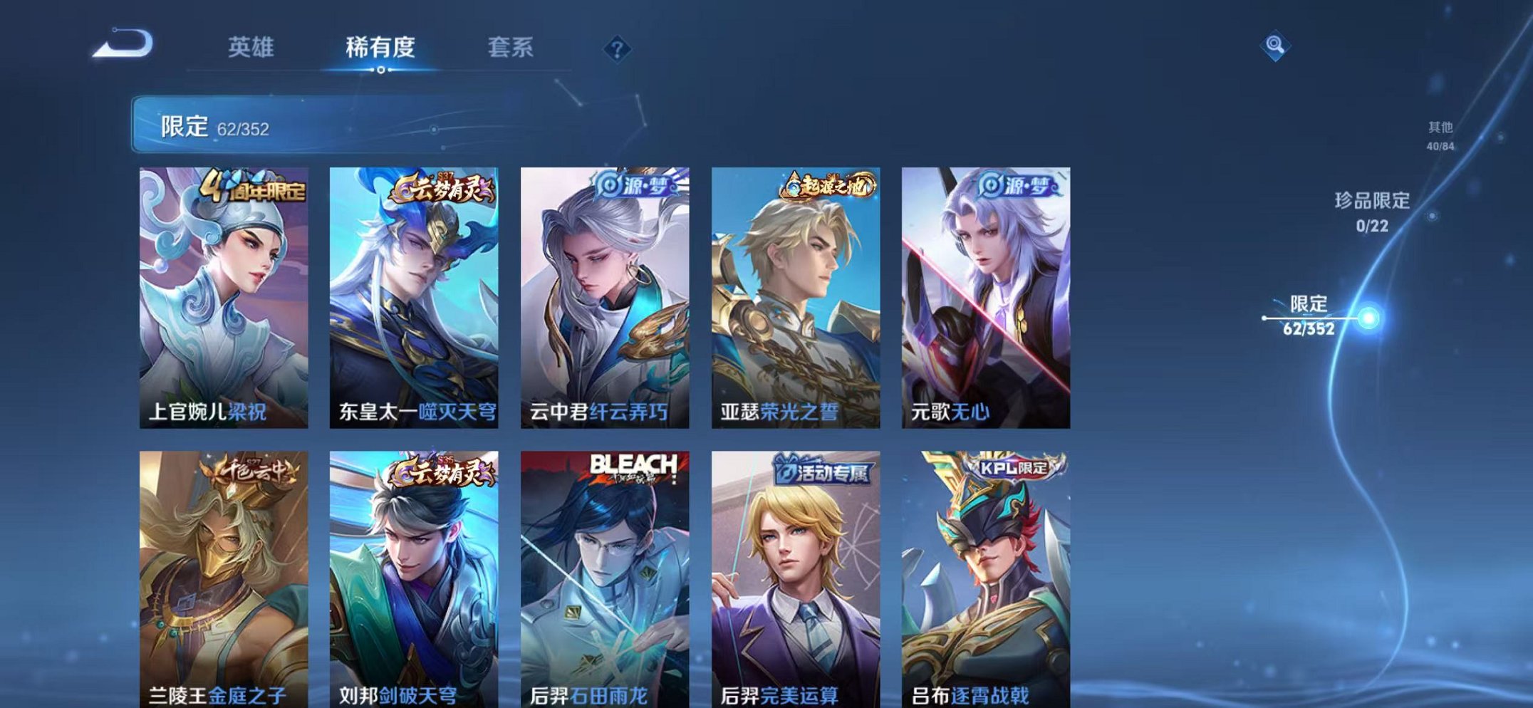 126英雄-165皮肤-【165皮肤1典藏2星元2传说 永久社交限制介意勿拍 游戏正常】苹果wx-126英雄【1水晶】鸣剑·曳影【2星元】星际治安官 幽冥之眼【2传说】凤求凰 云霓雀翎【49史诗】幽灵船长 繁星吟游 功夫厨神 女仆咖啡 魅力维加斯 魔术师 鹰眼统帅 圣诞恋歌 无限星赏官 鬼剑武藏 默契交锋 火炮绅士 暗隐猎兽者 航海奇遇记 千年之狐 逐浪之夏 电玩小子 狮舞东方 圣诞狂欢 暗影游猎 狂