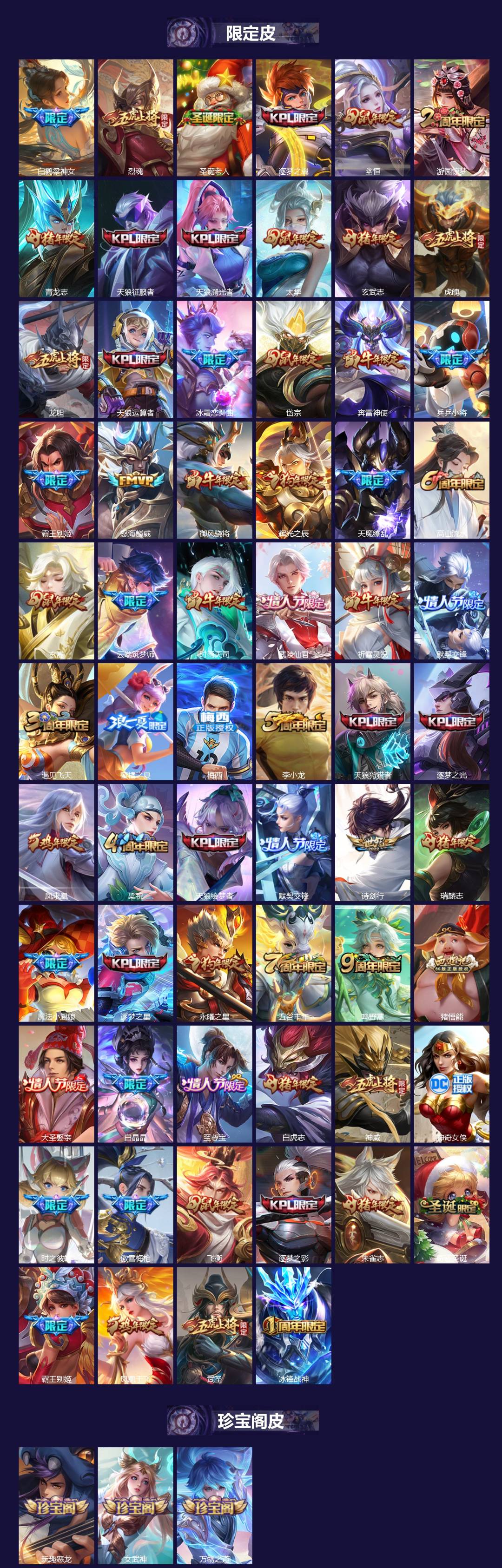 v10 11典藏 47传说 128英雄 421皮肤 典藏英雄武则天 可修改实名 【英雄全皮】:敖隐全皮蚩奼全皮鬼谷子全皮猪八戒全皮影全皮 【稀有英雄】:敖隐小龙人大司命嬴政始皇帝韩信韩跳跳夏洛特夏师傅艾琳橘右京橘子娜可露露鸟人不知火舞赵云金蝉唐