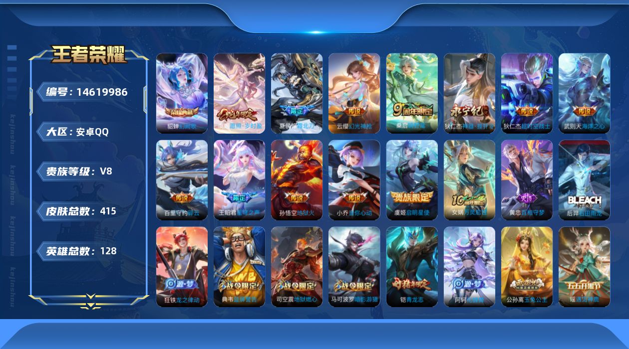 v8 1典藏 13传说 128英雄 415皮肤 典藏英雄武则天 可修改实名 【英雄全皮】太乙真人全皮敖隐全皮空空儿全皮蚩奼全皮狂铁全皮戈娅全皮刘邦全皮鲁班大师全皮钟馗全皮阿轲全皮影全皮 【稀有英雄】大司命敖隐小龙人夏洛特夏师傅金蝉唐僧戈娅赵云嬴政始皇