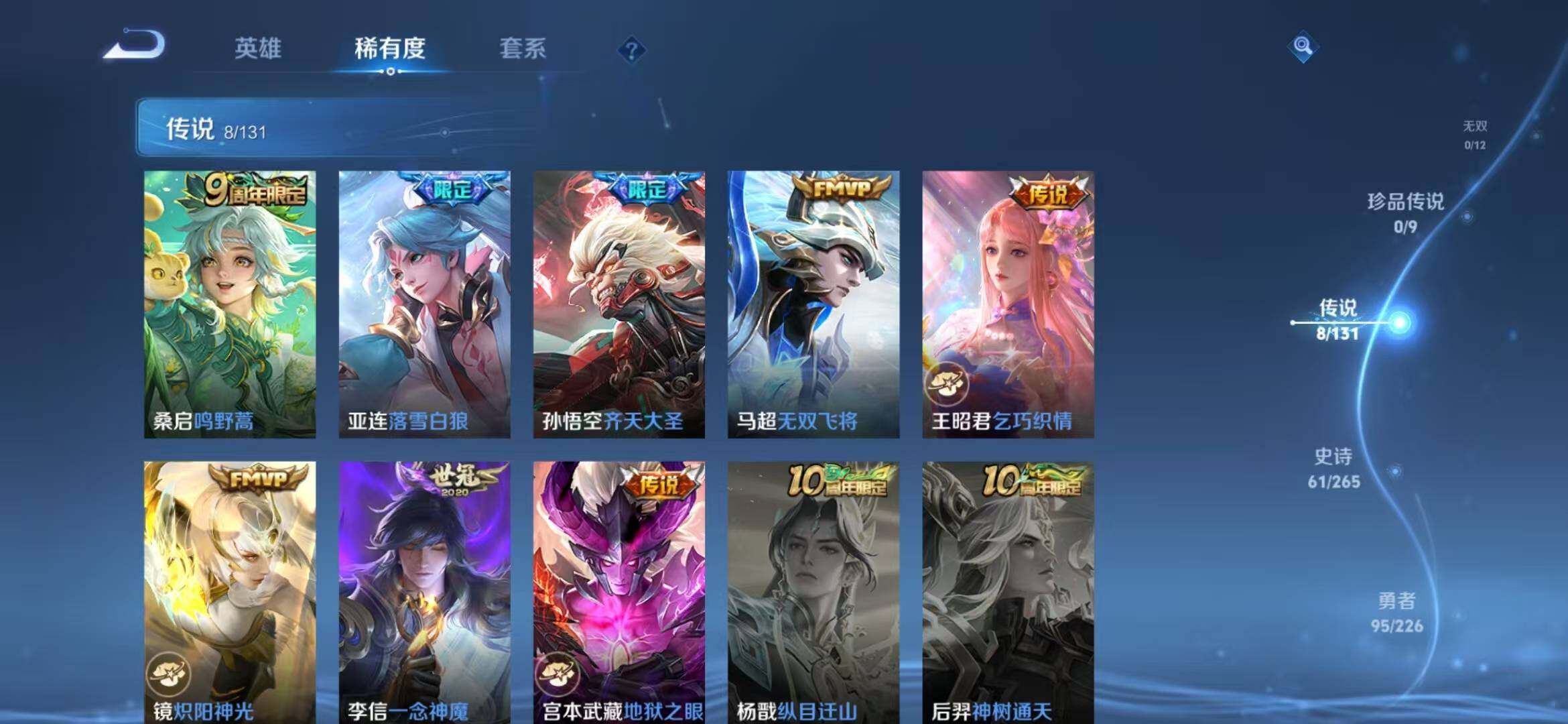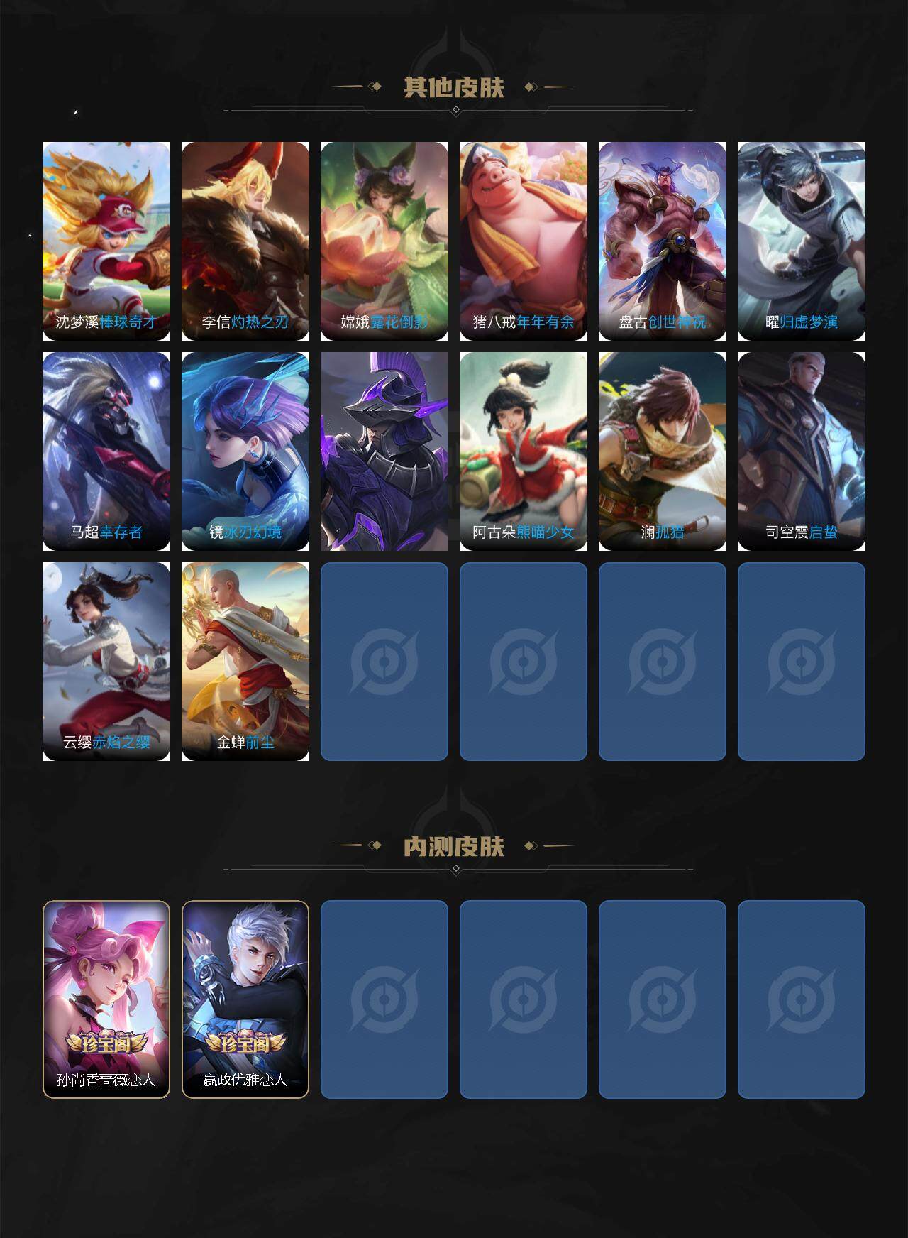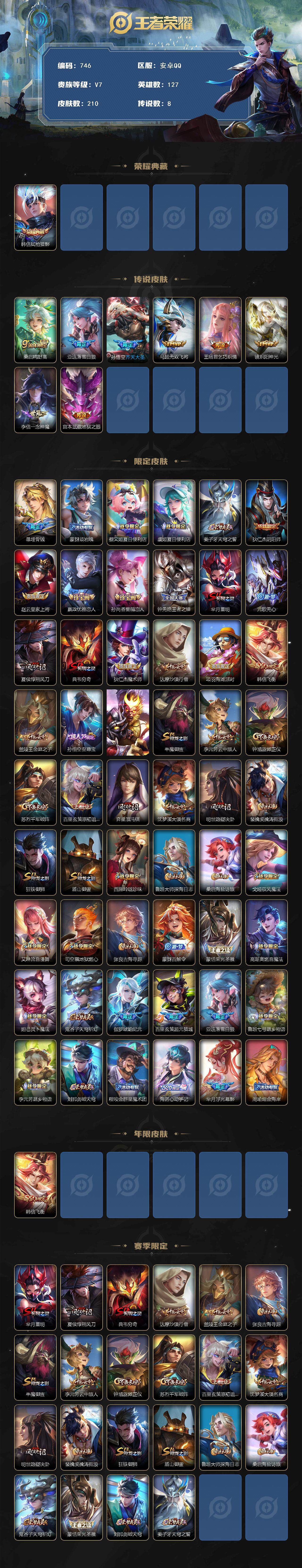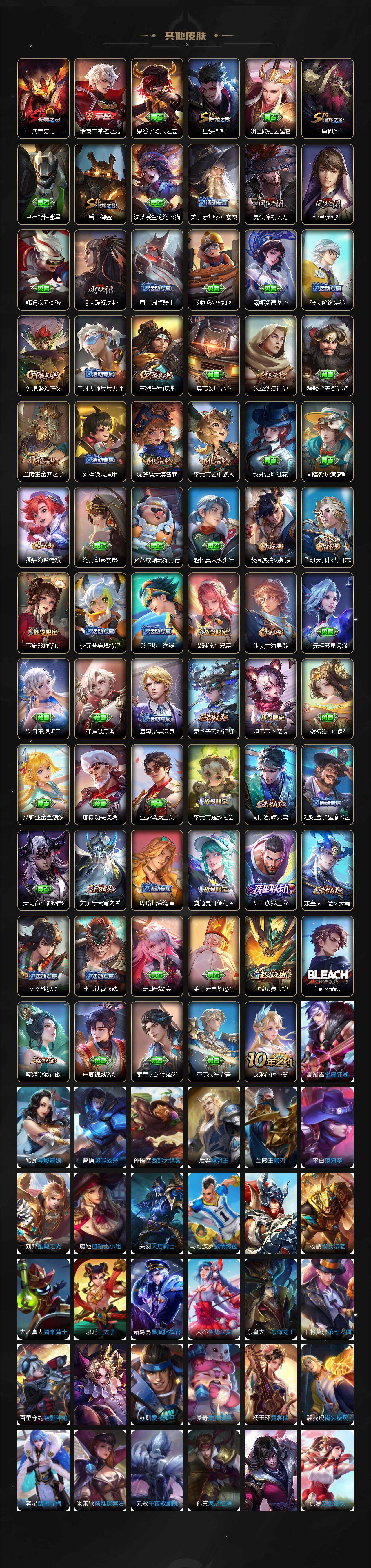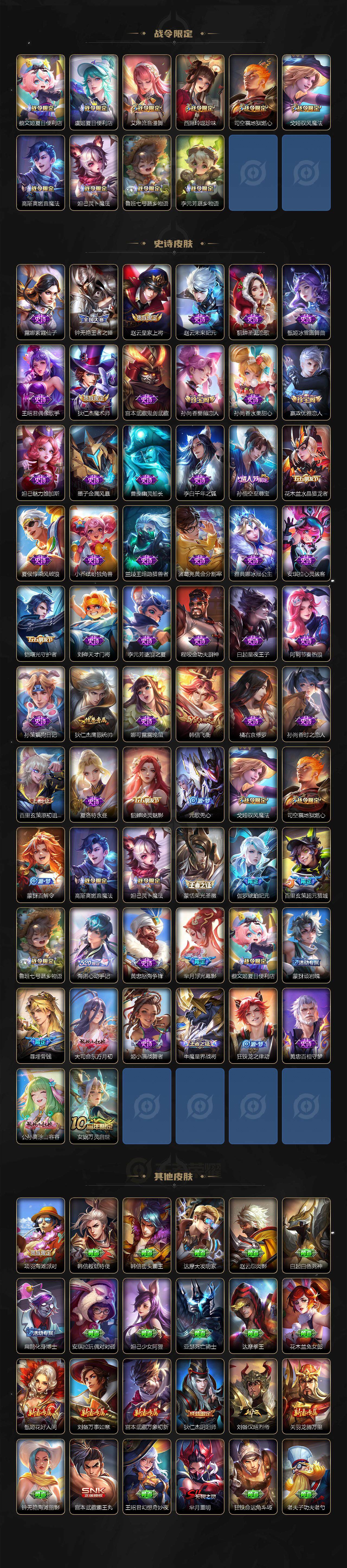 [14623129]v7-127英雄-210皮肤-1典藏-8传说-61史诗 cc8381 【英雄全皮】:影全皮 【荣耀典藏】:韩信弑呛猎影 【传说皮肤】:桑启鸣野蒿,亚连落雪白狼,孙悟空齐天大圣,马超无双飞将,王昭君乞巧织情,镜炽阳神光,李信一念神魔,宫本武藏地狱之眼 【限定皮肤】:暃埋骨钱,蒙犽顽岩魄,蔡文姬夏日便利店,虞姬夏日便利店,姜子牙天穹之誓,狄仁杰阴阳师,赵云皇家上将,嬴政优雅恋人,孙尚香蔷薇恋人,钟无艳王者之锤,芈月重明,元歌无心,夏侯惇朔风刀,典韦穷奇,狄仁杰魔术师,达摩沙漠行僧,项羽海滩派对,韩信飞衡,兰陵王金庭之子,孙悟空至尊宝,孙悟空齐天大圣,牛魔御旌,李元芳云中旅人,钟馗驱傩正仪,苏烈千军破阵,百里玄策原初追逐者,弈星混沌棋,沈梦溪大漠名商,明世隐疑决卦,裴擒虎擒涛扼浪,狂铁御狮,盾山御銮,西施玲珑珍味,鲁班大师探海日志,桑启海盐诗旅,戈娅驭风魔法,艾琳流音漫舞,司空震地狱燃心,张良古海寻踪,蒙犽百解令,蒙恬荣光圣徽,高渐离燃音魔法,妲己灵卜魔法,鬼谷子天穹祈灯,伽罗琥珀纪元,百里玄策超元猎域,亚连落雪白狼,鲁班七号蔬乡物语,李元芳蔬乡物语,刘邦剑破天穹,程咬金群星魔术团,海诺心动手记,芈月浮光幕影,周瑜熔金海岸 【年限皮肤】:韩信飞衡 【赛季限定】:芈月重明,夏侯惇朔风刀,典韦穷奇,达摩沙漠行僧,兰陵王金庭之子,张良古海寻踪,牛魔御旌,李元芳云中旅人,钟馗驱傩正仪,苏烈千军破阵,百里玄策原初追逐者,弈星混沌棋,沈梦溪大漠名商,明世隐疑决卦,裴擒虎擒涛扼浪,狂铁御狮,盾山御銮,鲁班大师探海日志,桑启海盐诗旅,鬼谷子天穹祈灯,蒙恬荣光圣徽,刘邦剑破天穹,姜子牙天穹之誓 【战令限定】:蔡文姬夏日便利店,虞姬夏日便利店,艾琳流音漫舞,西施玲珑珍味,司空震地狱燃心,戈娅驭风魔法,高渐离燃音魔法,妲己灵卜魔法,鲁班七号蔬乡物语,李元芳蔬乡物语 【史诗皮肤】:露娜紫霞仙子,钟无艳王者之锤,赵云皇家上将,赵云未来纪元,貂蝉圣诞恋歌,甄姬冰雪圆舞曲,王昭君偶像歌手,狄仁杰魔术师,宫本武藏鬼剑武藏,孙尚香蔷薇恋人,孙尚香水果甜心,嬴政优雅恋人,妲己魅力维加斯,墨子金属风暴,曹操幽灵船长,李白千年之狐,孙悟空至尊宝,花木兰水晶猎龙者,夏侯惇乘风破浪,小乔缤纷独角兽,兰陵王暗隐猎兽者,诸葛亮黄金分割率,雅典娜冰冠公主,安琪拉心灵骇客,铠曙光守护者,刘禅天才门将,李元芳逐浪之夏,程咬