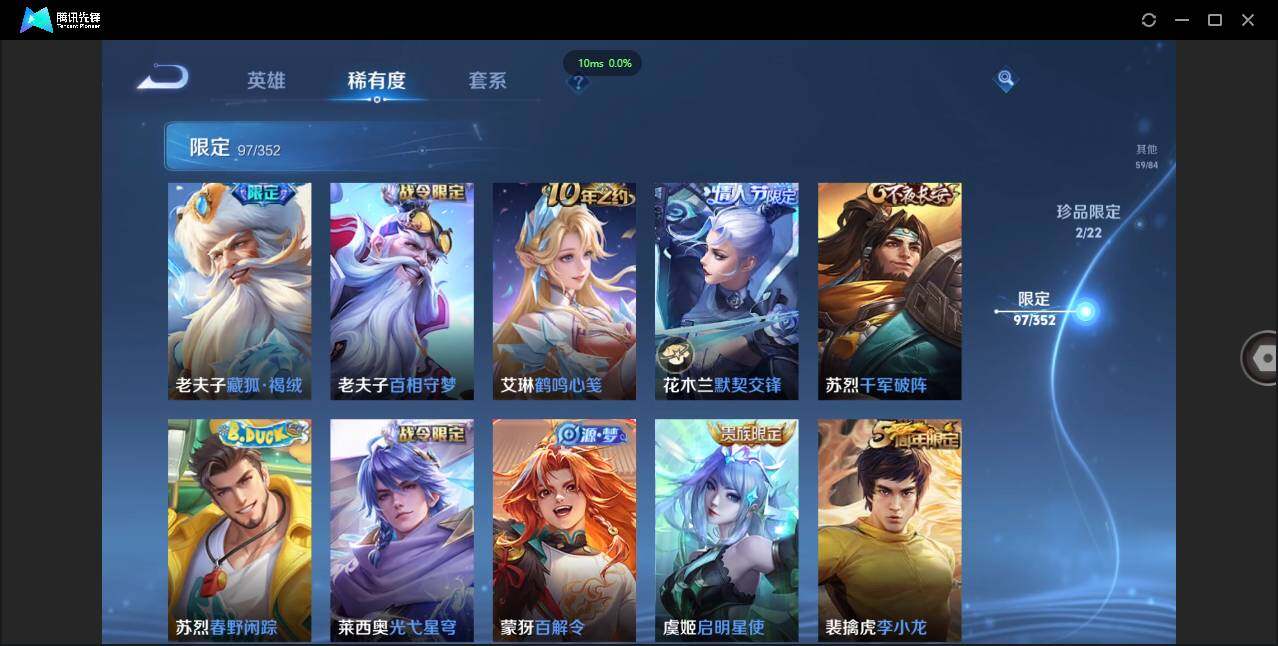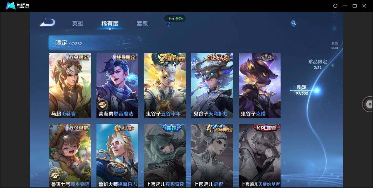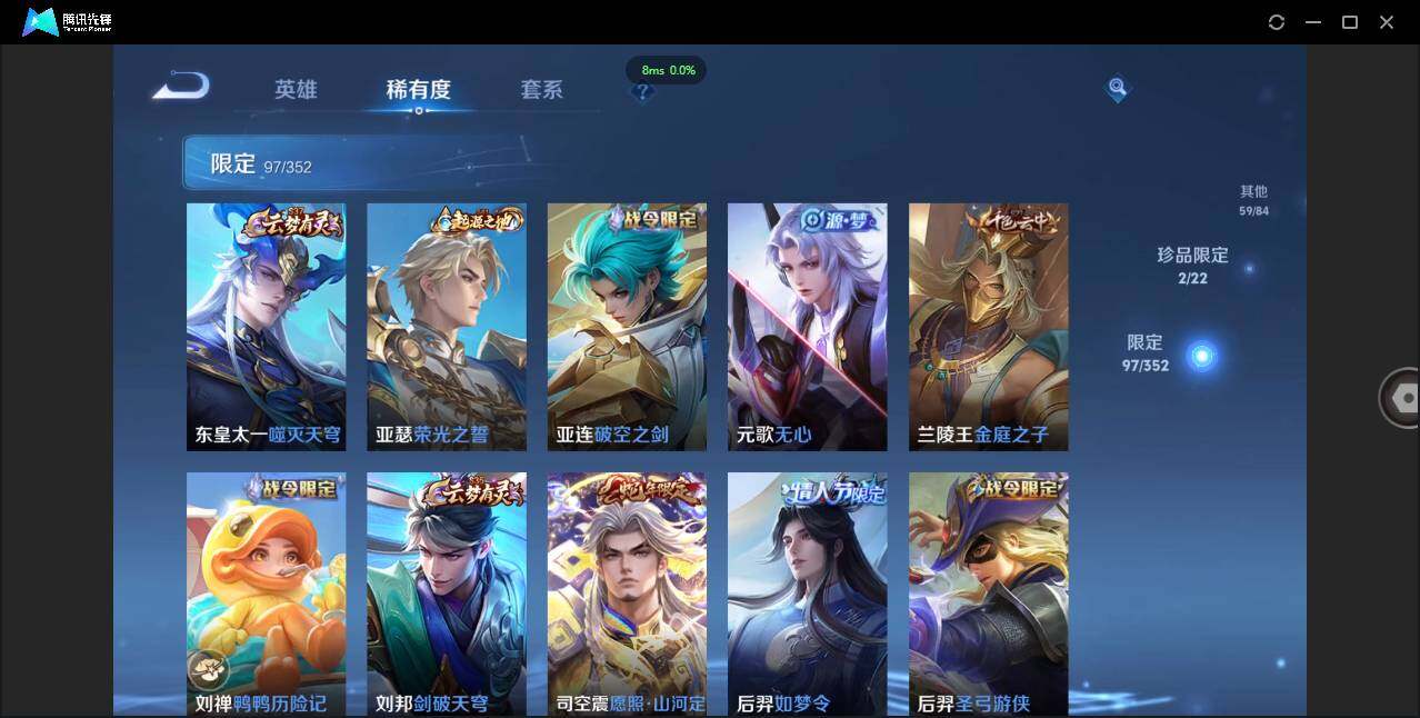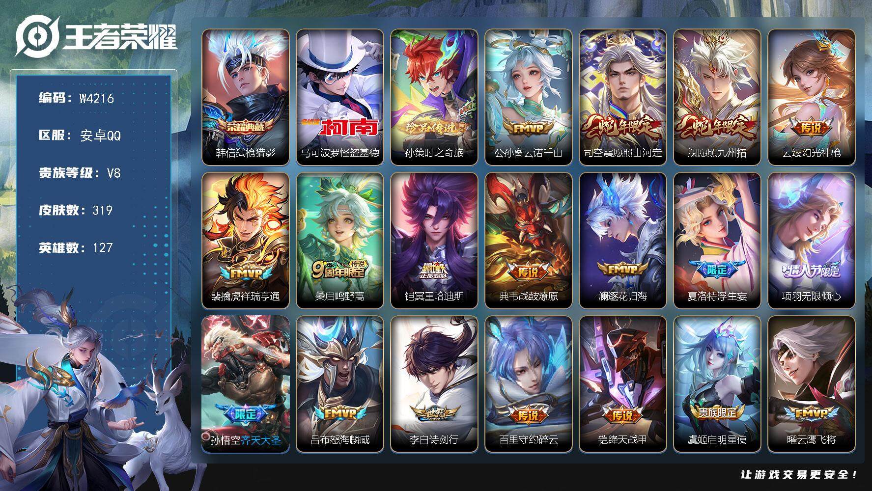 127英雄-319皮肤-贵族8/皮肤319/典藏1/传说22/史诗85/英雄127/达摩全皮/孙权全皮/猪八戒全皮/戈娅全皮/空空儿全皮/影全皮/韩信-弑呛猎影/马可波罗怪盗基德/孙策时之奇旅/公孙离云诺千山/司空震愿照山河定/澜愿照九州拓/云缨幻光神呛/裴擒虎祥瑞亨通/桑启鸣野蒿/铠冥王哈迪斯/典韦-战鼓燎原/澜-逐花归海/夏洛特-浮生妄/项羽-无限倾心/孙悟空-齐天大圣/吕布-怒海麟威/李白-诗剑行/百里守约-碎