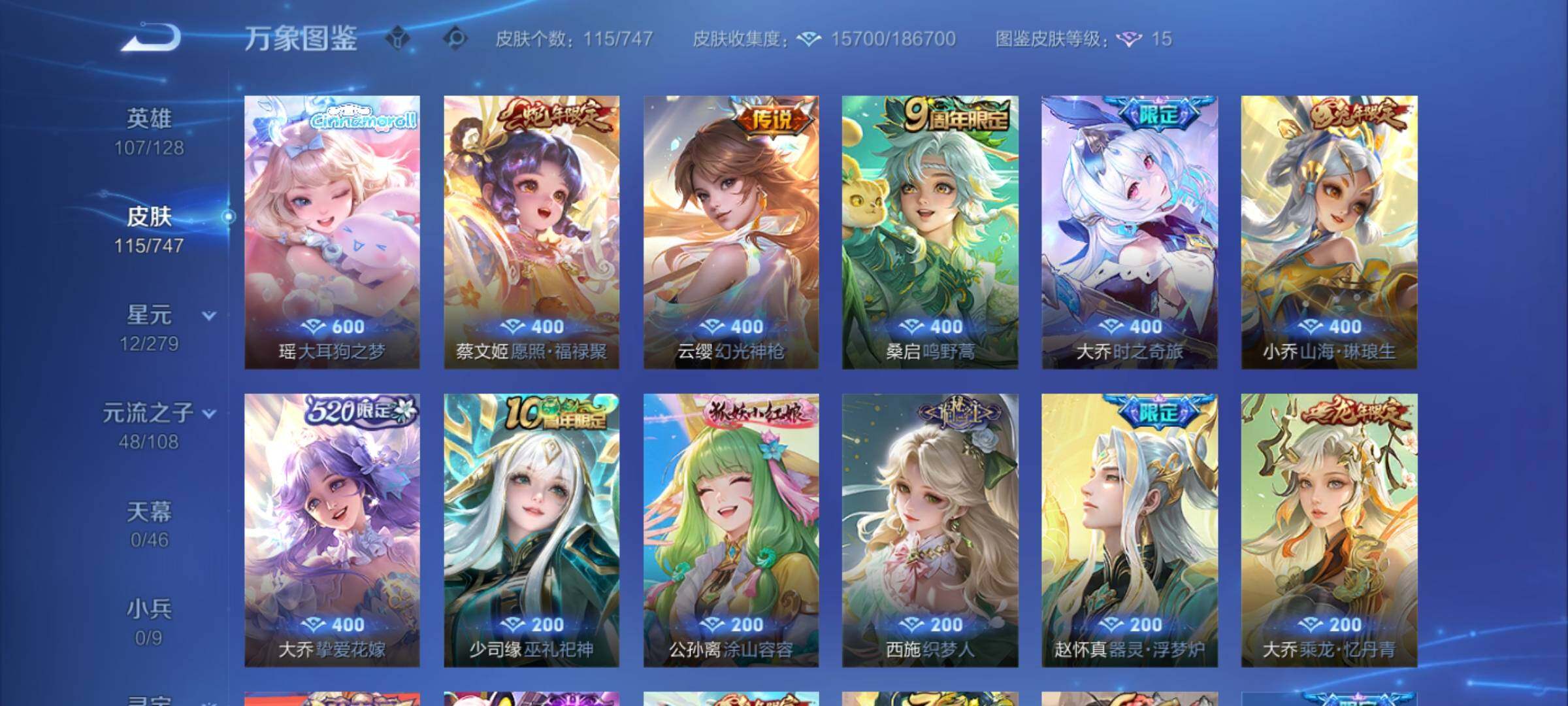 【精品女号·大乔全皮·大耳狗之梦·山海琳琅生·山海碧波行·玲珑珍味·可二次】w8226-安卓q-107英雄-115皮肤-2王者印记-130铭文-贵族积分1w【贵族6】【·1珍品·6传说·6按键】【因赛季更新游戏段付以上号为准!】 【英雄全皮】:孙权全皮,大乔全皮 【珍品传说】:瑶大耳狗之梦 【传说皮肤】:蔡文姬愿照福禄聚,云缨幻光神呛,桑启鸣野蒿,大乔时之奇旅,小乔山海琳琅生,大乔挚爱花嫁