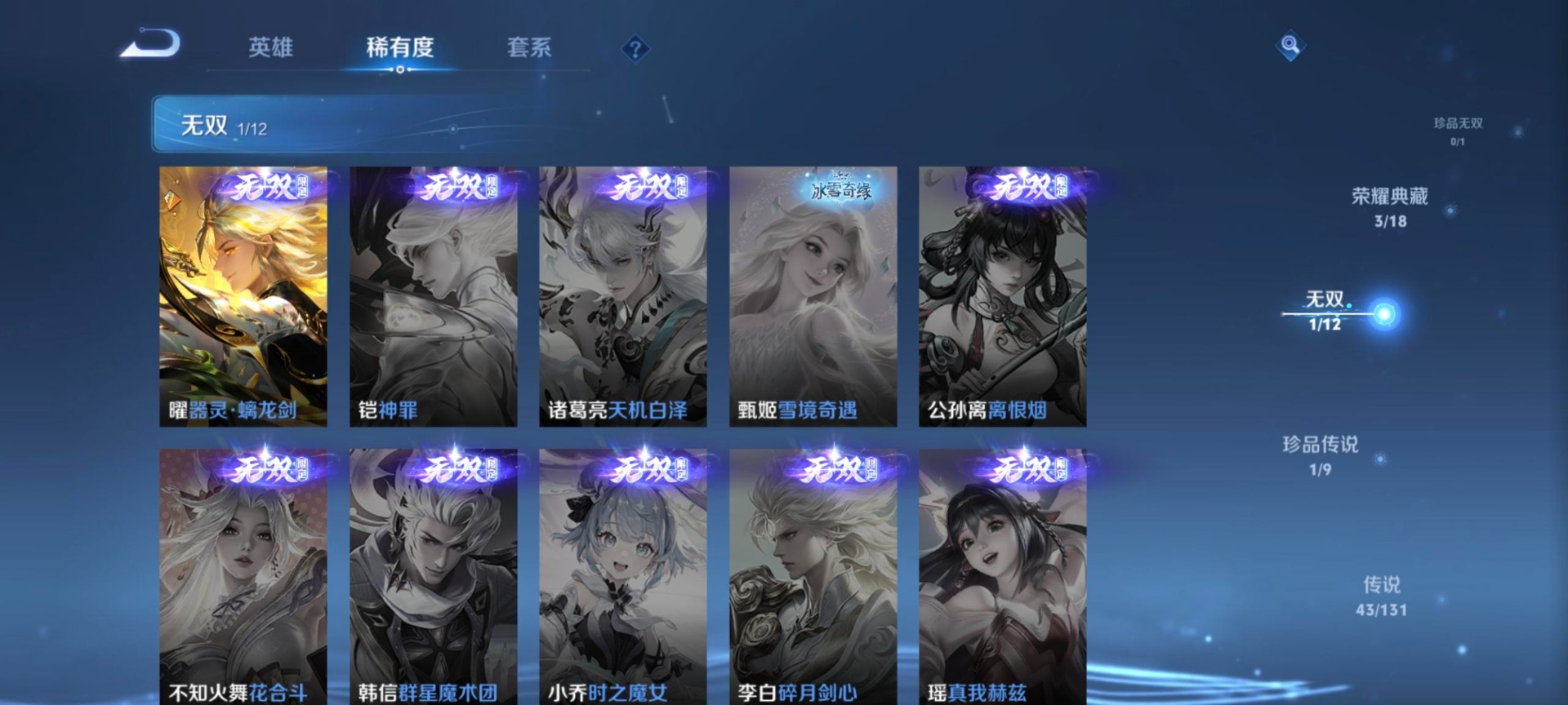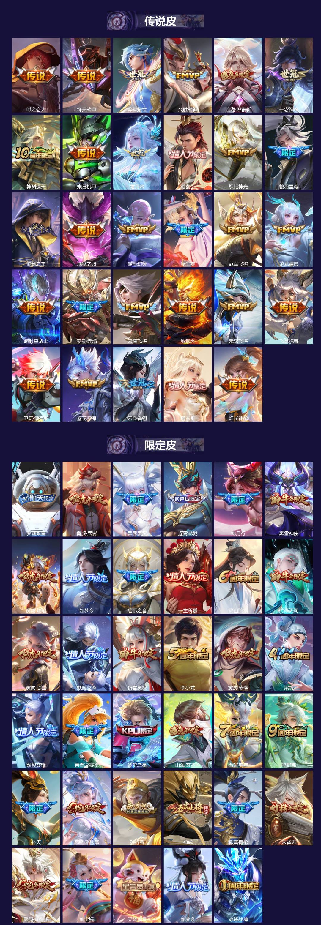 [14449904]v9 3典藏 1无双 1珍品传说 43传说 127英雄 356皮肤 可修改实名 【英雄全皮】:露娜全皮李信全皮娜可露露全皮蒙恬全皮澜全皮元歌全皮敖隐全皮孙权全皮鬼谷子全皮夏洛特全皮影全皮 【稀有英雄】:敖隐小龙人大司命嬴政始皇帝韩信韩跳跳