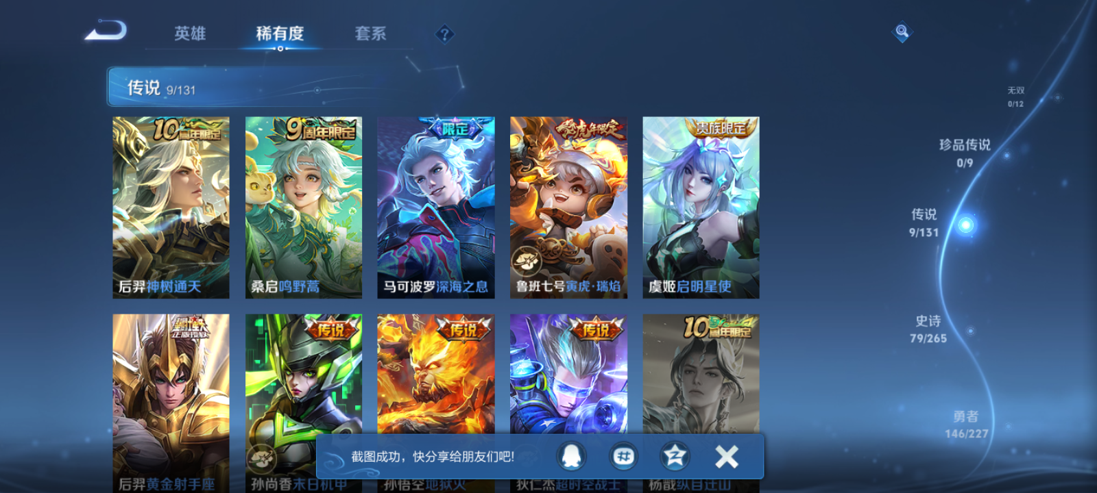 【王者荣耀】【lywz23645】珍品无双0 典藏3 无双0 珍品传说0 传说9 史诗79 英雄126 皮肤315 贵族8级 荣耀典藏:全息碎影|幻阙歌|星空梦想__传说皮肤:鸣野蒿|深海之息|启明星使|地狱火|狄仁杰-超时空战士|黄金射手座|孙尚香-末日机甲|寅虎·瑞焰|神树通天__稀有限定:至尊宝|大圣娶亲|一生所爱|蔷薇恋人|青春决赛季|乒乒小将|孙行者|猪悟能|李小龙|梁祝|狮舞东方|白昼王子|大漠名商|高山流水|古海寻踪|海滩派对|海盐诗旅|航海奇遇记|幻夜卜梦|皇家上将|混沌棋|火炮绅士|剑破天穹|江河有灵|金庭之子|凯尔特女王|黎明之约|炼金王|魔术师|千军破阵|擒涛扼浪|穷奇|驱傩正仪|沙漠行僧|朔风刀|探海日志|饕餮|醍醐杖|天穹祈灯|玩趣恶龙|万华元夜|五谷丰年|星界游侠|演武夺筹|疑决卦|阴阳师|优雅恋人|游园惊梦|驭风魔法|遇见飞天|御旌|御銮|御狮|原初追逐者|云间偶戏|真爱魔法|暗夜贵公子|暗夜猫娘|暗隐猎兽者|白龙吟|缤纷独角兽|冰冠公主|冰雪圆舞曲|苍穹之光|乘风破浪|德古拉伯爵|地狱岩魂|电玩小子|功夫厨神|鬼剑武藏|黄金分割率|箭羽风息|节奏热浪|金属风暴|龙骑士|魅力维加斯|女仆咖啡|偶像歌手|绅士熊喵|圣诞狂欢|圣诞恋歌|水果甜心|水晶猎龙者|天才门将|赵云-未来纪元|星夜王子|摇滚巨星|鹰眼统帅|幽灵船长|月团寄思|钟无艳-超时空战士|逐浪之夏|紫霞仙子|虞姬-夏日便利店|怒海争锋|曙光守护者|心灵战警|千年之狐|孙尚香-时之恋人|舞动绿茵|特工魅影|心灵骇客|茶境仙|谧流熔炉|御霄|狰|烛龙|原初探秘者|重明|云中旅人|玲珑珍味|朔望之晖|钟馗-神迹守卫|访茗客|暖冬·兔眠|圣弓游侠|墨子-神迹守卫|落雪兰心|刘禅-鸭鸭历险记|沈梦溪-鸭鸭历险记|布丁狗之约|虚灵犬护|逆浪荇歌|孙策-百相守梦|周瑜-百相守梦|黄忠-百相守梦|涂山容容|光弋星穹|往忆晖光|鹤鸣心笺__优质皮肤:尼罗河女神|一千零一夜|创世神祝|年年有余|埃及法老|孤猎|木偶奇遇记|熊喵少女|午夜歌剧院|露花倒影|未来旅行|激情绿茵|海之征途|天启骑士|碧珀绯影|秩序猎龙将|锦衣卫|冰刃幻境|森|超能战警|英喵野望|维京掠夺者|海军大将|绯红之刃|踏雪寻梅|启蛰|战争骑士|伊势巫女|画中游|生化警戒|威尼斯狂欢|第七人偶|潮流仙人|芝加哥教父|街头旋风|绝影神呛|地府判官|荷鲁斯之眼|幸存者|赤焰之缨|福禄兄弟|隐刃|前尘|特种部队|三太子|精灵王|剑舞者|范海辛|星航指挥官|龙域领主|爱与和平|占星师|花间舞|魇语军师|极冰防御线|花见巫女|棒球奇才|东海龙王|蔷薇王座|灼热之刃|圣殿之光|帝国元帅|战争女神|霓裳曲|加勒比小姐|阿摩司公爵|异域舞娘|精灵公主|修竹墨客|万圣前夜|暗都幽影|功夫炙烤|聚星闪耀|潮玩探月行|虎啸剑宗|秘密基地|次元突破|鲨炮海盗猫|野性能量|丁香结|奇妙博物学|虹云星官|守护之力|坚韧之力|幻乐之宴|功夫老勺|命运角斗场|幻想奇妙夜|海滩丽影|阿尔法小队|兔女郎|死亡骑士|黄金武士|少女阿狸|天使之翼|玩偶对对碰|宫本武藏-未来纪元|红桃皇后|忍·炎影|街头霸王|教廷特使|太极少年|危途狂花|潮玩牛仔|紫罗兰之誓|铁甲之心|黑桃队长|幽兰居士|制霸全明星|进击墨子号|拳王|时尚教父|鲤鱼之梦|救世之瞳|白色死神|程咬金-星际陆战队|白执事|大发明家|致命风华|哥特玫瑰|魅影绮裳|西施-雪境奇遇|星梦巡礼|景韶洛都|浪漫序章|缤纷绘卷|掌控之力|铁骨偃魂|纽约教父|龙腾万里|霸王丸|敏锐之力|西施-归虚梦演|孙悟空-西部大镖客|牛魔-西部大镖客|鲁班大师-归虚梦演|龙舞盛年|乓乓大师|五福同心|盾山-圆桌骑士|猎兽之王|蒙犽-归虚梦演|万事如意|曜-归虚梦演|唤灵魔甲|太乙真人-圆桌骑士|沉稳之力|化身博士|花好人间|春野之旅|潮玩骑士王|万象初新|苍林狼骑|蔚蓝守将|特工战影|炽热元素使|妄想特派|春野闲踪|灵野札记|玫蓝誓约|小满鸭|死霸装|无双福将|锦麟游梦|踏浪烽翎|落日弦歌|克喵|哪吒-罗小黑战记|张良-罗小黑战记|径山谋武__贵族等级:贵族8级__王者段位:绝世王者9传说3典藏 幻阙歌,星空梦想,全息碎影 神树通天,末日机甲,黄金射手座,鸣野蒿,深海之息,寅虎·瑞焰,启明星使,超时空战士,地狱火