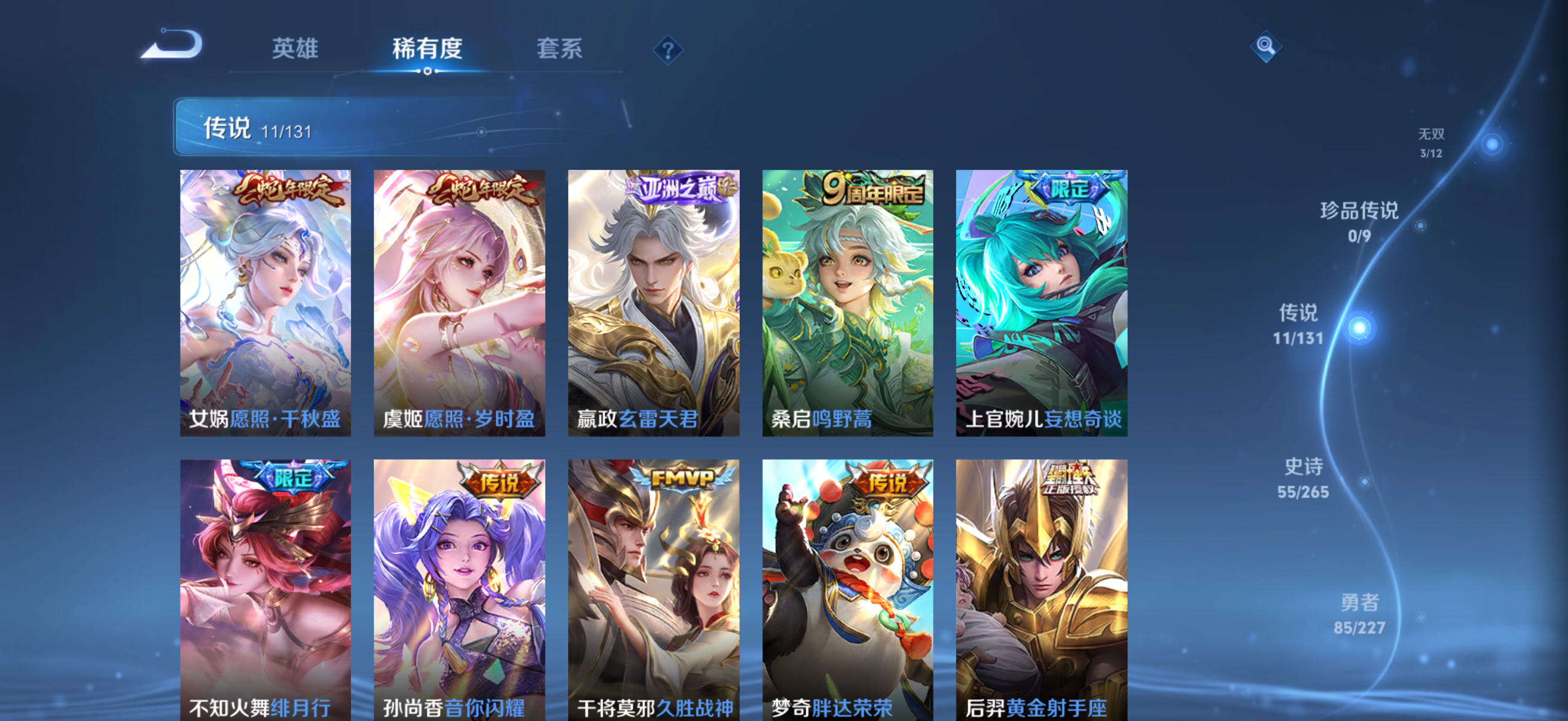 v7 小国标不知火舞1.3w战力 多金标中路英雄 186皮3无双(花合斗,碎月剑心,器灵·螭龙剑)11传说黄金射手座,音你闪耀,愿照·千秋盛,玄雷天君,鸣野蒿,绯月行,地狱之眼,妄想奇谈,胖达荣荣,久胜战神,愿照·岁时盈