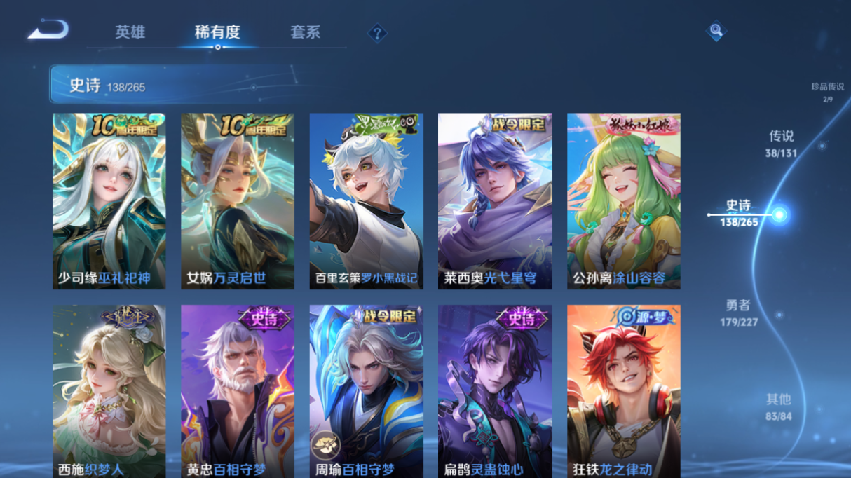 【王者荣耀】【lywz23702】珍品无双0 典藏4 无双0 珍品传说2 传说38 史诗138 英雄127 皮肤444 贵族10级 荣耀典藏:杀手不太冷|鸣剑·曳影|拾光映像|最初的交响__珍品传说:江户川柯南|怪盗基德__传说皮肤:鸣野蒿|炽阳神光|启明星使|胖达荣荣|地狱之眼|地狱火|仲夏夜之梦|云霓雀翎|久胜战神|黄金狮子座|狄仁杰-超时空战士|黄金白羊座|猫影幻舞|一念神魔|云鹰飞将|游龙清影|孙尚香-末日机甲|白虎志|凤求凰|零号·赤焰|怒海麟威|祈雪灵祝|时雨天司|天魔缭乱|武陵仙君|武圣|寅虎·瑞焰|永曜之星|觅芳踪|寅虎·赤拳|幻光神呛|愿照·山河定|愿照·九州拓|愿照·众生和|星之鸣奏|愿照·千秋盛|神树通天|纵目迁山__稀有限定:寅虎·御盾|寅虎·展翼|寅虎·心曲|奔雷神使|御风骁将|白晶晶|至尊宝|梅西|青龙志|虞姬-霸王别姬|大圣娶亲|引擎之心|奇迹圣诞|神威|烈魂|龙胆|青春决赛季|孙行者|猪悟能|傲雪梅呛|李小龙|狮舞东方|拒霜思|暗影游猎|白昼王子|百解令|冰锋战神|冰霜恋舞曲|大漠名商|地狱燃心|高山流水|古海寻踪|海滩派对|海盐诗旅|航海奇遇记|后羿-如梦令|华丽摇滚|幻夜卜梦|皇家上将|辉光之辰|混沌棋|火炮绅士|剑破天穹|江河有灵|金庭之子|凯尔特女王|狂想玩偶喵|蓝屏警告|黎明之约|炼金王|梦圆繁星|迷踪丽影|魔术师|女武神|千军破阵|擒涛扼浪|穷奇|驱傩正仪|燃音魔法|热情桑巴|荣光圣徽|沙漠行僧|朔风刀|死亡摇滚|探海日志|饕餮|醍醐杖|天降福星|天狼绘梦者|天狼狩猎者|天狼运算者|天穹祈灯|万华元夜|妄想食味|无心|五谷丰年|纤云弄巧|项羽-霸王别姬|星空之诺|演武夺筹|疑决卦|阴阳师|银河之约|优雅恋人|游园惊梦|驭风魔法|遇见飞天|御旌|御銮|御狮|原初追逐者|云间偶戏|逐梦之星|逐梦之影|暗夜贵公子|暗夜猫娘|暗隐猎兽者|白龙吟|缤纷独角兽|冰冠公主|冰雪圆舞曲|苍穹之光|乘风破浪|乘龙·聚宝船|大乔-猫狗日记|德古拉伯爵|地狱岩魂|电玩小子|功夫厨神|鬼剑武藏|黄金分割率|箭羽风息|节奏热浪|金属风暴|乐园奇幻夜|李元芳-蔬乡物语|龙骑士|吕布-末日机甲|玫瑰异探|魅力维加斯|魅语|梦奇-顽趣|女仆咖啡|偶像歌手|赏金猎手|绅士熊喵|圣诞狂欢|圣诞恋歌|诗语江南|鲁班七号-蔬乡物语|水果甜心|水晶猎龙者|孙策-猫狗日记|天才门将|天秀·启明|晚萤|赵云-未来纪元|星夜王子|雪夜绮愿|摇滚巨星|鹰眼统帅|幽灵船长|遇见神鹿|月团寄思|职棒王牌|逐浪之夏|紫霞仙子|百里守约-百相守梦|老夫子-百相守梦|噬灭天穹|蔡文姬-夏日便利店|虞姬-夏日便利店|天穹之誓|修罗|曙光守护者|心灵战警|千年之狐|无限星赏官|舞动绿茵|特工魅影|心灵骇客|星界战将|谧流熔炉|器灵·浮梦炉|御霄|狰|烛龙|原初探秘者|重明|云中旅人|玲珑珍味|单词大作战|朔望之晖|钟馗-神迹守卫|达摩-星际陆战队|流音漫舞|灵卜魔法|夺宝奇兵|墨子-神迹守卫|落雪兰心|死神来了|天堂福音|华尔街大亨|灵蛊蚀心|龙之律动|虚灵犬护|逆浪荇歌|孙策-百相守梦|周瑜-百相守梦|黄忠-百相守梦|织梦人|涂山容容|光弋星穹|往忆晖光|百里玄策-罗小黑战记|荣光之誓|万灵启世|巫礼祀神|鹤鸣心笺__优质皮肤:尼罗河女神|一千零一夜|创世神祝|年年有余|埃及法老|孤猎|木偶奇遇记|熊喵少女|午夜歌剧院|火炮千金|露花倒影|未来旅行|激情绿茵|海之征途|天启骑士|碧珀绯影|秩序猎龙将|锦衣卫|冰刃幻境|森|超能战警|英喵野望|维京掠夺者|海军大将|绯红之刃|踏雪寻梅|启蛰|战争骑士|伊势巫女|画中游|生化警戒|威尼斯狂欢|第七人偶|潮流仙人|芝加哥教父|街头旋风|绝影神呛|地府判官|荷鲁斯之眼|幸存者|赤焰之缨|福禄兄弟|隐刃|前尘|特种部队|三太子|精灵王|剑舞者|范海辛|星航指挥官|龙域领主|爱与和平|占星师|花间舞|魇语军师|极冰防御线|花见巫女|棒球奇才|东海龙王|蔷薇王座|灼热之刃|精准探案法|圣殿之光|帝国元帅|战争女神|霓裳曲|加勒比小姐|阿摩司公爵|异域舞娘|精灵公主|修竹墨客|万圣前夜|怪诞之夜|暗都幽影|功夫炙烤|幻夜行动|聚星闪耀|潮玩探月行|虎啸剑宗|瓷语鉴心|秘密基地|次元突破|鲨炮海盗猫|野性能量|丁香结|奇妙博物学|虹云星官|科学大爆炸|守护之力|坚韧之力|幻乐之宴|功夫老勺|命运角斗场|幻想奇妙夜|海滩丽影|阿尔法小队|兔女郎|死亡骑士|黄金武士|少女阿狸|天使之翼|玩偶对对碰|宫本武藏-未来纪元|红桃皇后|忍·炎影|爱心护理|街头霸王|教廷特使|金色潮汐|漠中幻影|时空谍影|决胜大满贯|破局者|王牌新星|零食大作战|西部游侠|太极少年|乐园追猎者|牛运亨通|幻泉雾影|危途狂花|胡桃狂想曲|契约魔法|潮玩牛仔|重装意志|次元傲视|无尽征程|黑桃队长|幽兰居士|如懿|制霸全明星|进击墨子号|拳王|时尚教父|救世之瞳|白色死神|爱与正义|程咬金-星际陆战队|白执事|大发明家|致命风华|哥特玫瑰|魅影绮裳|西施-雪境奇遇|金福满堂|星梦巡礼|灵卦秘语|爆裂喵拳|猪八戒-西部大镖客|缤纷绘卷|掌控之力|雾都夜雨|逐霄战戟|铁骨偃魂|纽约教父|龙腾万里|霸王丸|乱世虎臣|敏锐之力|西施-归虚梦演|孙悟空-西部大镖客|牛魔-西部大镖客|鲁班大师-归虚梦演|龙舞盛年|汉昭烈帝|乓乓大师|五福同心|盾山-圆桌骑士|猎兽之王|蒙犽-归虚梦演|万事如意|曜-归虚梦演|唤灵魔甲|太乙真人-圆桌骑士|沉稳之力|完美运算|化身博士|花好人间|春野之旅|潮玩骑士王|万象初新|苍林狼骑|蔚蓝守将