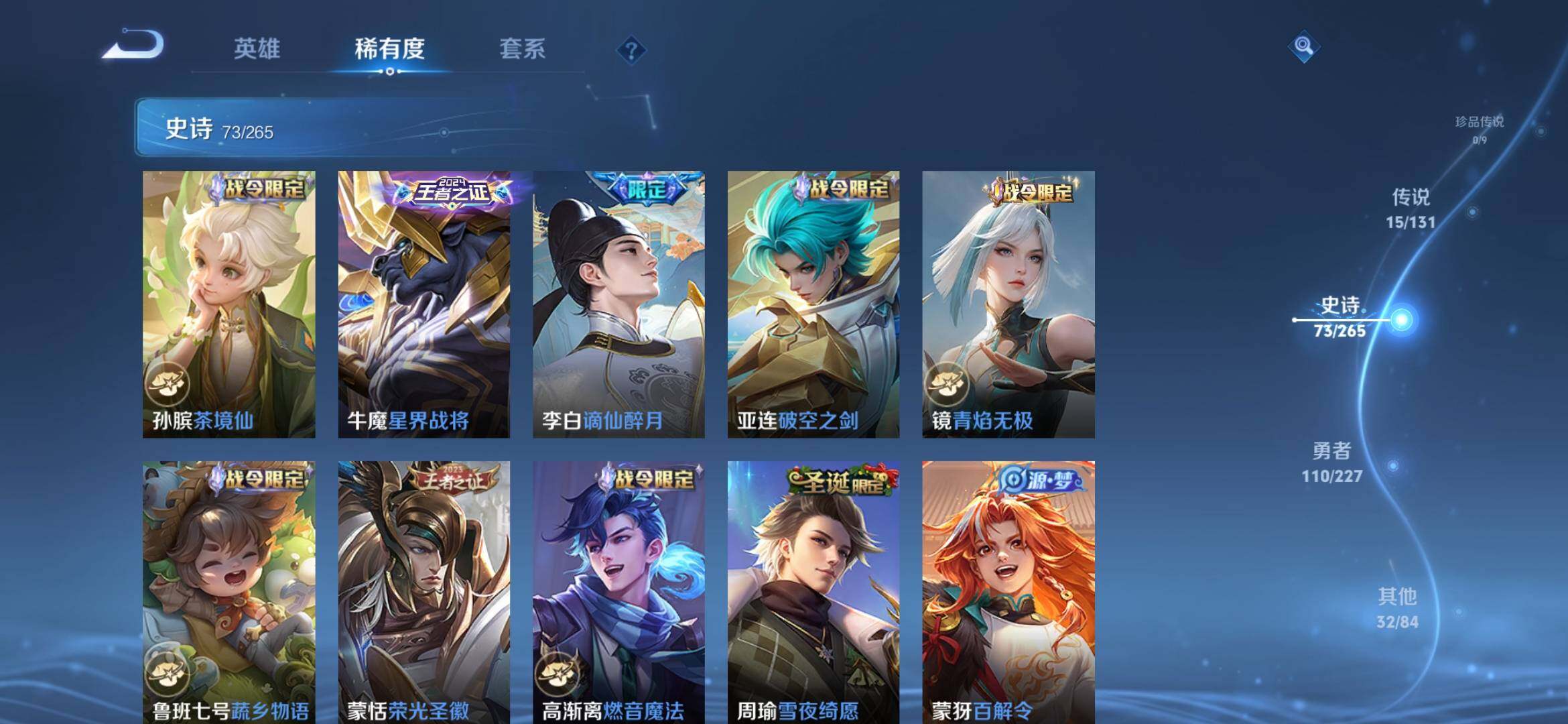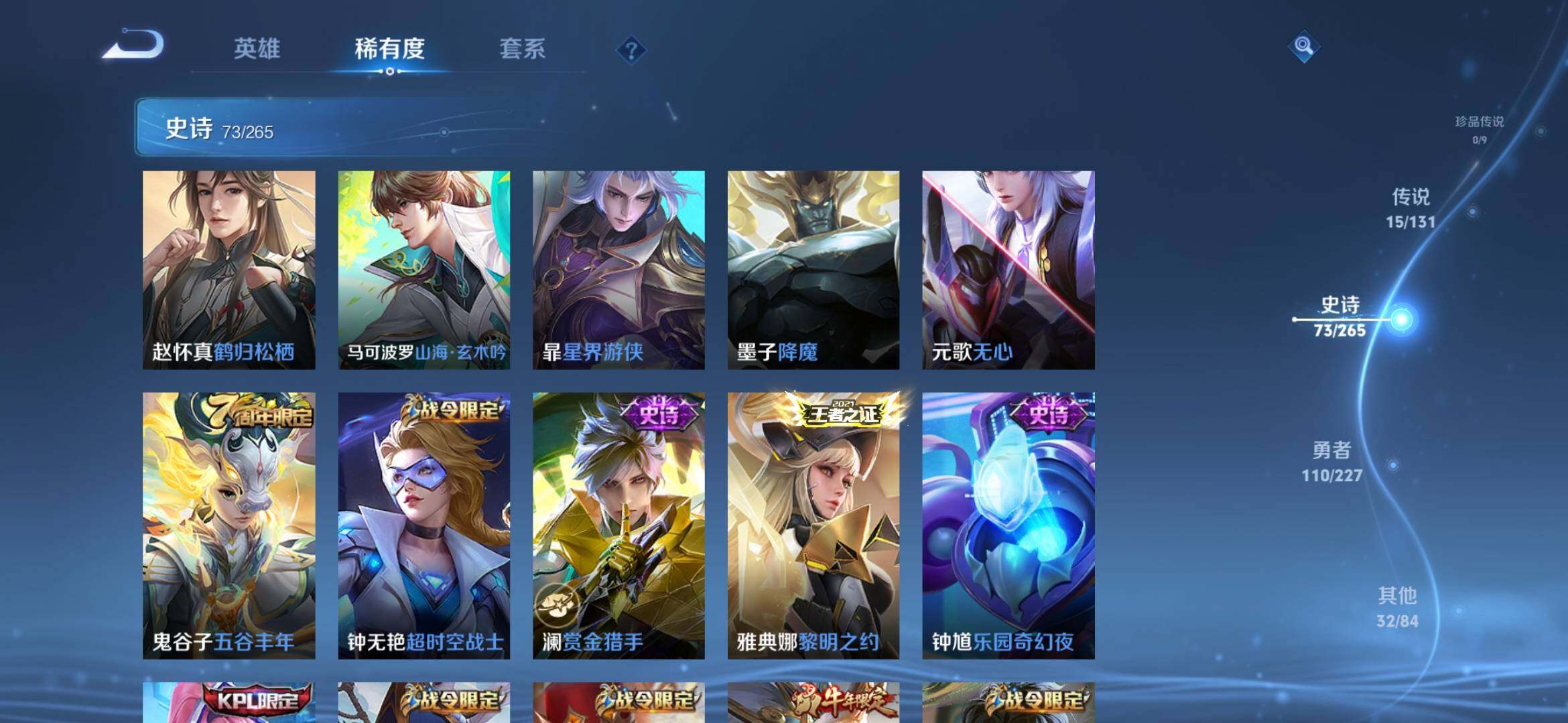 【231皮1典藏15传说 弑呛猎影 李 炽阳神光 至尊宝 时雨天司】安卓q-v8-最强王者段位-126英雄-231皮肤-1典藏皮肤-15传说-73史诗 【英雄全皮】:达摩全皮,影全皮 【荣耀典藏】:韩信弑呛猎影 【传说皮肤】:司空震愿照山河定,澜愿照九州拓,云缨幻光神呛,裴擒虎祥瑞亨通,桑启鸣野蒿,不知火舞绯月行,百里守约碎云,露娜启示之音,曜李 ,诸葛亮时雨天司,镜炽阳神光,虞姬启明星使,干将莫邪久胜战神,达摩黄金狮子座,貂蝉仲夏夜之梦 【限定皮肤】:虞姬夏日便利店,姜子牙天穹之誓,李白谪仙醉月,狄仁杰阴阳师,赵云皇家上将,墨子神迹守卫,墨子降魔,孙尚香蔷薇恋人,钟无艳超时空战士,吕布御风骁将,元歌云间偶戏,元歌无心,夏侯惇朔风刀,甄姬落雪兰心,曹操天狼征服者,马可波罗山海玄木吟,狄仁杰魔术师,狄仁杰万华元夜,达摩星际陆战队,达摩沙漠行僧,项羽海滩派对,老夫子醍醐杖,老夫子航海奇遇记,关羽冰锋战神,程咬金演武夺筹,露娜启示之音,兰陵王金庭之子,不知火舞绯月行,亚瑟潮玩骑士王,孙悟空至尊宝,李元芳银河之约,李元芳云中旅人,虞姬启明星使,钟馗驱傩正仪,干将莫邪冰霜恋舞曲,雅典娜黎明之约,鬼谷子原初探秘者,鬼谷子五谷丰年,诸葛亮时雨天司,苏烈千军破阵,百里玄策原初追逐者,弈星混沌棋,沈梦溪星空之诺,沈梦溪大漠名商,明世隐疑决卦,裴擒虎李小龙,米莱狄胡桃异想国,伽罗天狼溯光者,上官婉儿梁祝,嫦娥暖冬兔眠,曜李 ,鲁班大师探海日志,桑启海盐诗旅,暃星界游侠,艾琳女武神,赵怀真鹤归松栖,张良古海寻踪,蒙犽百解令,蒙恬荣光圣徽,高渐离燃音魔法,妲己灵卜魔法,鬼谷子天穹祈灯,沈梦溪龙舞盛年,鲁班七号蔬乡物语,李元芳蔬乡物语,刘邦剑破天穹,程咬金群星魔术团,镜青焰无极,项羽苍威无极,周瑜熔金海岸 【年限皮肤】:吕布御风骁将,诸葛亮时雨天司,马可波罗山海玄木吟 【赛季限定】:夏侯惇朔风刀,狄仁杰万华元夜,达摩沙漠行僧,老夫子醍醐杖,程咬金演武夺筹,兰陵王金庭之子,张良古海寻踪,李元芳云中旅人,钟馗驱傩正仪,雅典娜黎明之约,鬼谷子原初探秘者,苏烈千军破阵,百里玄策原初追逐者,弈星混沌棋,沈梦溪大漠名商,明世隐疑决卦,鲁班大师探海日志,桑启海盐诗旅,鬼谷子天穹祈灯,蒙恬荣光圣徽,刘邦剑破天穹,姜子牙天穹之誓 【战令限定】:墨子神迹守卫,虞姬夏日便利店,钟无艳超时空战士,元歌云间偶戏,甄姬落雪兰心,达摩星际陆战队,老夫子航海奇遇记,亚瑟潮玩骑士王,李元芳银河之约,沈梦溪星空之诺,米莱狄胡桃异想国,嫦娥暖冬兔眠,暃星界游侠,高渐离燃音魔法,妲己灵卜魔法,鲁班七号蔬乡物语,李元芳蔬乡物语,镜青焰无极,项羽苍威无极 【史诗皮肤】:露娜紫霞仙子,赵云皇家上将,赵云未来纪元,甄姬冰雪圆舞曲,王昭君偶像歌手,狄仁杰魔术师,廉颇地狱岩魂,宫本武藏鬼剑武藏,孙尚香蔷薇恋人,孙尚香水果甜心,嬴政摇滚巨星,妲己魅力维加斯,妲己女仆咖啡,墨子金属风暴,吕布圣诞狂欢,李白千年之狐,吕布末日机甲,张飞乱世虎臣,关羽冰锋战神,孙悟空至尊宝,花木兰水晶猎龙者,刘邦德古拉伯爵,夏侯惇乘风破浪,小乔缤纷独角兽,兰陵王暗隐猎兽者,诸葛亮黄金分割率,亚瑟心灵战警,雅典娜冰冠公主,安琪拉心灵骇客,百里守约特工魅影,铠曙光守护者,蔡文姬舞动绿茵,李元芳逐浪之夏,白起星夜王子,阿轲节奏热浪,大乔猫狗日记,干将莫邪冰霜恋舞曲,狄仁杰鹰眼统帅,公孙离无限星赏官,上官婉儿梁祝,曹操天狼征服者,李元芳银河之约,娜可露露晚萤,大乔白蛇,橘右京修罗,孙尚香时之恋人,百里玄策原初追逐者,裴擒虎李小龙,元歌云间偶戏,吕布御风骁将,米莱狄胡桃异想国,老夫子航海奇遇记,伽罗天狼溯光者,钟馗乐园奇幻夜,雅典娜黎明之约,澜赏金猎手,钟无艳超时空战士,鬼谷子五谷丰年,元歌无心,墨子降魔,暃星界游侠,马可波罗山海玄木吟,赵怀真鹤归松栖,蒙犽百解令,周瑜雪夜绮愿,妲己灵卜魔法,高渐离燃音魔法,蒙恬荣光圣徽,鲁班七号蔬乡物语,镜青焰无极,亚连破空之剑,李白谪仙醉月,牛魔星界战将,孙膑茶境仙 【其他皮肤】:项羽海滩派对,韩信教廷特使,韩信街头霸王,露娜哥特玫瑰,阿轲爱心护理,达摩大发明家,赵云白执事,赵云忍炎影,芈月红桃皇后,艾琳女武神,白起白色死神,牛魔西部大镖客,扁鹊化身博士,安琪拉玩偶对对碰,妲己少女阿狸,亚瑟死亡骑士,达摩拳王,花木兰兔女郎,张飞五福同心,甄姬花好人间,刘备万事如意,宫本武藏万象初新,后羿阿尔法小队,狄仁杰阴阳师,刘备纽约教父,钟无艳海滩丽影,宫本武藏霸王丸,王昭君幻想奇妙夜,狂铁命运角斗场,诸葛亮掌控之力,苏烈坚韧之力,大乔守护之力,明世隐虹云星官,张良幽兰居士,庄周奇妙博物学,小乔丁香结,孙膑归虚梦演,沈梦溪鲨炮海盗猫,姜子牙炽热元素使,夏侯惇朔风刀,沈梦溪星空之诺,弈星混沌棋,哪吒次元突破,鲁班七号黑桃队长,明世隐疑决卦,盾山圆桌骑士,老夫子醍醐杖,狂铁特工战影,廉颇无尽征程,鬼谷子原初探秘者,狄仁杰万华元夜,亚瑟潮玩骑士王,刘禅秘密基地,杨戬次元傲视,露娜瓷语鉴心,达摩星际陆战队,程咬金演武夺筹,张良缤纷绘卷,钟馗驱傩正仪,墨子神迹守卫,鲁班大师乓乓大师,苏烈千军破阵,马可波罗潮玩牛仔,达摩沙漠行僧,兰陵王金庭之子,沈梦溪大漠名商,蒙恬蔚蓝守将,甄姬落雪兰心,李元芳云中旅人,戈娅危途狂花,桑启海盐诗旅,嫦娥暖冬兔眠