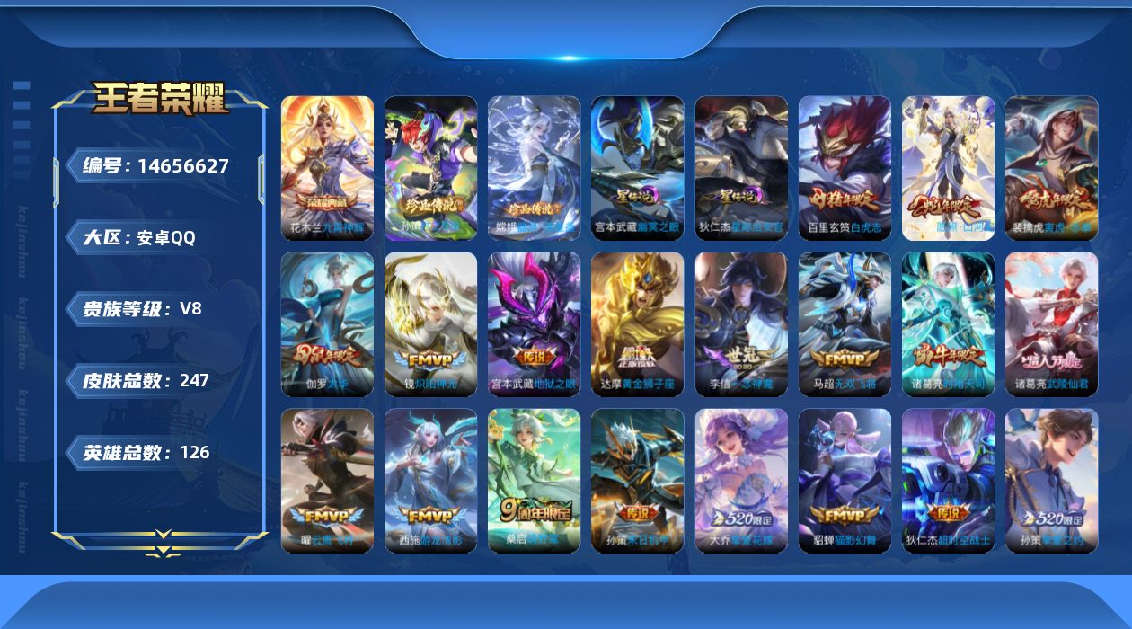 [14656627]【终身售后 找回包赔】安卓手q305区247皮2珍品传说1典藏23传说0无双 营地id97502751可二次v8无双王者 【珍品传说皮肤】:时之奇旅器灵·落星盏【荣耀典藏】:九霄神辉【星传说】:幽冥之眼星际治安官,【优质限定皮肤】:无双飞将白虎志神威【传说皮肤】:神树通天黄金狮子座愿照·山河定鸣野蒿无双飞将地狱之眼挚爱花嫁挚爱之约游龙清影启明星使武陵仙君超时空战士启示之音末日机甲寅虎·赤拳炽阳神光时雨天司白虎志云鹰飞将一念神魔冠军飞将猫影幻舞太华【特殊英雄】:嬴政,【史诗皮肤】:末日机甲万灵启世功夫厨神涂山容容青焰无极幽灵船长百相守梦女仆咖啡龙之律动逐浪之夏顽趣器灵·浮梦炉天才门将妄想食味绅士熊喵水晶猎龙者冰雪圆舞曲茶境仙东方月初千年之狐埋骨钱吟游魔法心灵战警匿光决锋者鬼剑武藏赏金猎手永昼黎明之约火炮绅士心灵骇客傲雪梅呛寅虎·心曲匿光追影者原初追逐者拒霜思金属风暴高山流水遇见飞天优雅恋人云间偶戏德古拉伯爵乱世虎臣默契交锋星夜王子纤云弄巧李小龙繁星吟游紫霞仙子缤纷独角兽暗影游猎神威暗隐猎兽者未来纪元魅语银河之约暗夜贵公子箭羽风息魔术师幽恒如梦令如梦令鹰眼统帅曙光守护者皇家上将节奏热浪晚萤无限星赏官梁祝狮舞东方水果甜心魅力维加斯 星元:29星传说:2天幕:1按键:15贵族:8点卷:4皮肤碎片:165荣耀积分:9英雄碎片:400星传说:狄仁杰星际治安官宫本武藏幽冥之眼