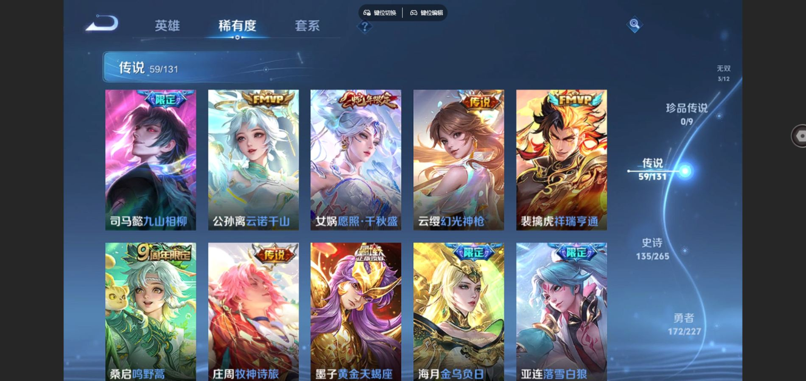 2310144-126英雄-451皮肤v10-451皮肤3典藏3无双59传说 中路43段 游走36段 6星传说 时之思念 幽冥火 幽冥之眼 星际治安官 未来机甲 金色仲夏夜【典藏】武则天 天鹅之梦 杀手不太冷 【无双】 天机白泽 群星魔术团韩信 碎月剑心 【传说】 黄金天蝎座 金乌负日 落雪白狼 曦玄引吕布 曦玄引貂蝉 乘龙问璇玑 乘龙淬吴钩 乘龙铭钟鼎 战鼓燎原 逐花归海 觅芳踪 惊梅