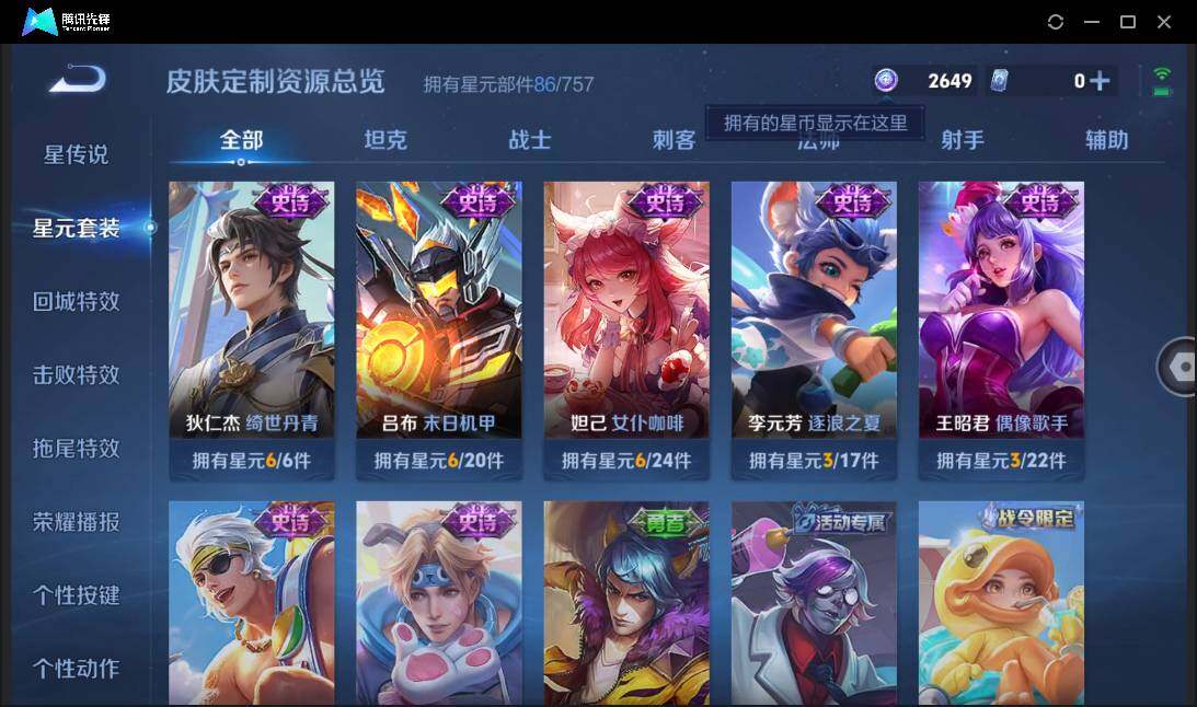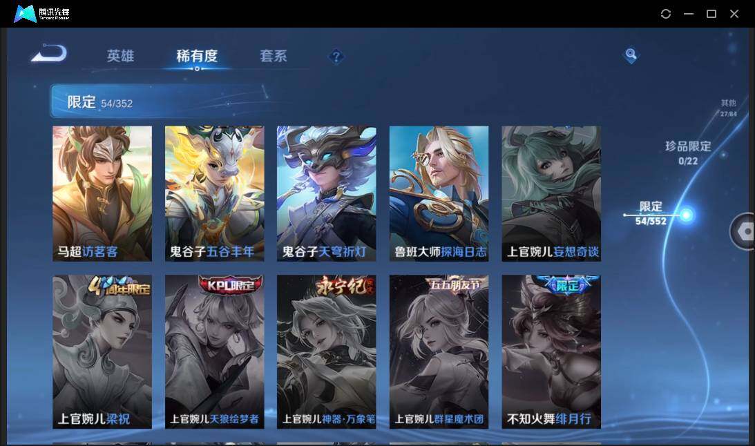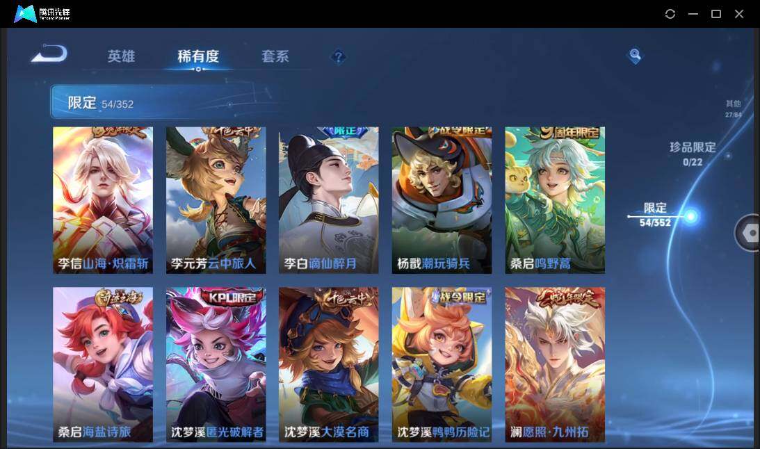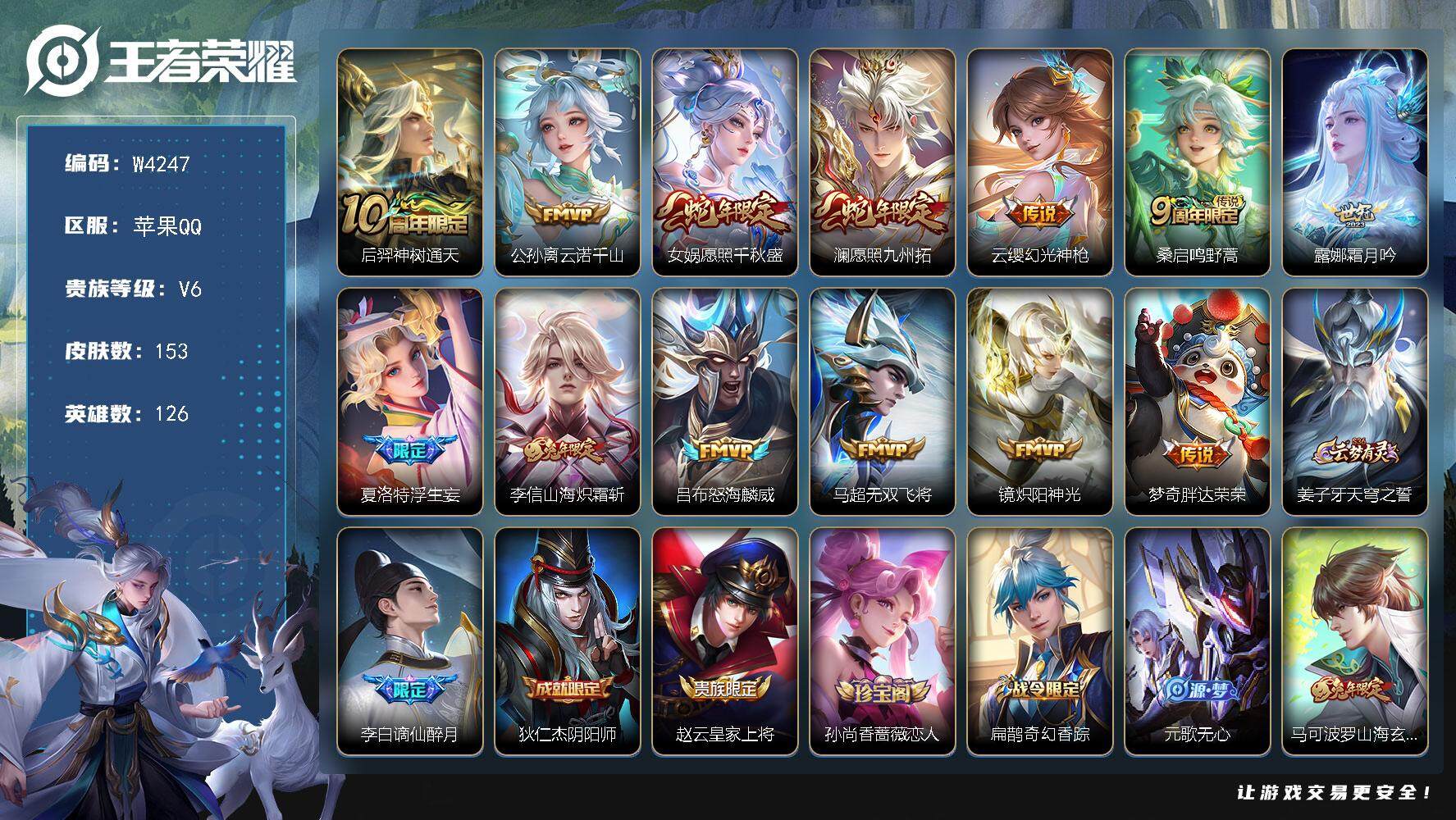 贵族6/皮肤153/传说13/史诗47/英雄126/孙权全皮/夏洛特全皮/戈娅全皮/后羿神树通天/公孙离云诺千山/女娲愿照千秋盛/澜愿照九州拓/云缨幻光神呛/桑启鸣野蒿/露娜霜月吟/夏洛特浮生妄/李信山海炽霜斩/吕布怒海麟威/马超无双飞将/镜炽阳神光/梦奇胖达荣荣/姜子牙天穹之誓/李白谪仙醉月/狄仁杰阴阳师/赵云皇家上将/孙尚香蔷薇恋人/扁鹊奇幻香踪/元歌无心/马可波罗山海玄木吟/狄仁杰魔术师/项羽海滩派对/韩信飞衡/兰陵王金庭之子/孙悟空孙行者/张飞虎魄/李元芳云中旅人/杨戬潮玩骑兵/鬼谷子五谷丰年/沈梦溪大漠名商/沈梦溪匿光破解者/裴擒虎擒涛扼浪/瑶山海碧波行/嫦娥暖冬兔眠/西施玲珑珍味/蒙犽狂想玩偶喵/鲁班大师探海日志/桑启海盐诗旅/暃星界游侠/戈娅驭风魔法/张良古海寻踪/蒙恬荣光圣徽/鬼谷子天穹祈灯/露娜紫霞仙子/王昭君偶像歌手/宫本武藏鬼剑武藏/孙尚香水果甜心/嬴政摇滚巨星/妲己女仆咖啡/墨子金属风暴/曹操幽灵船长/吕布末日机甲/花木兰水晶猎龙者/夏侯惇乘风破浪/雅典娜冰冠公主/百里守约特工魅影/铠曙光守护者/蔡文姬舞动绿茵/李元芳逐浪之夏/程咬金功夫厨神/孙策猫狗日记/狄仁杰鹰眼统帅/钟馗乐园奇幻夜/夏洛特永昼/澜赏金猎手/刘禅电玩爆裂旋风/孙膑茶境仙/苍狼魂孤将/狄仁杰绮世丹青/阿轲化蝶舞/刘禅鸭鸭历险记/狂铁龙之律动/百里守约雪豹霜爪/韩信街头霸王/赵云忍炎影/程咬金星际陆战队/白起白色死神/扁鹊化身博士/孙膑天使之翼/姜子牙时尚教父/妲己少女阿狸/典韦黄金武士/亚瑟死亡骑士/甄姬花好人间/刘备万事如意/刘备汉昭烈帝/关羽龙腾万里/王昭君幻想奇妙夜/狂铁命运角斗场/孙尚香沉稳之力/吕布野性能量/沈梦溪鲨炮海盗猫/鲁班七号黑桃队长/鲁班大师乓乓大师/马可波罗潮玩牛仔/蒙犽胡桃狂想曲/戈娅危途狂花/猪八戒潮玩探月行/牛魔牛运亨通/白起乐园追猎者/太乙真人劲辣红锅/莱西奥西部游侠/姬小满零食大作战/李元芳妄想特派/东皇太一噬灭天穹/亚瑟动物派对/太乙真人谧流熔炉/马超访茗客/西施雪境奇遇/明世隐景韶洛都/戈娅玫蓝誓约/刘备浪漫序章/钟馗虚灵犬护/沈梦溪鸭鸭历险记/苏烈春野闲踪/小乔秘证寻踪/张良灵野札记/阿古朵布丁狗之约/甄姬逆浪荇歌/哪吒罗小黑战记/亚瑟荣光之誓/张良罗小黑战记/孙权径山谋武/艾琳鹤鸣心笺/鲁班七号木偶奇遇记/貂蝉异域舞娘/老夫子潮流仙人/曹操超能战警/孙膑未来旅行/后羿精灵王/李元芳特种部队/虞姬加勒比小姐/蔡文姬蔷薇王座/雅典娜战争女神/马可波罗激情绿茵/杨戬埃及法老/哪吒三太子/诸葛亮星航指挥官/黄忠芝加哥教父/大乔伊势巫女/干将莫邪第七人偶/百里守约绝影神呛/梦奇美梦成真/明世隐占星师/裴擒虎街头旋风/米莱狄精准探案法/元歌午夜歌剧院/伽罗花见巫女/嫦娥露花倒影/猪八戒年年有余/蒙恬秩序猎龙将