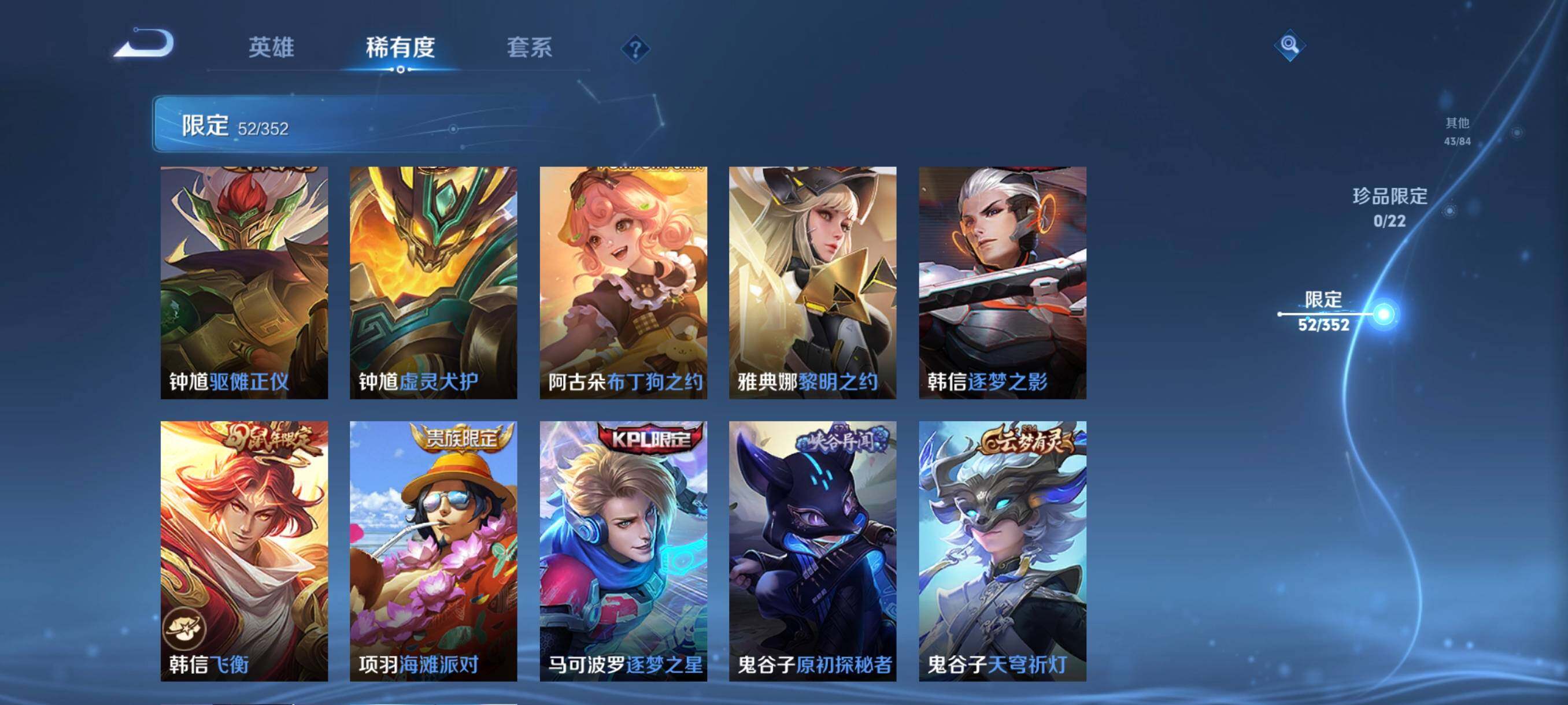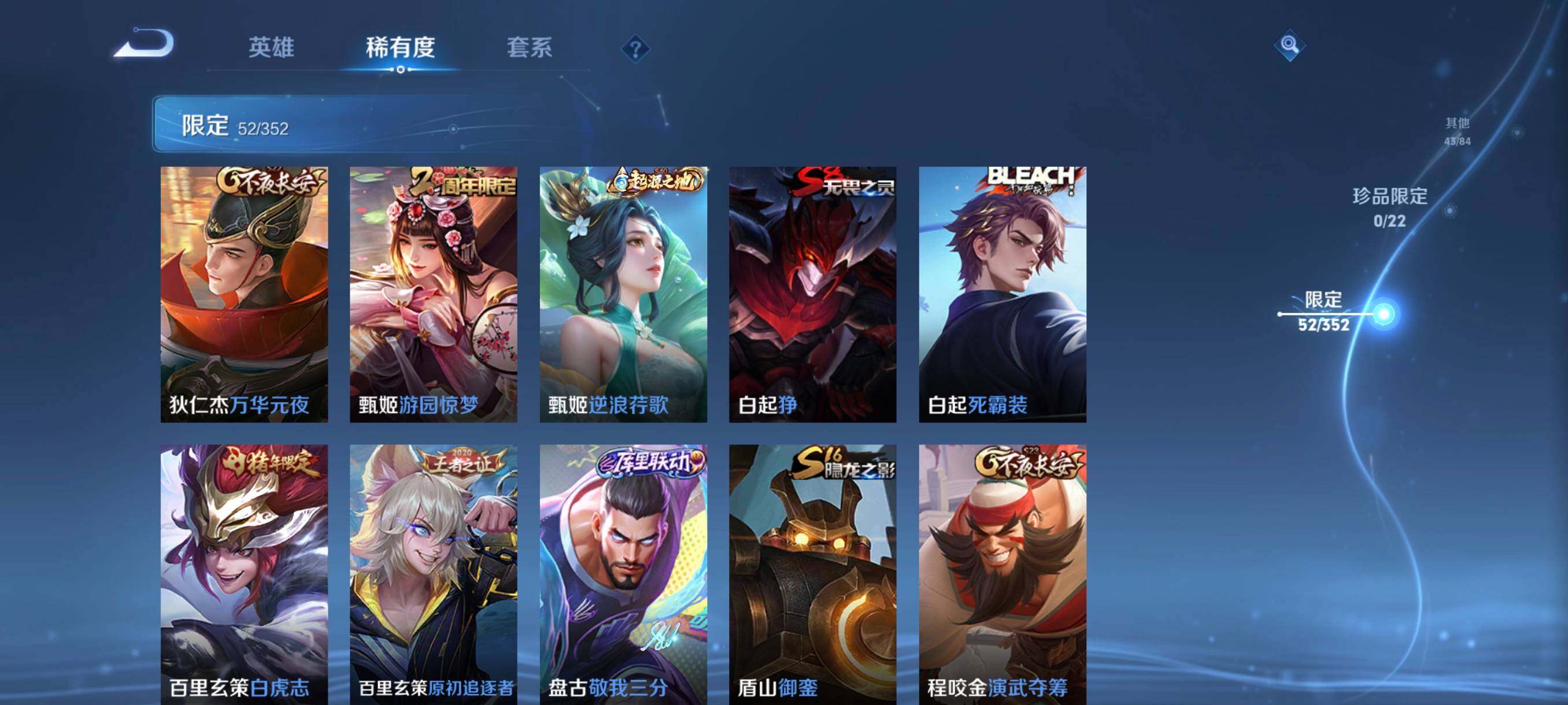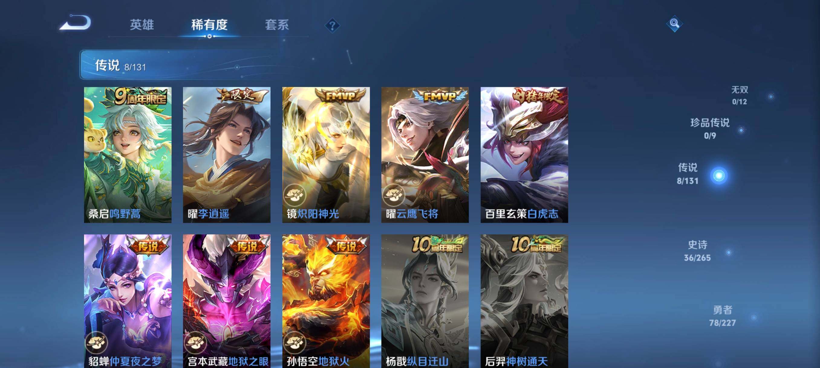 127英雄-165皮肤-账号亮点:桑启鸣野蒿,曜李 ,镜炽阳神光,曜云鹰飞将,百里玄策白虎志,貂蝉仲夏夜之梦,宫本武藏地狱之眼,孙悟空地狱火 韩信飞衡274-5 【传说皮肤】:桑启鸣野蒿,曜李 ,镜炽阳神光,曜云鹰飞将,百里玄策白虎志,貂蝉仲夏夜之梦,宫本武藏地狱之眼,孙悟空地狱火 【限定皮肤】:白起狰,姜子牙天穹之誓,狄仁杰阴阳师,赵云皇家上将,芈月重明,甄姬游园惊梦,曹操烛龙,马可波罗逐梦之星,狄仁杰魔术