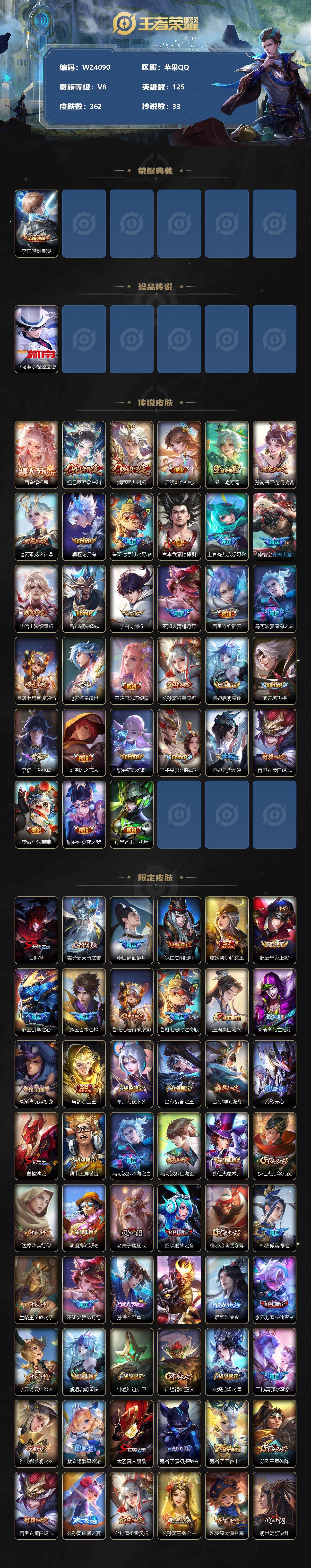 【商品标题】:苹果q-v7-永恒钻石i段位-125英雄-362皮肤-1典藏-0珍品无双-0无双-1珍品传说-33传说-108史诗 【荣耀典藏】:李白鸣剑曳影 【珍品传说】:马可波罗怪盗基德 【传说皮肤】:西施续相思,妲己愿照众生和,澜愿照九州拓,云缨幻光神呛,桑启鸣野蒿,孙尚香乘龙问璇玑,赵云乘龙铭钟鼎,澜逐花归海,鲁班七号时之奇旅,宫本武藏惊梅引,上官婉儿妄想奇谈,孙悟空齐天大圣,李信山海炽霜斩,吕布怒海麟威,李白诗剑行,不知火舞绯月行,百里守约碎云,马可波罗深海之息,鲁班七号寅虎瑞焰,赵云淬星耀世,王昭君乞巧织情,公孙离祈雪灵祝,虞姬启明星使,曜云鹰飞将,李信一念神魔,刘备时之恋人,貂蝉猫影幻舞,干将莫邪久胜战神,虞姬云霓雀翎,百里玄策白虎志,梦奇胖达荣荣,貂蝉仲夏夜之梦,孙尚香末日机甲 【限定皮肤】:白起狰,姜子牙天穹之誓,李白谪仙醉月,狄仁杰阴阳师,虞姬凯尔特女王,赵云皇家上将,赵云引擎之心,赵云百木心呛,鲁班七号寅虎瑞焰,鲁班七号时之奇旅,庄周高山流水,高渐离死亡摇滚,高渐离玩趣恶龙,扁鹊炼金王,芈月幻夜卜梦,吕布猎兽之王,吕布御风骁将,元歌无心,曹操烛龙,典韦蓝屏警告,马可波罗深海之息,马可波罗山海玄木吟,狄仁杰魔术师,狄仁杰万华元夜,达摩沙漠行僧,项羽海滩派对,老夫子醍醐杖,貂蝉逐梦之音,程咬金演武夺筹,韩信傲雪梅呛,兰陵王金庭之子,不知火舞绯月行,孙悟空至尊宝,孙悟空齐天大圣,后羿如梦令,李元芳匿光侦查者,李元芳云中旅人,虞姬启明星使,钟馗神迹守卫,钟馗驱傩正仪,女娲朔望之晖,干将莫邪冰霜恋舞曲,雅典娜黎明之约,蔡文姬繁星吟游,太乙真人饕餮,鬼谷子原初探秘者,鬼谷子五谷丰年,苏烈千军破阵,百里玄策白虎志,公孙离蜜橘之夏,公孙离祈雪灵祝,公孙离玉兔公主,沈梦溪大漠名商,明世隐疑决卦,裴擒虎李小龙,裴擒虎擒涛扼浪,米莱狄御霄,云中君纤云弄巧,李信山海炽霜斩,上官婉儿梁祝,上官婉儿妄想奇谈,嫦娥拒霜思,嫦娥暖冬兔眠,西施玲珑珍味,鲁班大师探海日志,桑启海盐诗旅,暃星界游侠,戈娅驭风魔法,艾琳女武神,艾琳流音漫舞,司空震地狱燃心,阿古朵江河有灵,张良古海寻踪,蒙犽百解令,蒙恬荣光圣徽,高渐离燃音魔法,妲己灵卜魔法,鬼谷子天穹祈灯,孙尚香乘龙问璇玑,赵云乘龙铭钟鼎,沈梦溪龙舞盛年,鲁班七号蔬乡物语,李元芳蔬乡物语,刘邦剑破天穹,程咬金群星魔术团,镜青焰无极,项羽苍威无极,周瑜熔金海岸 【年限皮肤】:百里玄策白虎志,鲁班七号寅虎瑞焰,公孙离祈雪灵祝,吕布御风骁将,马可波罗山海玄木吟,李信山海炽霜斩,孙尚香乘龙问璇玑,赵云乘龙铭钟鼎 【赛季限定】:扁鹊炼金王,白起狰,曹操烛龙,狄仁杰万华元夜,达摩沙漠行僧,老夫子醍醐杖,程咬金演武夺筹,兰陵王金庭之子,张良古海寻踪,李元芳云中旅人,虞姬凯尔特女王,钟馗驱傩正仪,雅典娜黎明之约,太乙真人饕餮,鬼谷子原初探秘者,苏烈千军破阵,沈梦溪大漠名商,明世隐疑决卦,裴擒虎擒涛扼浪,米莱狄御霄,鲁班大师探海日志,桑启海盐诗旅,鬼谷子天穹祈灯,蒙恬荣光圣徽,刘邦剑破天穹,姜子牙天穹之誓 【战令限定】:芈月幻夜卜梦,吕布猎兽之王,典韦蓝屏警告,艾琳流音漫舞,钟馗神迹守卫,女娲朔望之晖,嫦娥暖冬兔眠,西施玲珑珍味,司空震地狱燃心,暃星界游侠,戈娅驭风魔法,高渐离燃音魔法,妲己灵卜魔法,鲁班七号蔬乡物语,李元芳蔬乡物语,镜青焰无极,项羽苍威无极 【史诗皮肤】:鲁班七号电玩小子,项羽苍穹之光,露娜紫霞仙子,阿轲暗夜猫娘,赵云皇家上将,赵云未来纪元,甄姬冰雪圆舞曲,王昭君偶像歌手,狄仁杰魔术师,廉颇地狱岩魂,宫本武藏鬼剑武藏,孙尚香水果甜心,嬴政暗夜贵公子,嬴政摇滚巨星,妲己魅力维加斯,妲己女仆咖啡,墨子龙骑士,墨子金属风暴,吕布圣诞狂欢,刘禅绅士熊喵,曹操幽灵船长,李白千年之狐,吕布末日机甲,张飞乱世虎臣,韩信白龙吟,貂蝉逐梦之音,孙悟空至尊宝,赵云引擎之心,花木兰水晶猎龙者,刘邦德古拉伯爵,夏侯惇乘风破浪,小乔缤纷独角兽,兰陵王暗隐猎兽者,诸葛亮黄金分割率,亚瑟心灵战警,安琪拉心灵骇客,百里守约特工魅影,铠曙光守护者,蔡文姬舞动绿茵,刘禅天才门将,公孙离蜜橘之夏,李元芳逐浪之夏,程咬金功夫厨神,白起星夜王子,阿轲节奏热浪,孙策猫狗日记,大乔猫狗日记,干将莫邪冰霜恋舞曲,典韦蓝屏警告,伽罗箭羽风息,狄仁杰鹰眼统帅,公孙离无限星赏官,上官婉儿梁祝,蔡文姬繁星吟游,娜可露露晚萤,后羿如梦令,小乔青蛇,不知火舞魅语,橘右京修罗,瑶遇见神鹿,裴擒虎李小龙,云中君纤云弄巧,吕布御风骁将,西施诗语江南,杨戬天秀启明,沈梦溪月团寄思,庄周高山流水,司马懿暗渊魔法,嫦娥拒霜思,雅典娜黎明之约,韩信傲雪梅呛,赵云百木心呛,公孙离玉兔公主,澜赏金猎手,貂蝉唤灵魅影,鬼谷子五谷丰年,元歌无心,暃星界游侠,马可波罗山海玄木吟,镜玫瑰异探,戈娅驭风魔法,镜真我赫兹,百里守约真我赫兹,莱西奥末日机甲,李元芳匿光侦查者,司空震地狱燃心,阿古朵江河有灵,蒙犽百解令,周瑜雪夜绮愿,妲己灵卜魔法,高渐离燃音魔法,蒙恬荣光圣徽,鲁班七号蔬乡物语,镜青焰无极,黄忠怒海争锋,亚连破空之剑,李白谪仙醉月,艾琳陌上桑,百里守约百相守梦,孙膑茶境仙,弈星万物之道,赵怀真器灵浮梦炉,苍狼魂孤将,狄仁杰绮世丹青,芈月瑰影绮梦,阿轲化蝶舞,刘禅鸭鸭历险记,狂铁龙之律动,后羿