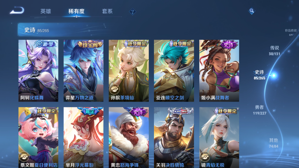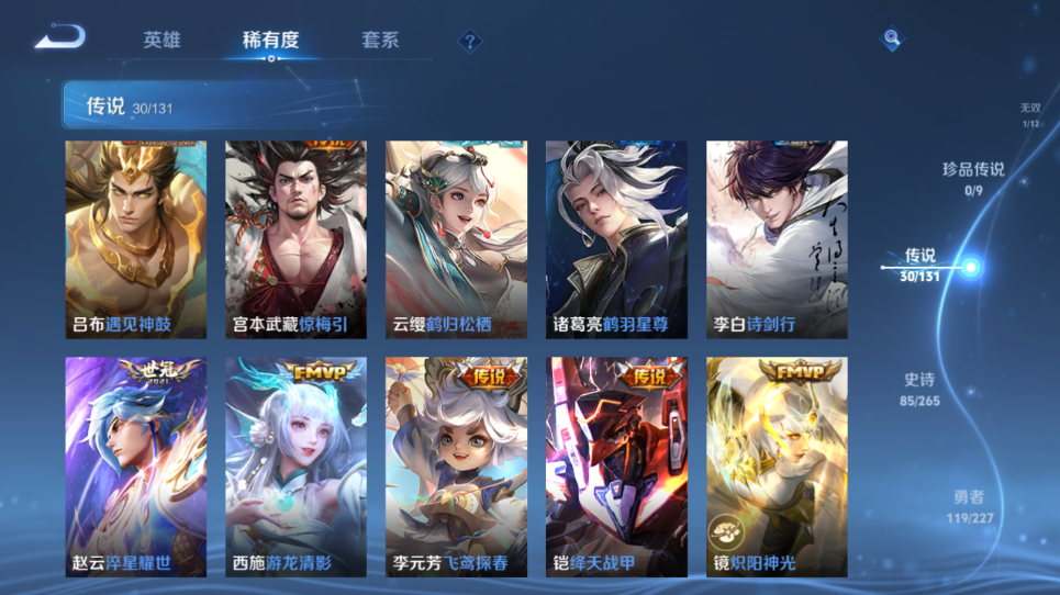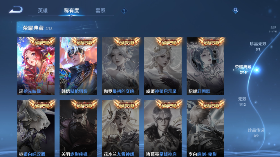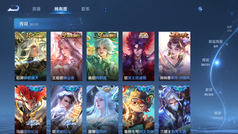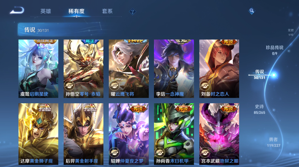 【王者荣耀】【lywz23777】珍品无双0 典藏2 无双1 珍品传说0 传说30 史诗85 英雄127 皮肤311 贵族8级 荣耀典藏:弑呛猎影|拾光映像__无双皮肤:青丘·九尾__传说皮肤:鸣野蒿|绛天战甲|炽阳神光|启明星使|地狱之眼|仲夏夜之梦|黄金狮子座|黄金射手座|刘备-时之恋人|一念神魔|云鹰飞将|飞鸢探春|游龙清影|淬星耀世|鹤羽星尊|孙尚香-末日机甲|惊梅引|铠-琥珀纪元|零号·赤焰|鲁班七号-时之奇旅|马超-琥珀纪元|诗剑行|霜月吟|影龙天霄|遇见神鼓|乘龙·问璇玑|云缨-鹤归松栖|冥王哈迪斯|映山客|神树通天__稀有限定:至尊宝|青龙志|大圣娶亲|一生所爱|神威|孙行者|傲雪梅呛|李小龙|狮舞东方|拒霜思|百解令|大漠名商|地狱燃心|高山流水|古海寻踪|海滩派对|海盐诗旅|幻夜卜梦|皇家上将|火炮绅士|剑破天穹|江河有灵|金庭之子|镜-真我赫兹|决胜骁骑|蓝屏警告|魔法小厨娘|魔术师|千军破阵|青焰无极|驱傩正仪|燃音魔法|沙漠行僧|探海日志|天穹祈灯|妄想食味|无心|五谷丰年|纤云弄巧|阴阳师|驭风魔法|云端筑梦师|真爱魔法|逐梦之音|暗隐猎兽者|缤纷独角兽|冰冠公主|冰雪圆舞曲|大乔-猫狗日记|德古拉伯爵|功夫厨神|鬼剑武藏|黄金分割率|箭羽风息|节奏热浪|金属风暴|李元芳-蔬乡物语|龙骑士|魅力维加斯|魅语|女仆咖啡|偶像歌手|上官婉儿-群星魔术团|圣诞狂欢|圣诞恋歌|诗语江南|鲁班七号-蔬乡物语|水果甜心|水晶猎龙者|孙策-猫狗日记|天才门将|晚萤|赵云-未来纪元|星夜王子|摇滚巨星|鹰眼统帅|永昼|幽灵船长|遇见神鹿|月团寄思|至美·乘鲤谣|紫霞仙子|敬我三分|破空之剑|战舞者|蔡文姬-夏日便利店|虞姬-夏日便利店|天穹之誓|浮光幕影|怒海争锋|修罗|曙光守护者|心灵战警|千年之狐|孙尚香-时之恋人|无限星赏官|特工魅影|心灵骇客|茶境仙|万物之道|化蝶舞|云中旅人|玲珑珍味|孙悟空-神迹守卫|流音漫舞|访茗客|灵卜魔法|苍威无极|圣弓游侠|荣光之誓|鹤鸣心笺__优质皮肤:尼罗河女神|一千零一夜|创世神祝|年年有余|孤猎|木偶奇遇记|午夜歌剧院|露花倒影|未来旅行|激情绿茵|海之征途|天启骑士|碧珀绯影|秩序猎龙将|锦衣卫|冰刃幻境|森|超能战警|英喵野望|维京掠夺者|海军大将|绯红之刃|踏雪寻梅|启蛰|战争骑士|伊势巫女|画中游|生化警戒|威尼斯狂欢|第七人偶|潮流仙人|芝加哥教父|街头旋风|绝影神呛|地府判官|荷鲁斯之眼|幸存者|赤焰之缨|福禄兄弟|隐刃|前尘|特种部队|三太子|精灵王|剑舞者|范海辛|星航指挥官|龙域领主|占星师|花间舞|魇语军师|极冰防御线|花见巫女|棒球奇才|东海龙王|蔷薇王座|灼热之刃|精准探案法|圣殿之光|帝国元帅|战争女神|霓裳曲|加勒比小姐|阿摩司公爵|异域舞娘|精灵公主|修竹墨客|万圣前夜|怪诞之夜|动物派对|绒语心约|长夏之忆|异域游侠|暗都幽影|功夫炙烤|暖冬絮语|潮玩探月行|虎啸剑宗|秘密基地|次元突破|鲨炮海盗猫|野性能量|丁香结|守护之力|坚韧之力|功夫老勺|命运角斗场|幻想奇妙夜|海滩丽影|兔女郎|死亡骑士|黄金武士|少女阿狸|玩偶对对碰|宫本武藏-未来纪元|忍·炎影|爱心护理|街头霸王|教廷特使|鸿运当头|金色潮汐|时空谍影|决胜大满贯|破局者|王牌新星|零食大作战|太极少年|幻泉雾影|潮玩造梦师|危途狂花|胡桃狂想曲|契约魔法|紫罗兰之誓|黑桃队长|幽兰居士|拳王|时尚教父|救世之瞳|白色死神|程咬金-星际陆战队|白执事|大发明家|哥特玫瑰|魅影绮裳|西施-雪境奇遇|金福满堂|星梦巡礼|灵卦秘语|爆裂喵拳|景韶洛都|掌控之力|逐霄战戟|龙腾万里|乱世虎臣|经纬探寻者|敏锐之力|西施-归虚梦演|孙悟空-西部大镖客|鲁班大师-归虚梦演|热血海滩|龙舞盛年|汉昭烈帝|乓乓大师|五福同心|猎兽之王|蒙犽-归虚梦演|万事如意|曜-归虚梦演|沉稳之力|程咬金-群星魔术团|完美运算|化身博士|花好人间|熔金海岸|春野之旅|万象初新|苍林狼骑|特工战影|炽热元素使|秘证寻踪|春野闲踪|潮玩士官长|无双福将|戏梦巡演|落日弦歌__贵族等级:贵族8级__王者段位:无双王者打野皮肤号 2典藏1无双 启明星使,乘龙·问璇玑,琥珀纪元,霜月吟,淬星耀世,鹤归松栖,鹤羽星尊等限定皮肤