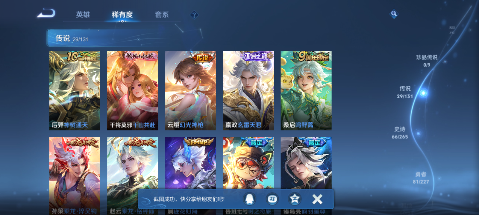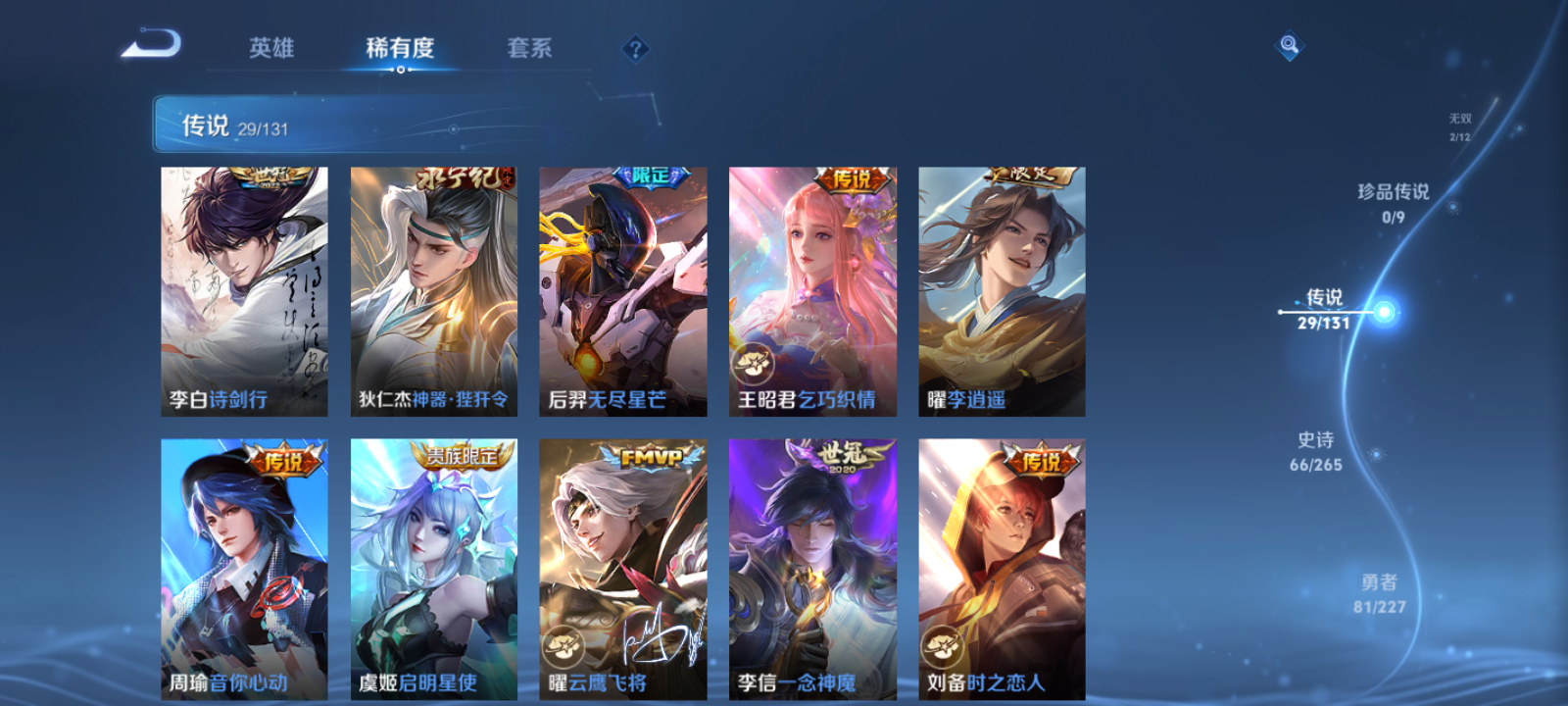 【王者荣耀】【lywz23772】珍品无双0 典藏1 无双2 珍品传说0 传说29 史诗66 英雄127 皮肤229 贵族8级 荣耀典藏:星域神启__无双皮肤:器灵·螭龙剑|天机白泽__传说皮肤:鸣野蒿|无尽星芒|启明星使|地狱之眼|地狱火|仲夏夜之梦|云霓雀翎|黄金狮子座|狄仁杰-超时空战士|黄金射手座|黄金白羊座|刘备-时之恋人|一念神魔|云鹰飞将|冠军飞将|李|乞巧织情|鹤羽星尊|鲁班七号-时之奇旅|诗剑行|周瑜-音你心动|逐花归海|乘龙·淬吴钩|乘龙·铭钟鼎|神器·狴犴令|玄雷天君|幻光神呛|千山共赴|神树通天__稀有限定:青龙志|幽恒|孙行者|傲雪梅呛|拒霜思|百里守约-真我赫兹|大漠名商|地狱燃心|古海寻踪|海滩派对|皇家上将|剑破天穹|魔术师|匿光侦查者|青焰无极|燃音魔法|探海日志|天穹祈灯|纤云弄巧|阴阳师|暗隐猎兽者|缤纷独角兽|冰冠公主|冰雪圆舞曲|乘风破浪|乘龙·聚宝船|大乔-猫狗日记|地狱岩魂|伽罗-琥珀纪元|功夫厨神|鬼剑武藏|唤灵魅影|黄金分割率|节奏热浪|金属风暴|乐园奇幻夜|吕布-末日机甲|魅语|女仆咖啡|偶像歌手|青蛇|热力回旋|赏金猎手|上官婉儿-群星魔术团|圣诞狂欢|水果甜心|水晶猎龙者|孙策-猫狗日记|滕王阁序|天才门将|赵云-未来纪元|星夜王子|摇滚巨星|夜落电台|鹰眼统帅|幽灵船长|逐浪之夏|紫霞仙子|噬灭天穹|埋骨钱|顽岩魄|蔡文姬-夏日便利店|虞姬-夏日便利店|天穹之誓|浮光幕影|曙光守护者|心灵战警|无限星赏官|舞动绿茵|谧流熔炉|万物之道|器灵·浮梦炉|化蝶舞|玲珑珍味|流音漫舞|灵卜魔法|苍威无极|龙之律动|布丁狗之约|虚灵犬护|逆浪荇歌|孙策-百相守梦|周瑜-百相守梦|涂山容容|荣光之誓|万灵启世|鹤鸣心笺__优质皮肤:尼罗河女神|一千零一夜|创世神祝|年年有余|埃及法老|孤猎|木偶奇遇记|熊喵少女|露花倒影|激情绿茵|海之征途|碧珀绯影|冰刃幻境|超能战警|海军大将|绯红之刃|踏雪寻梅|启蛰|画中游|生化警戒|芝加哥教父|街头旋风|荷鲁斯之眼|幸存者|赤焰之缨|福禄兄弟|隐刃|前尘|特种部队|三太子|星航指挥官|爱与和平|花间舞|魇语军师|极冰防御线|花见巫女|灼热之刃|圣殿之光|帝国元帅|战争女神|霓裳曲|加勒比小姐|阿摩司公爵|修竹墨客|万圣前夜|绒语心约|暖冬絮语|幻夜行动|瓷语鉴心|秘密基地|次元突破|鲨炮海盗猫|野性能量|丁香结|守护之力|坚韧之力|功夫老勺|命运角斗场|海滩丽影|兔女郎|黄金武士|天使之翼|忍·炎影|街头霸王|鸿运当头|金色潮汐|漠中幻影|时空谍影|决胜大满贯|破局者|西部游侠|重装意志|拳王|时尚教父|救世之瞳|白色死神|程咬金-星际陆战队|白执事|大发明家|哥特玫瑰|魅影绮裳|西施-雪境奇遇|星梦巡礼|灵卦秘语|掌控之力|铁骨偃魂|龙腾万里|经纬探寻者|敏锐之力|西施-归虚梦演|牛魔-西部大镖客|鲁班大师-归虚梦演|汉昭烈帝|乓乓大师|五福同心|万事如意|曜-归虚梦演|太乙真人-圆桌骑士|沉稳之力|程咬金-群星魔术团|完美运算|化身博士|花好人间|熔金海岸|万象初新|苍林狼骑|命运加冕|死霸装|锦麟游梦__贵族等级:贵族8级__王者段位:至尊星耀诸葛典藏 诸葛 曜无双 超多热门传说皮肤 2传说天幕28按键