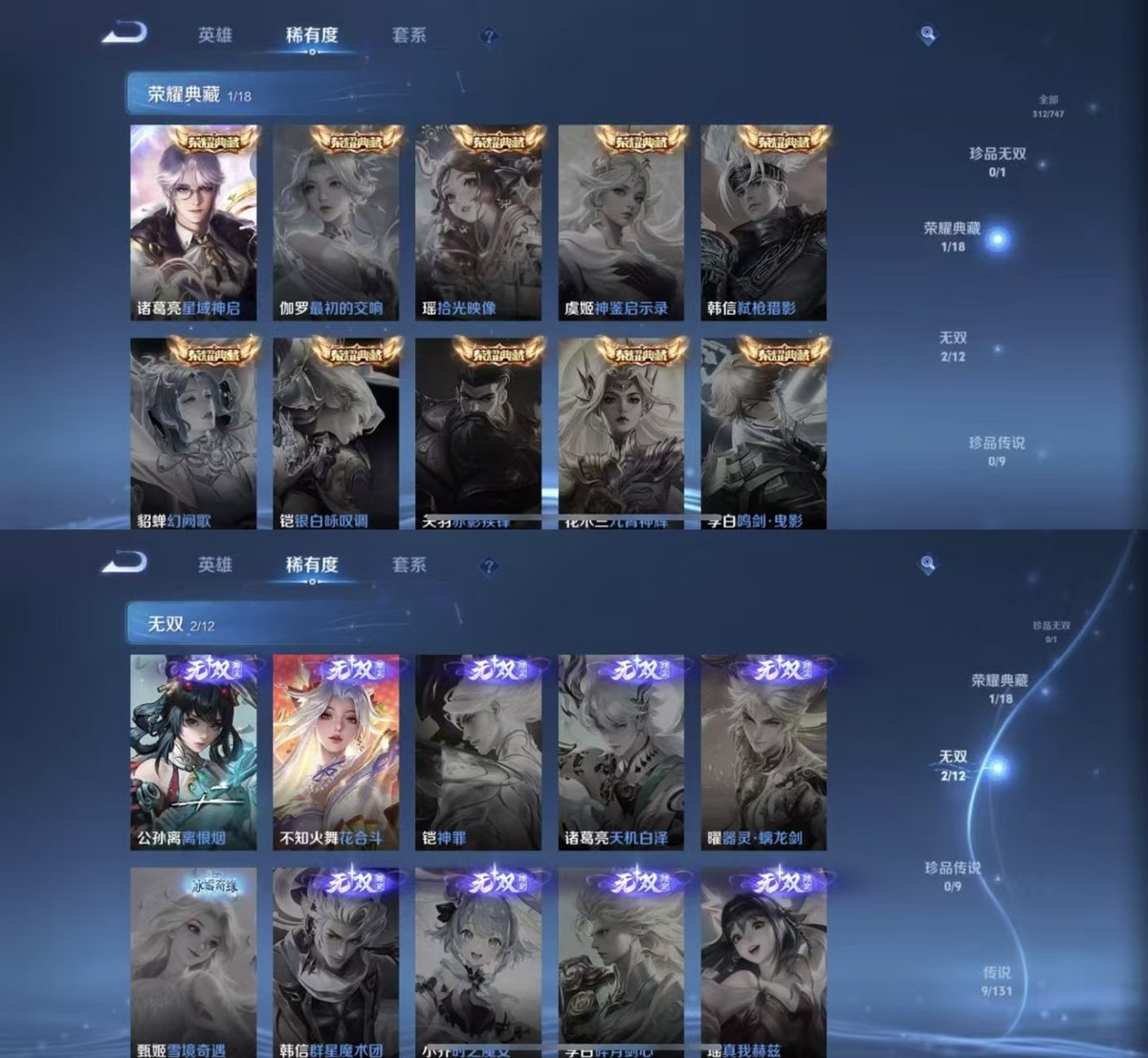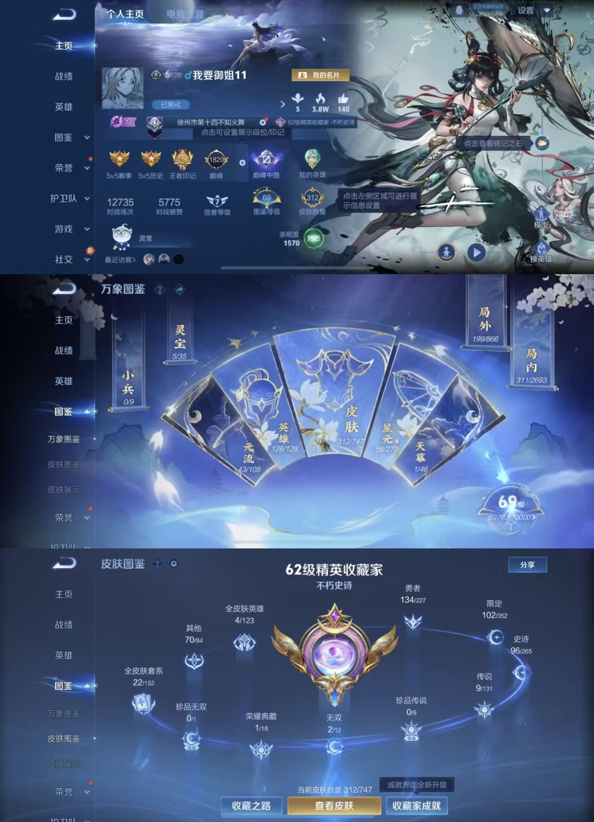 _2311503-实名:可修改贵族等级:v7英雄数:126皮肤数:312荣耀水晶:星域神启无双皮:花合斗离恨烟传说皮:炽阳神光云霓雀翎末日机甲-孙尚香地狱之眼末日机甲-孙策无双飞将神树通天限定皮:冰锋战神遇见飞天李小龙梁祝御风骁将白鹤梁神女朱雀志大圣娶亲默契交锋-花木兰高山流水圣诞老人猪悟能匿光追影者玉兔公主五谷丰年诗剑行山海·玄木吟鸣野蒿