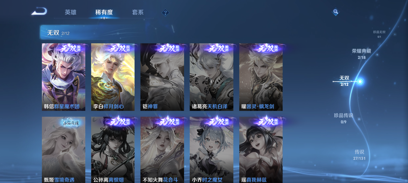 【王者荣耀】【lywz22428】珍品无双0 典藏2 无双2 珍品传说0 传说27 史诗124 英雄127 皮肤394 贵族8级 荣耀典藏:九霄神辉|鸣剑·曳影__无双皮肤:群星魔术团|碎月剑心__传说皮肤:鸣野蒿|绛天战甲|炽阳神光|启明星使|孙策-末日机甲|久胜战神|黄金狮子座|狄仁杰-超时空战士|黄金射手座|猫影幻舞|一念神魔|云鹰飞将|鹤羽星尊|孙尚香-末日机甲|凤求凰|马超-琥珀纪元|怒海麟威|燃星之曲|诗剑行|时雨天司|霜月吟|貂蝉-曦玄引|幻光神呛|愿照·九州拓|愿照·千秋盛|诡秘之主|神树通天__稀有限定:至尊宝|朱雀志|蔷薇恋人|神威|青春决赛季|猪悟能|李小龙|梁祝|山海·玄木吟|狮舞东方|拒霜思|暗影游猎|白昼王子|百木心呛|冰锋战神|冰霜恋舞曲|妲己-时之奇旅|大漠名商|繁星吟游|高山流水|古海寻踪|海滩派对|海盐诗旅|航海奇遇记|胡桃异想国|华丽摇滚|幻夜卜梦|皇家上将|辉光之辰|混沌棋|火炮绅士|剑破天穹|降魔|金庭之子|凯尔特女王|狂想玩偶喵|蓝屏警告|黎明之约|炼金王|迷踪丽影|魔术师|匿光追影者|女武神|千军破阵|擒涛扼浪|穷奇|驱傩正仪|荣光圣徽|沙漠行僧|蜃楼王|狮心王|朔风刀|死亡摇滚|探海日志|饕餮|醍醐杖|天穹祈灯|万华元夜|王者之锤|妄想食味|无心|五谷丰年|纤云弄巧|星空之诺|驯魔猎人|演武夺筹|妖精王|夜都怪侠|疑决卦|阴阳师|吟游魔法|银河之约|遇见飞天|御旌|御銮|御狮|原初追逐者|云间偶戏|真爱魔法|暗夜贵公子|暗隐猎兽者|暗渊魔法|缤纷独角兽|冰冠公主|冰雪圆舞曲|苍穹之光|乘风破浪|大乔-猫狗日记|德古拉伯爵|地狱岩魂|电玩小子|伽罗-琥珀纪元|功夫厨神|鬼剑武藏|黄金分割率|箭羽风息|节奏热浪|金属风暴|乐园奇幻夜|龙鼓争鸣|龙骑士|吕布-末日机甲|魅力维加斯|魅语|梦奇-顽趣|女仆咖啡|偶像歌手|青蛇|赏金猎手|上官婉儿-群星魔术团|绅士熊喵|圣诞狂欢|圣诞恋歌|水果甜心|水晶猎龙者|孙策-猫狗日记|天才门将|天秀·启明|晚萤|赵云-未来纪元|星夜王子|摇滚巨星|鹰眼统帅|永昼|幽灵船长|逐浪之夏|紫霞仙子|百里守约-百相守梦|老夫子-百相守梦|谪仙醉月|星界特工|噬灭天穹|天穹之誓|安琪拉-时之奇旅|修罗|曙光守护者|心灵战警|千年之狐|孙尚香-时之恋人|无限星赏官|舞动绿茵|特工魅影|心灵骇客|飞车小橘子|茶境仙|星界战将|谧流熔炉|糖绘人间|绮世丹青|瑰影绮梦|御霄|狰|烛龙|原初探秘者|重明|云中旅人|单词大作战|朔望之晖|钟馗-神迹守卫|达摩-星际陆战队|流音漫舞|访茗客|夺宝奇兵|圣弓游侠|墨子-神迹守卫|死神来了|灵蛊蚀心|雪豹·霜爪|龙之律动|虚灵犬护|逆浪荇歌|赞萌露比|黄忠-百相守梦|织梦人|涂山容容|光弋星穹|傩神司|往忆晖光|百里玄策-罗小黑战记|荣光之誓|万灵启世|巫礼祀神|鹤鸣心笺__优质皮肤:尼罗河女神|一千零一夜|创世神祝|年年有余|埃及法老|孤猎|木偶奇遇记|熊喵少女|午夜歌剧院|露花倒影|激情绿茵|海之征途|天启骑士|秩序猎龙将|锦衣卫|冰刃幻境|森|超能战警|英喵野望|维京掠夺者|海军大将|绯红之刃|踏雪寻梅|启蛰|战争骑士|伊势巫女|画中游|生化警戒|威尼斯狂欢|第七人偶|潮流仙人|芝加哥教父|街头旋风|绝影神呛|地府判官|荷鲁斯之眼|幸存者|赤焰之缨|福禄兄弟|隐刃|前尘|特种部队|三太子|精灵王|剑舞者|范海辛|星航指挥官|龙域领主|爱与和平|花间舞|魇语军师|极冰防御线|花见巫女|棒球奇才|蔷薇王座|灼热之刃|精准探案法|帝国元帅|战争女神|霓裳曲|加勒比小姐|阿摩司公爵|异域舞娘|精灵公主|修竹墨客|万圣前夜|怪诞之夜|功夫炙烤|潮玩探月行|虎啸剑宗|瓷语鉴心|秘密基地|次元突破|鲨炮海盗猫|野性能量|丁香结|奇妙博物学|虹云星官|科学大爆炸|守护之力|坚韧之力|幻乐之宴|功夫老勺|命运角斗场|幻想奇妙夜|海滩丽影|阿尔法小队|兔女郎|死亡骑士|黄金武士|少女阿狸|天使之翼|玩偶对对碰|宫本武藏-未来纪元|红桃皇后|忍·炎影|爱心护理|街头霸王|教廷特使|时空谍影|零食大作战|西部游侠|太极少年|牛运亨通|幻泉雾影|潮玩造梦师|危途狂花|契约魔法|潮玩牛仔|紫罗兰之誓|铁甲之心|重装意志|次元傲视|无尽征程|黑桃队长|幽兰居士|制霸全明星|进击墨子号|拳王|时尚教父|白色死神|程咬金-星际陆战队|白执事|大发明家|致命风华|哥特玫瑰|魅影绮裳|西施-雪境奇遇|金福满堂|星梦巡礼|灵卦秘语|爆裂喵拳|猪八戒-西部大镖客|缤纷绘卷|逐霄战戟|铁骨偃魂|纽约教父|龙腾万里|霸王丸|乱世虎臣|敏锐之力|西施-归虚梦演|孙悟空-西部大镖客|鲁班大师-归虚梦演|龙舞盛年|汉昭烈帝|乓乓大师|五福同心|盾山-圆桌骑士|猎兽之王|蒙犽-归虚梦演|万事如意|曜-归虚梦演|唤灵魔甲|太乙真人-圆桌骑士|沉稳之力|赤莲之焰|完美运算|化身博士|花好人间|潮玩骑士王|万象初新|苍林狼骑|蔚蓝守将|特工战影|炽热元素使|秘证寻踪|春野闲踪|灵野札记|玫蓝誓约|无双福将|云械蓝图|克喵|哪吒-罗小黑战记|张良-罗小黑战记|径山谋武|逐霄之志__贵族等级:贵族8级__王者段位:传奇王者金标李白 打野射手皮肤号 17按键 2典藏 2无双 鹤羽星尊,愿照·千秋盛,愿照·九州拓,曦玄引,霜月吟,琥珀纪元,燃星之曲,启明星使,时雨天司,凤求凰等限定皮肤