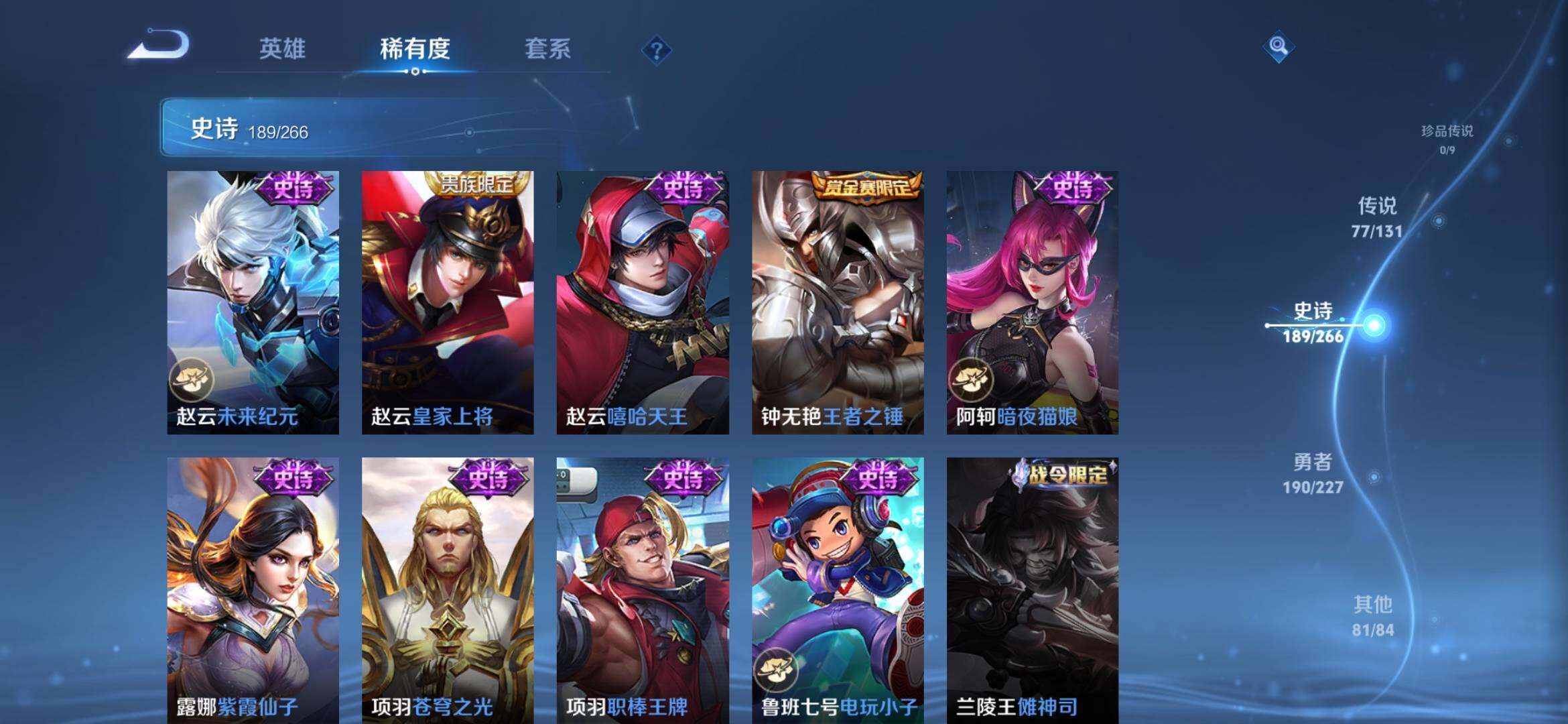 安卓q-v10-最强王者段位-128英雄-545皮肤-6典藏皮肤-1典藏英雄-2无双-77传说-188史诗 【英雄全皮】:扁鹊全皮,元歌全皮,刘邦全皮,不知火舞全皮,娜可露露全皮,橘右京全皮,钟馗全皮,太乙真人全皮,鬼谷子全皮,苏烈全皮,狂铁全皮,李信全皮,盾山全皮,猪八戒全皮,蒙犽全皮,鲁班大师全皮,蒙恬全皮,阿古朵全皮,夏洛特全皮,金蝉全皮,戈娅全皮,空空儿全皮,影全皮 【荣耀典藏】:武则天英雄,孙悟空全息碎影,小乔天鹅之梦,李白鸣剑曳影,花木兰九霄神辉,韩信弑呛猎影,瑶拾光映像 【无双皮肤】:小乔时之魔女,不知火舞花合斗 【传说皮肤】:元歌诡秘之主,桑启鸣野蒿,夏侯惇霜北刀,铠冥王哈迪斯,亚连落雪白狼,吕布曦玄引,貂蝉曦玄引,赵云乘龙铭钟鼎,澜逐花归海,艾琳觅芳踪,狄仁杰夜礼服假面,王昭君永恒水手月亮,甄姬至美化雀舞,吕布遇见神鼓,宫本武藏惊梅引,云缨鹤归松栖,诸葛亮鹤羽星尊,夏洛特浮生妄,干将莫邪画中仙,花木兰燃星之曲,虞姬无限倾心,项羽无限倾心,伽罗炽翼辉光,孙悟空齐天大圣,小乔山海琳琅生,曜山海苍雷引,李信山海炽霜斩,吕布怒海麟威,李白诗剑行,狄仁杰神器狴犴令,不知火舞绯月行,王昭君星穹之声,百里守约碎云,橘右京枫霜尽,娜可露露前尘镜,孙尚香音你闪耀,马可波罗深海之息,后羿无尽星芒,马超无双飞将,大乔挚爱花嫁,孙策挚爱之约,露娜启示之音,蔡文姬花朝如约,孙策末日机甲,孙尚香异界灵契,赵云淬星耀世,王昭君乞巧织情,西施游龙清影,曜李 ,小乔音你心动,李元芳飞鸢探春,公孙离祈雪灵祝,诸葛亮时雨天司,镜炽阳神光,虞姬启明星使,关羽武圣,曜云鹰飞将,李信一念神魔,刘备时之恋人,伽罗太华,貂蝉猫影幻舞,张良黄金白羊座,干将莫邪久胜战神,虞姬云霓雀翎,达摩黄金狮子座,百里玄策白虎志,花木兰冠军飞将,梦奇胖达荣荣,后羿黄金射手座,诸葛亮武陵仙君,貂蝉仲夏夜之梦,李白凤求凰,孙尚香末日机甲,宫本武藏地狱之眼,吕布天魔缭乱,武则天海洋之心,狄仁杰超时空战士 【限定皮肤】:白起狰,夏侯惇霜北刀,铠冥王哈迪斯,暃埋骨钱,蒙犽顽岩魄,蔡文姬夏日便利店,大乔绒语心约,虞姬夏日便利店,姜子牙天穹之誓,狄仁杰阴阳师,虞姬凯尔特女王,小乔山海琳琅生,赵云皇家上将,赵云引擎之心,赵云龙胆,墨子神迹守卫,墨子降魔,妲己热情桑巴,妲己时之彼端,妲己时之奇旅,嬴政优雅恋人,嬴政白昼王子,孙尚香蔷薇恋人,孙尚香异界灵契,鲁班七号狮舞东方,鲁班七号乒乒小将,庄周蜃楼王,庄周玄嵩,庄周高山流水,高渐离死亡摇滚,阿轲迷踪丽影,钟无艳王者之锤,钟无艳超时空战士,孙膑妖精王,扁鹊炼金王,扁鹊奇幻香踪,白起夜都怪侠,芈月重明,芈月白晶晶,芈月幻夜卜梦,吕布天魔缭乱,吕布猎兽之王,吕布御风骁将,吕布遇见神鼓,周瑜真爱至上,周瑜赤莲之焰,元歌云间偶戏,元歌无心,夏侯惇朔风刀,夏侯惇匿光决锋者,甄姬幽恒,甄姬女儿国国王,甄姬游园惊梦,甄姬落雪兰心,甄姬至美化雀舞,曹操烛龙,典韦穷奇,典韦岱宗,马可波罗逐梦之星,马可波罗暗影游猎,马可波罗深海之息,马可波罗山海玄木吟,狄仁杰魔术师,狄仁杰万华元夜,狄仁杰神器狴犴令,达摩星际陆战队,达摩沙漠行僧,项羽海滩派对,项羽无限倾心,老夫子醍醐杖,老夫子航海奇遇记,关羽冰锋战神,关羽武圣,程咬金演武夺筹,露娜一生所爱,露娜启示之音,刘邦夺宝奇兵,韩信逐梦之影,韩信飞衡,韩信傲雪梅呛,王昭君凤凰于飞,王昭君午后时光,王昭君星穹之声,兰陵王驯魔猎人,兰陵王金庭之子,花木兰青春决赛季,花木兰瑞麟志,花木兰燃星之曲,不知火舞绯月行,娜可露露前尘镜,橘右京枫霜尽,亚瑟狮心王,亚瑟潮玩骑士王,孙悟空美猴王,孙悟空至尊宝,孙悟空大圣娶亲,孙悟空孙行者,孙悟空齐天大圣,牛魔御旌,牛魔奔雷神使,后羿辉光之辰,后羿圣弓游侠,后羿无尽星芒,李元芳银河之约,李元芳匿光侦查者,李元芳云中旅人,虞姬启明星使,虞姬无限倾心,钟馗神迹守卫,钟馗驱傩正仪,杨玉环遇见飞天,杨戬潮玩骑兵,干将莫邪真爱魔法,干将莫邪画中仙,雅典娜单词大作战,雅典娜黎明之约,蔡文姬奇迹圣诞,蔡文姬繁星吟游,太乙真人饕餮,太乙真人华丽摇滚,东皇太一逐梦之光,鬼谷子原初探秘者,鬼谷子五谷丰年,诸葛亮武陵仙君,诸葛亮时雨天司,诸葛亮鹤羽星尊,大乔白鹤梁神女,大乔挚爱花嫁,黄忠烈魂,黄忠火炮绅士,铠青龙志,苏烈玄武志,苏烈千军破阵,百里玄策白虎志,百里玄策原初追逐者,百里守约朱雀志,弈星混沌棋,梦奇顽趣,公孙离蜜橘之夏,公孙离祈雪灵祝,沈梦溪星空之诺,沈梦溪大漠名商,沈梦溪匿光破解者,明世隐疑决卦,明世隐吟游魔法,裴擒虎天狼狩猎者,裴擒虎李小龙,裴擒虎擒涛扼浪,狂铁御狮,狂铁电玩高手,米莱狄御霄,米莱狄胡桃异想国,瑶山海碧波行,云中君纤云弄巧,李信山海炽霜斩,伽罗太华,伽罗天狼溯光者,伽罗炽翼辉光,盾山御銮,盾山梦圆繁星,孙策挚爱之约,猪八戒西部大镖客,猪八戒猪悟能,上官婉儿梁祝,上官婉儿天狼绘梦者,上官婉儿神器万象笔,嫦娥拒霜思,嫦娥暖冬兔眠,曜李 ,曜山海苍雷引,西施玲珑珍味,西施至美乘鲤谣,蒙犽狂想玩偶喵,鲁班大师匿光启智者,鲁班大师探海日志,镜匿光追影者,桑启海盐诗旅,夏洛特浮生妄,金蝉唐三藏,暃星界游侠,戈娅驭风魔法,艾琳流音漫舞,赵怀真鹤归松栖,云缨鹤归松栖,司空震地狱燃心,阿古朵江河有灵,张良古海寻踪,王昭君永恒水手月亮,