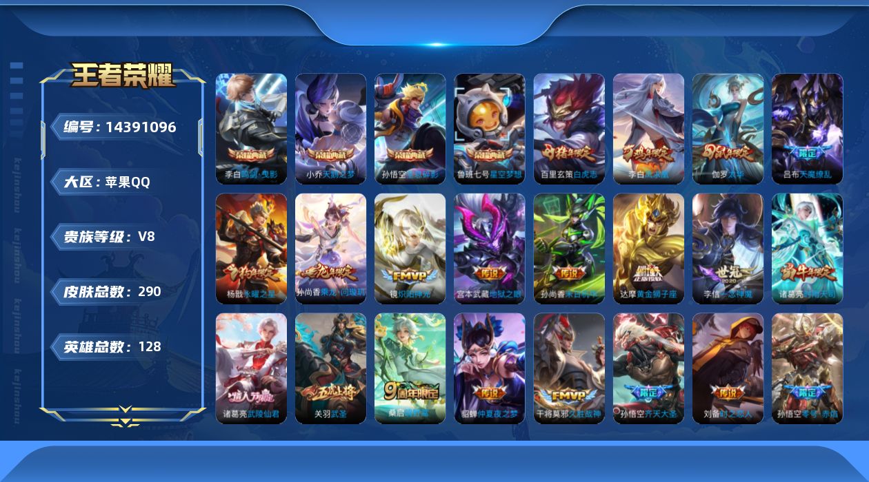 [14391096]可二次 贵族8-贵族积分72281-290皮4典藏28传说-1个英雄全皮肤 苹果手q116区290皮4典藏28传说0无双v8 营地id483691900非凡王者【荣耀典藏】:鸣剑·曳影全息碎影天鹅之梦星空梦想【优质限定皮肤】:武圣至尊宝神威白虎志梅西天魔缭乱凤求凰【传说皮肤】:神树通天云霓雀翎乘龙·问璇玑武圣太华炽阳神光淬星耀世久胜战神启明星