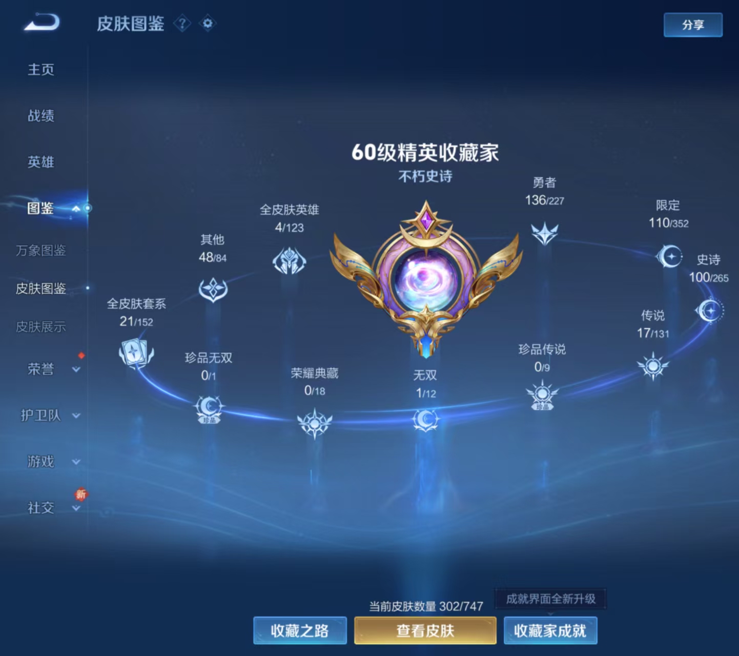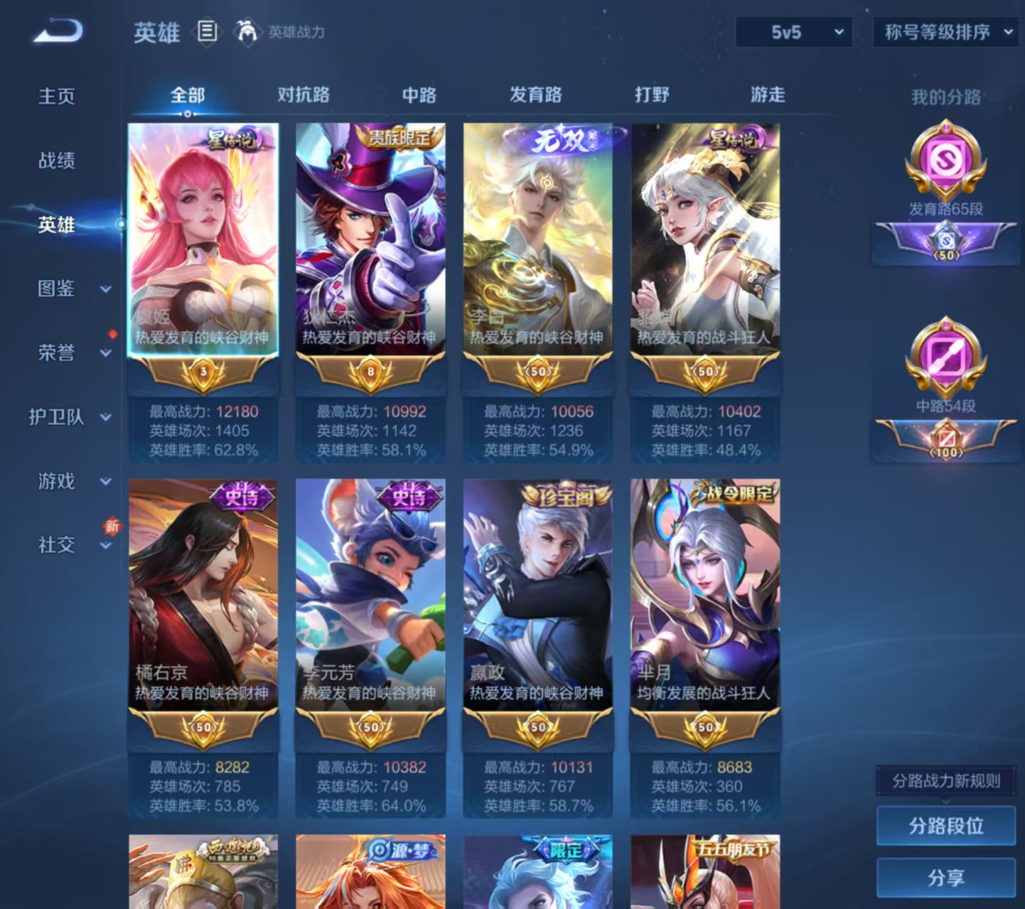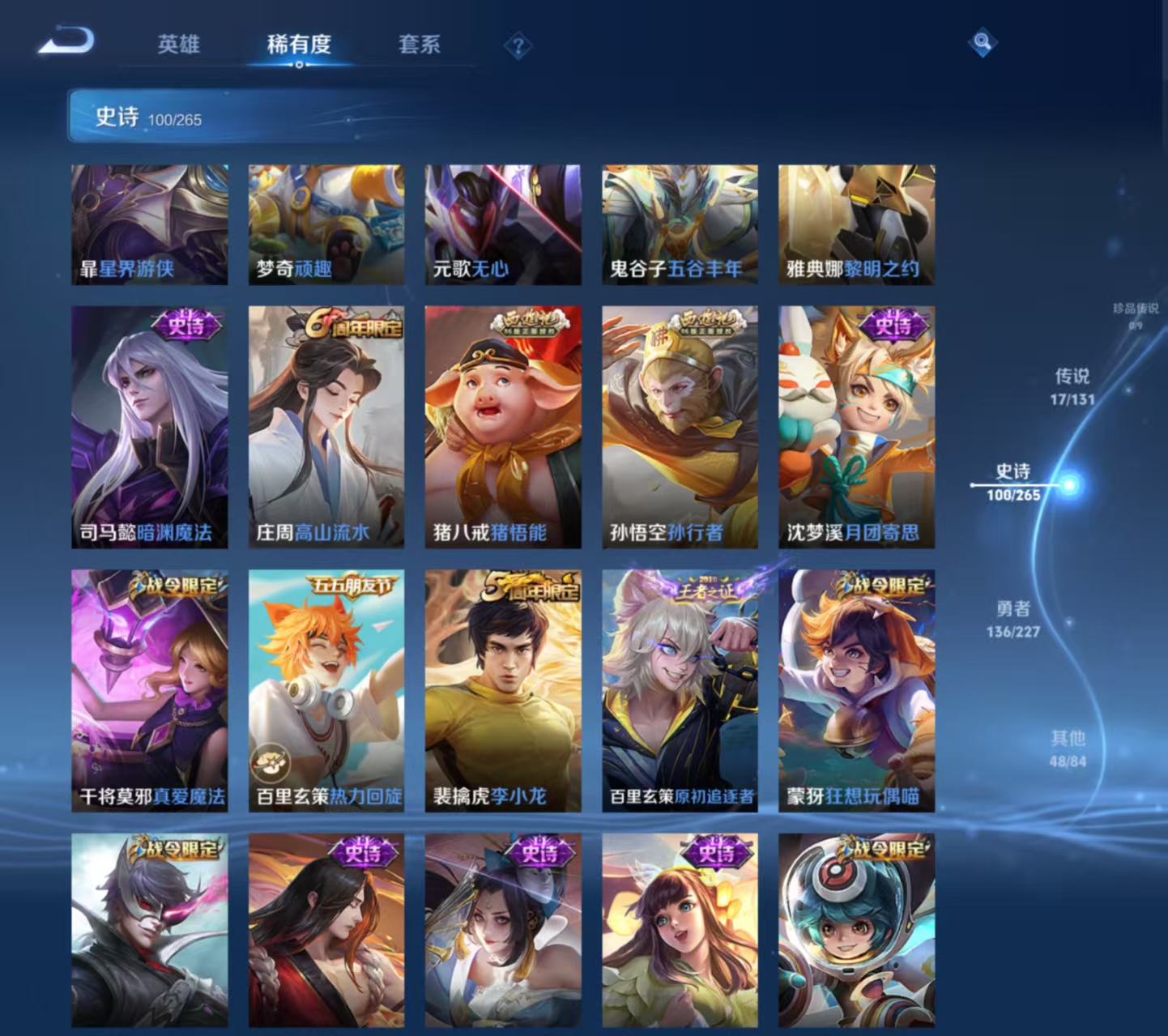 战力号 18金标 25个荣耀印记 全能大神 33个王者印记 万战李白 万战貂蝉 万战马可波罗 302皮1无双17传说 碎月剑心 地狱之眼,神树通天,仲夏夜之梦,猫影幻舞,诗剑行,末日机甲,武陵仙君,无限倾心,深海之息,寅虎·赤拳,一念神魔,时之祈愿,浮生妄,逐花归海,无限倾心,幻光神呛,鸣野蒿