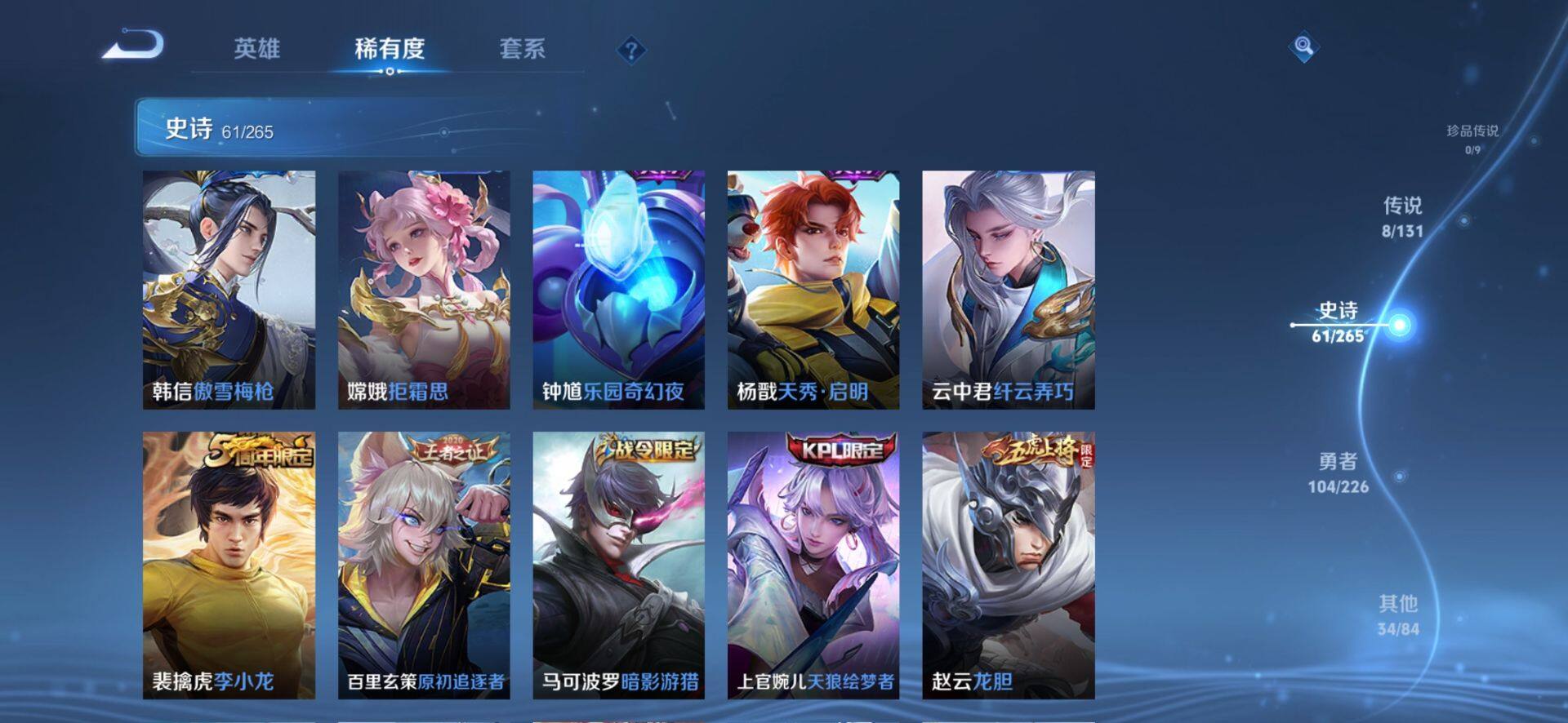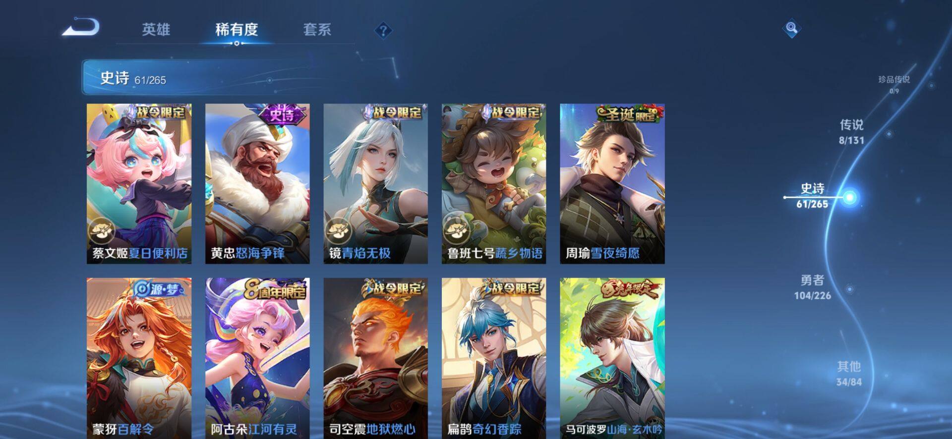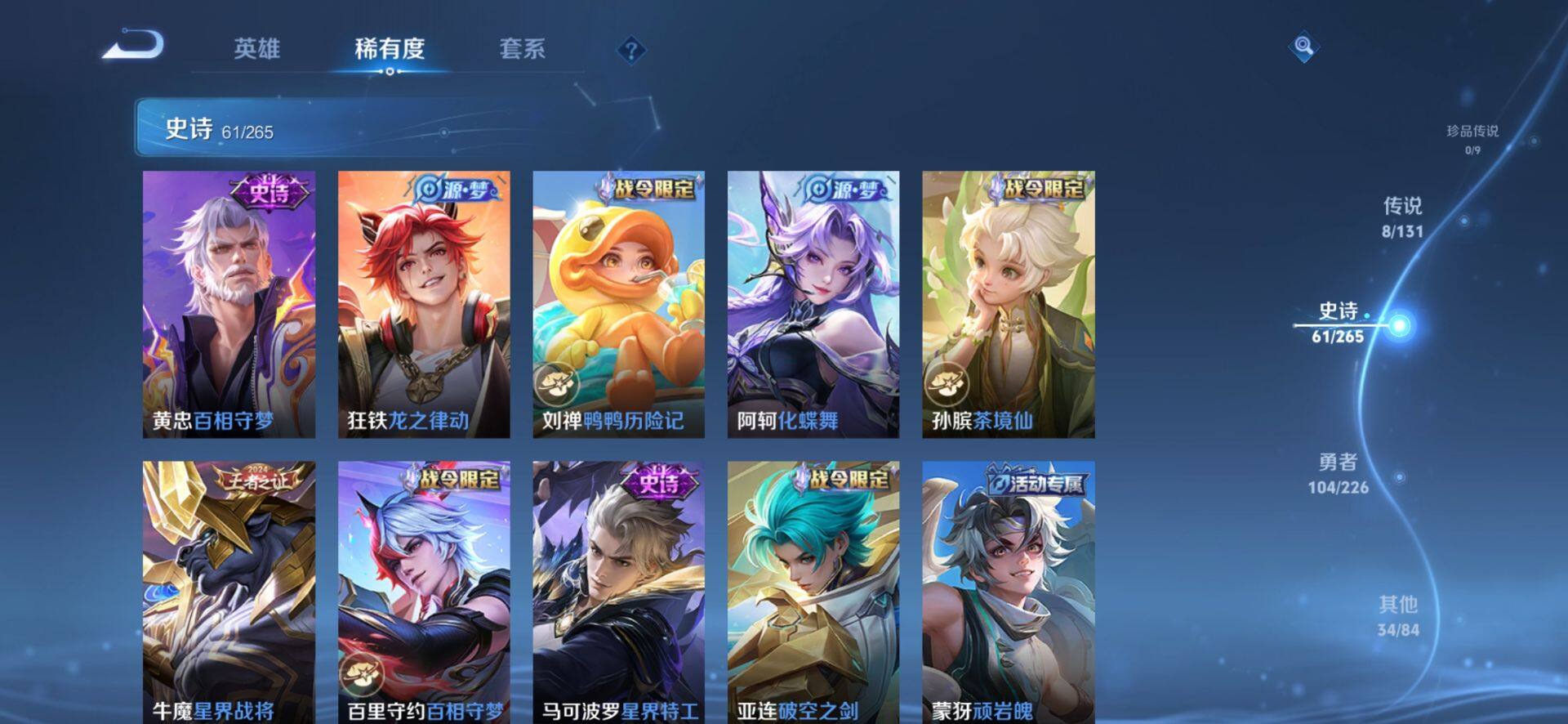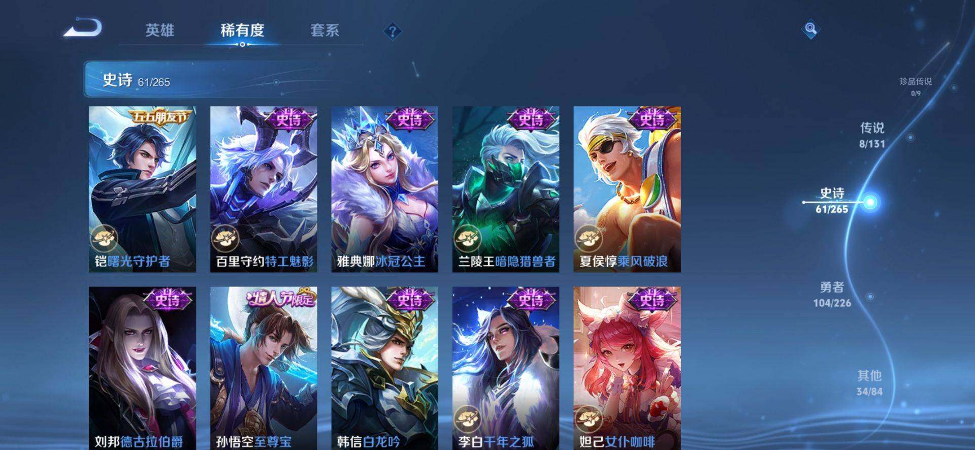 _2251286-【司空震全皮后羿黄金射手座情人节限定至尊宝公孙离云诺千山】安卓q-v3-至尊星耀iii段位-125英雄-208皮肤-1典藏-0珍品无双-0无双-0珍品传说-8传说-61史诗 【英雄全皮】:司空震全皮,影全皮 【荣耀典藏】:花木兰九霄神辉 【传说皮肤】:公孙离云诺千山,司空震愿照山河定,云缨幻光神呛,桑启鸣野蒿,曜云鹰飞将,后羿黄金射手座,孙尚香末日机甲,孙悟空地狱火 【限定皮肤】:蒙犽顽岩魄,蔡文姬夏日便利店,大乔绒语心约,虞姬夏日便利店,姜子牙天穹之誓,杨戬破阵退雄兵,狄仁杰阴阳师,赵云皇家上将,赵云龙胆,孙尚香蔷薇恋人,扁鹊奇幻香踪,马可波罗暗影游猎,马可波罗山海玄木吟,狄仁杰魔术师,狄仁杰万华元夜,项羽海滩派对,老夫子醍醐杖,程咬金演武夺筹,韩信飞衡,韩信傲雪梅呛,孙悟空至尊宝,后羿如梦令,钟馗驱傩正仪,蔡文姬繁星吟游,鬼谷子原初探秘者,百里玄策原初追逐者,弈星混沌棋,明世隐疑决卦,裴擒虎李小龙,云中君纤云弄巧,上官婉儿天狼绘梦者,嫦娥拒霜思,鲁班大师探海日志,艾琳流音漫舞,司空震地狱燃心,阿古朵江河有灵,张良古海寻踪,蒙犽百解令,鬼谷子天穹祈灯,沈梦溪龙舞盛年,鲁班七号蔬乡物语,李元芳蔬乡物语,刘邦剑破天穹,程咬金群星魔术团,镜青焰无极,项羽苍威无极,刘备异域游侠,周瑜熔金海岸 【年限皮肤】:韩信飞衡,赵云龙胆,马可波罗山海玄木吟 【赛季限定】:狄仁杰万华元夜,老夫子醍醐杖,程咬金演武夺筹,张良古海寻踪,钟馗驱傩正仪,鬼谷子原初探秘者,百里玄策原初追逐者,弈星混沌棋,明世隐疑决卦,鲁班大师探海日志,鬼谷子天穹祈灯,刘邦剑破天穹,姜子牙天穹之誓 【战令限定】:蔡文姬夏日便利店,虞姬夏日便利店,扁鹊奇幻香踪,马可波罗暗影游猎,艾琳流音漫舞,司空震地狱燃心,鲁班七号蔬乡物语,李元芳蔬乡物语,镜青焰无极,项羽苍威无极 【史诗皮肤】:露娜紫霞仙子,赵云皇家上将,赵云未来纪元,貂蝉圣诞恋歌,甄姬冰雪圆舞曲,王昭君偶像歌手,狄仁杰魔术师,孙尚香蔷薇恋人,孙尚香水果甜心,嬴政摇滚巨星,妲己魅力维加斯,妲己女仆咖啡,李白千年之狐,韩信白龙吟,孙悟空至尊宝,刘邦德古拉伯爵,夏侯惇乘风破浪,兰陵王暗隐猎兽者,雅典娜冰冠公主,百里守约特工魅影,铠曙光守护者,程咬金功夫厨神,白起星夜王子,阿轲节奏热浪,孙策猫狗日记,伽罗箭羽风息,狄仁杰鹰眼统帅,蔡文姬繁星吟游,韩信飞衡,后羿如梦令,小乔青蛇,赵云龙胆,上官婉儿天狼绘梦者,马可波罗暗影游猎,百里玄策原初追逐者,裴擒虎李小龙,云中君纤云弄巧,杨戬天秀启明,钟馗乐园奇幻夜,嫦娥拒霜思,韩信傲雪梅呛,马可波罗山海玄木吟,扁鹊奇幻香踪,司空震地狱燃心,阿古朵江河有灵,蒙犽百解令,周瑜雪夜绮愿,鲁班七号蔬乡物语,镜青焰无极,黄忠怒海争锋,蔡文姬夏日便利店,蒙犽顽岩魄,亚连破空之剑,马可波罗星界特工,百里守约百相守梦,牛魔星界战将,孙膑茶境仙,阿轲化蝶舞,刘禅鸭鸭历险记,狂铁龙之律动,黄忠百相守梦 【其他皮肤】:项羽海滩派对,韩信教廷特使,韩信街头霸王,露娜哥特玫瑰,达摩大发明家,赵云白执事,赵云忍炎影,芈月红桃皇后,白起白色死神,庄周鲤鱼之梦,宫本武藏未来纪元,安琪拉玩偶对对碰,妲己少女阿狸,典韦黄金武士,亚瑟死亡骑士,花木兰兔女郎,张飞五福同心,甄姬花好人间,刘备万事如意,宫本武藏万象初新,后羿阿尔法小队,狄仁杰阴阳师,刘备汉昭烈帝,关羽龙腾万里,宫本武藏霸王丸,王昭君幻想奇妙夜,孙尚香沉稳之力,大乔守护之力,项羽科学大爆炸,明世隐虹云星官,弈星混沌棋,哪吒次元突破,鲁班七号黑桃队长,明世隐疑决卦,老夫子醍醐杖,狂铁特工战影,鬼谷子原初探秘者,狄仁杰万华元夜,刘禅秘密基地,程咬金演武夺筹,张良缤纷绘卷,钟馗驱傩正仪,鲁班大师乓乓大师,典韦铁甲之心,米莱狄契约魔法,蒙恬蔚蓝守将,戈娅危途狂花,刘备潮玩造梦师,猪八戒潮玩探月行,赵怀真太极少年,太乙真人劲辣红锅,莱西奥西部游侠,鲁班大师探海日志,姬小满零食大作战,艾琳流音漫舞,张良古海寻踪,钟无艳聚星闪耀,曹操决胜大满贯,后羿完美运算,鬼谷子天穹祈灯,海诺时空谍影,嫦娥漠中幻影,朵莉亚金色潮汐,廉颇功夫炙烤,亚瑟鸿运当头,沈梦溪龙舞盛年,钟无艳春野之旅,李元芳蔬乡物语,刘邦剑破天穹,程咬金群星魔术团,项羽苍威无极,大司命暗都幽影,刘备异域游侠,杨戬破阵退雄兵,姜子牙天穹之誓,周瑜熔金海岸,虞姬夏日便利店,大乔绒语心约,孙悟空神迹守卫,盘古敬我三分,东皇太一噬灭天穹,老夫子百相守梦,干将莫邪雾都夜雨,吕布逐霄战戟,苍苍林狼骑,太乙真人谧流熔炉,典韦铁骨偃魂,马超访茗客,影魅影绮裳,西施雪境奇遇,姜子牙星梦巡礼,达摩爆裂喵拳,少司缘灵卦秘语,明世隐景韶洛都,戈娅玫蓝誓约,刘备浪漫序章,钟馗虚灵犬护,沈梦溪鸭鸭历险记,苏烈春野闲踪,张良灵野札记,阿古朵布丁狗之约,露娜命运加冕,姬小满小满鸭,白起死霸装,露娜绯红之刃,老夫子潮流仙人,张良一千零一夜,兰陵王隐刃,李白范海辛,钟馗地府判官,李元芳特种部队,马可波罗激情绿茵,苍维京掠夺者,杨戬埃及法老,太乙真人圆桌骑士,诸葛亮星航指挥官,黄忠芝加哥教父,东皇太一东海龙王,干将莫邪第七人偶,百里守约绝影神呛,女娲尼罗河女神,裴擒虎街头旋风,弈星踏雪寻梅,米莱狄精准探案法,元歌午夜歌剧院,孙策海之征途,上官婉儿修竹墨客,盘古创