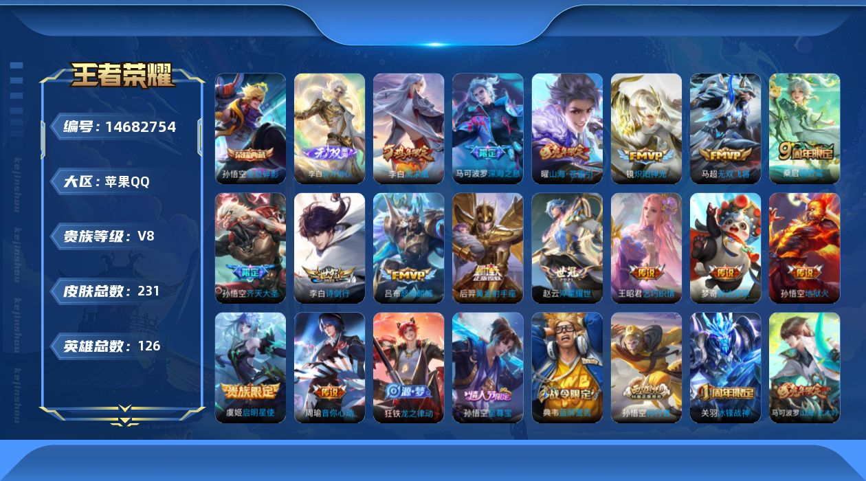 [14682754]0aqp0v不可二次"231皮肤无双1水晶1打野号传说16优质限定12 钱包已注销、信用分正常、无设备脸 水晶皮肤:全息碎影 无双皮肤:碎月剑心 传说限定:凤求凰齐天大圣深海之息山海·苍雷引启明星使 传说皮肤:怒海麟威乞巧织情黄金射手座胖达荣荣无双飞将淬星耀世诗剑行地狱火炽阳神光音你心动-周瑜鸣野蒿 史诗限定:冰锋战神引擎之心飞衡至尊宝孙行者山海·玄木吟天狼征服者 优质史诗皮肤:永昼晚萤 周年皮肤:遇见飞天梁祝鹤鸣心笺五谷丰年 珍宝阁:玩趣恶龙 史诗皮肤:星夜王子末日机甲-吕布无心乘风破浪幽灵船长苍穹之光功夫厨神德古拉伯爵水晶猎龙者未来纪元-赵云节奏热浪鬼剑武藏千年之狐白龙吟冰冠公主曙光守护者原初追逐者龙骑士魅力维加斯冰雪圆舞曲圣诞恋歌偶像歌手黄金分割率水果甜心电玩小子鹰眼统帅绅士熊喵电玩·爆裂旋风乱世虎臣舞动绿茵