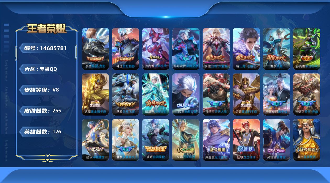 [14685781]【终身售后 找回包赔】苹果手q109区255皮2典藏17传说0无双 营地id1620064975可二次v8荣耀王者 【荣耀典藏】:弑呛猎影鸣剑·曳影【星传说】:未来机甲,【优质限定皮肤】:至尊宝山海·炽霜斩山海·苍雷引无双飞将【传说皮肤】:神树通天黄金狮子座画中仙启明星使炽翼辉光山海·炽霜斩齐天大圣山海·苍雷引深海之息无双飞将末日机甲太华淬星耀世默契交锋时雨天司黄金射手座零号·赤焰【特殊英雄】:嬴政,【史诗皮肤】:水晶猎龙者天秀·启明节奏热浪夏日便利店巫礼祀神光弋星穹冰冠公主万灵启世龙之律动龙骑士琥珀纪元功夫厨神德古拉伯爵圣诞狂欢电玩·爆裂旋风至尊宝星界游侠烈魂电玩小子末日机甲山海·玄木吟顽趣无心超时空战士岱宗五谷丰年电玩高手匿光决锋者千筹问战吟游魔法鬼剑武藏乱世虎臣白龙吟心灵战警赏金猎手永昼黎明之约拒霜思高山流水真爱魔法优雅恋人孙行者时之奇旅暗影游猎航海奇遇记女仆咖啡原初追逐者天狼溯光者胡桃异想国魔术师逐梦之星曙光守护者箭羽风息圣诞恋歌云间偶戏偶像歌手御风骁将皇家上将鹰眼统帅纤云弄巧狂想玩偶喵冰雪圆舞曲青龙志逐浪之夏李小龙蓝屏警告水果甜心乘风破浪 星元:37星传说:1天幕:3按键:6签名:1贵族:8皮肤碎片:35荣耀积分:70英雄碎片:541星传说:孙尚香未来机甲